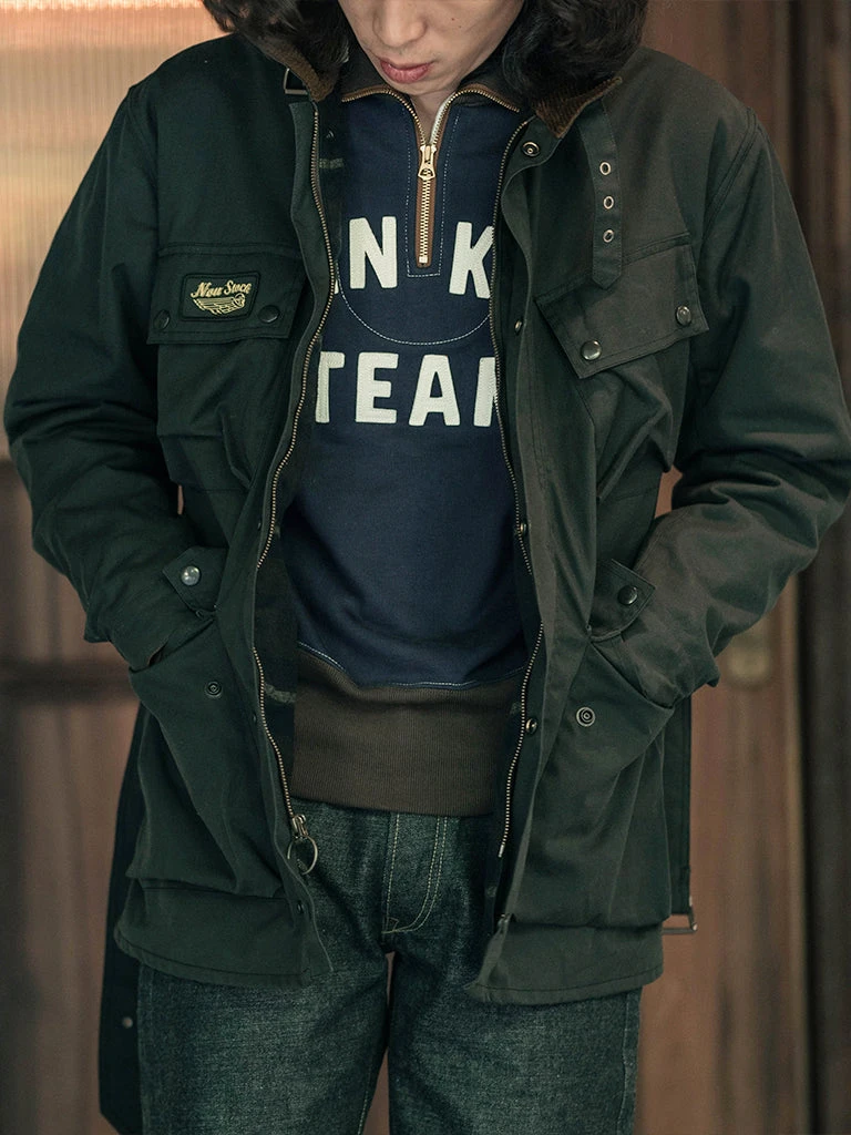 The letter on the chest is “DRINKING TEAM,” inspired by the “Hollister Riot” in 1947. It was originally a carnival Gypsy tour motorcycle rally, but under the influence of alcohol, the riders caused drag racing and fight. The person who caused the incident was identified as a member of the “BoozeFrighters” club. The AMA (American Motorcycle Association) subsequently declared that 99% of the members were good, and only 1% were bad. But, people with a rebellious spirit all claim to be part of the 1%.