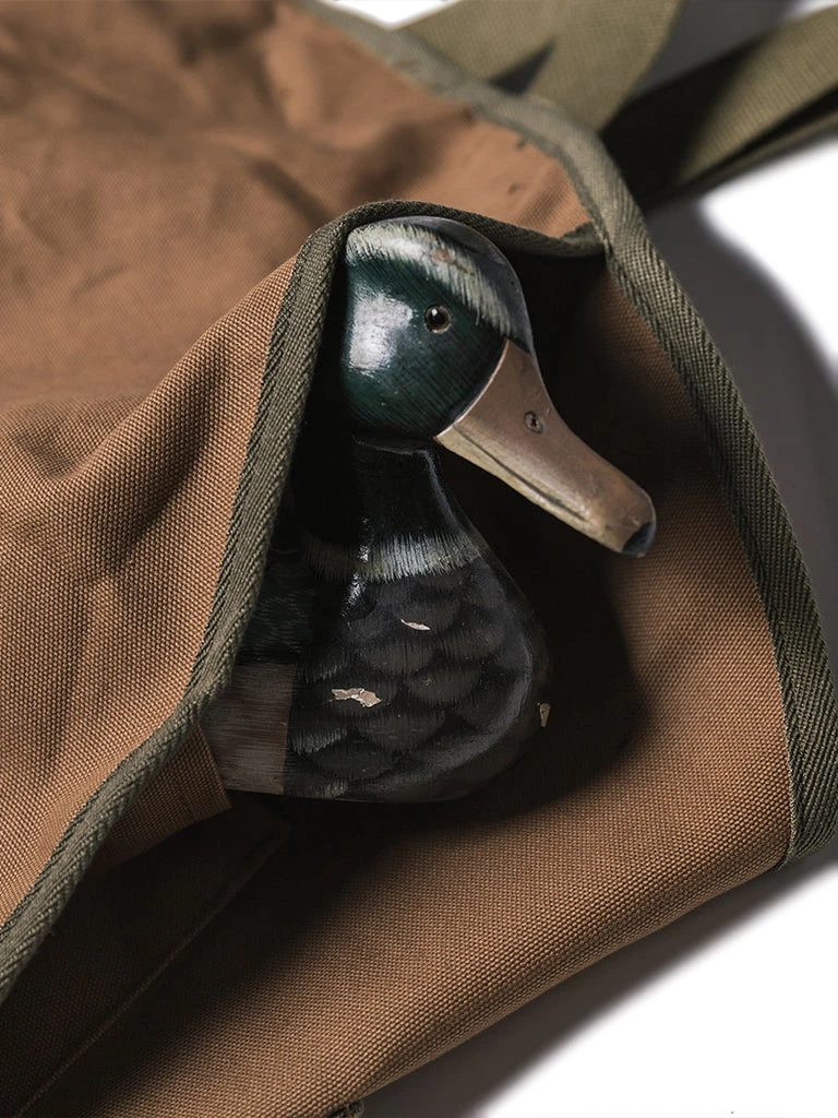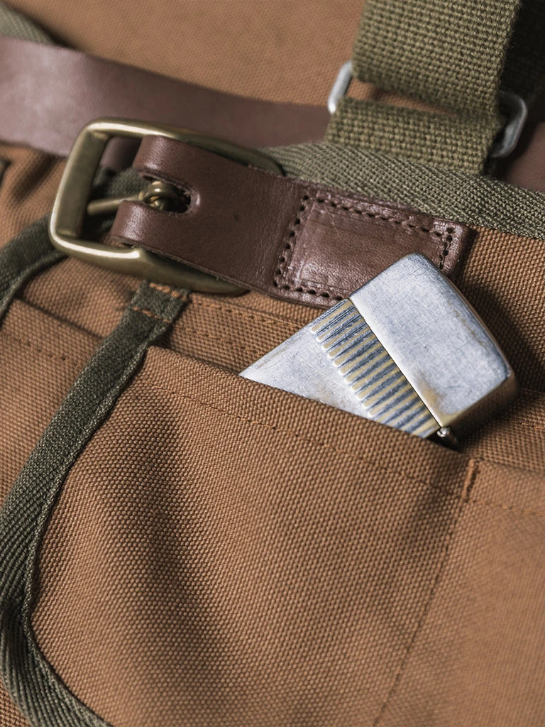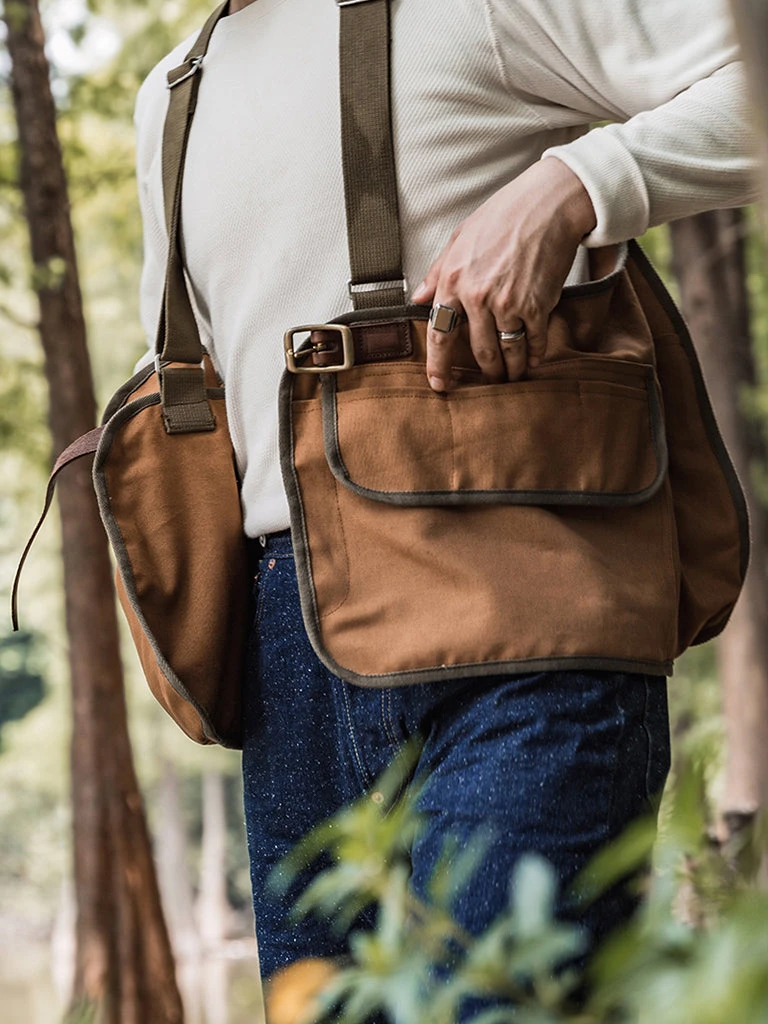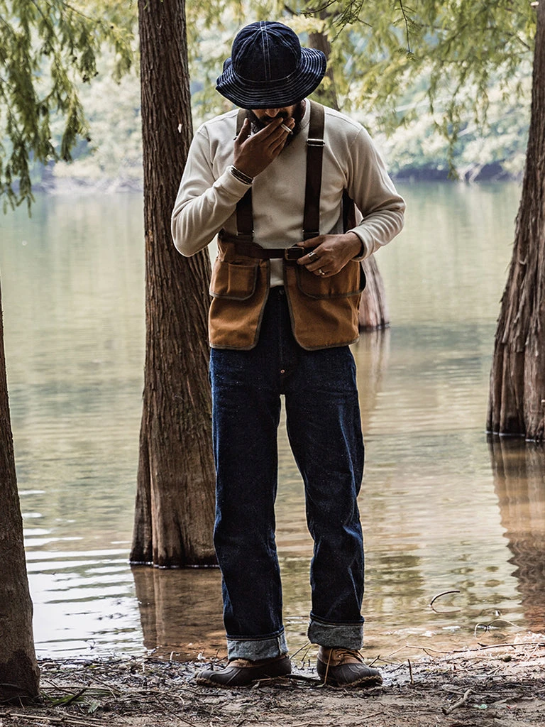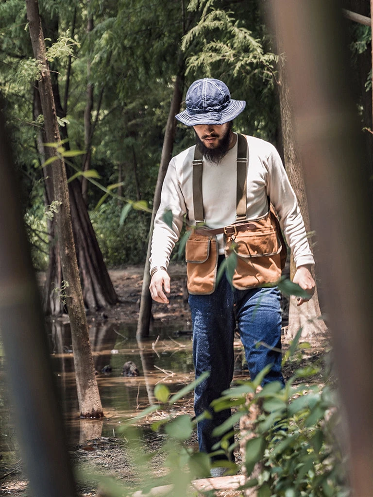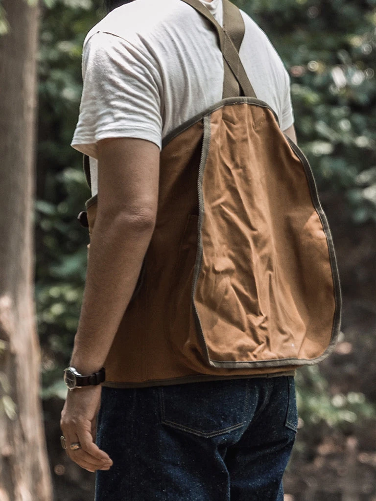 Our canvas hunting vest is also based on products in this period. The main part is made of yellow heavyweight canvas. The edges are covered with military green knitted fabric, matching the shoulder straps that can be adjusted in length to meet different outdoor needs.