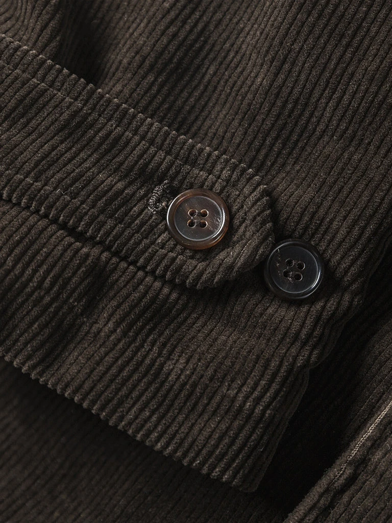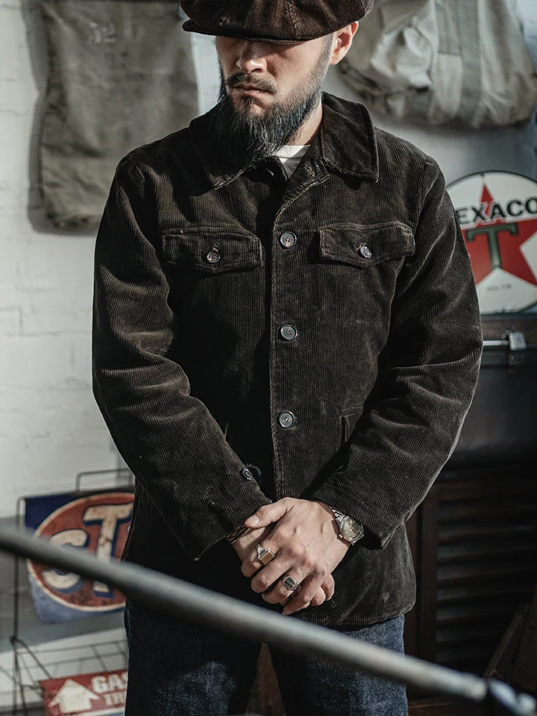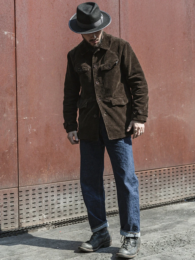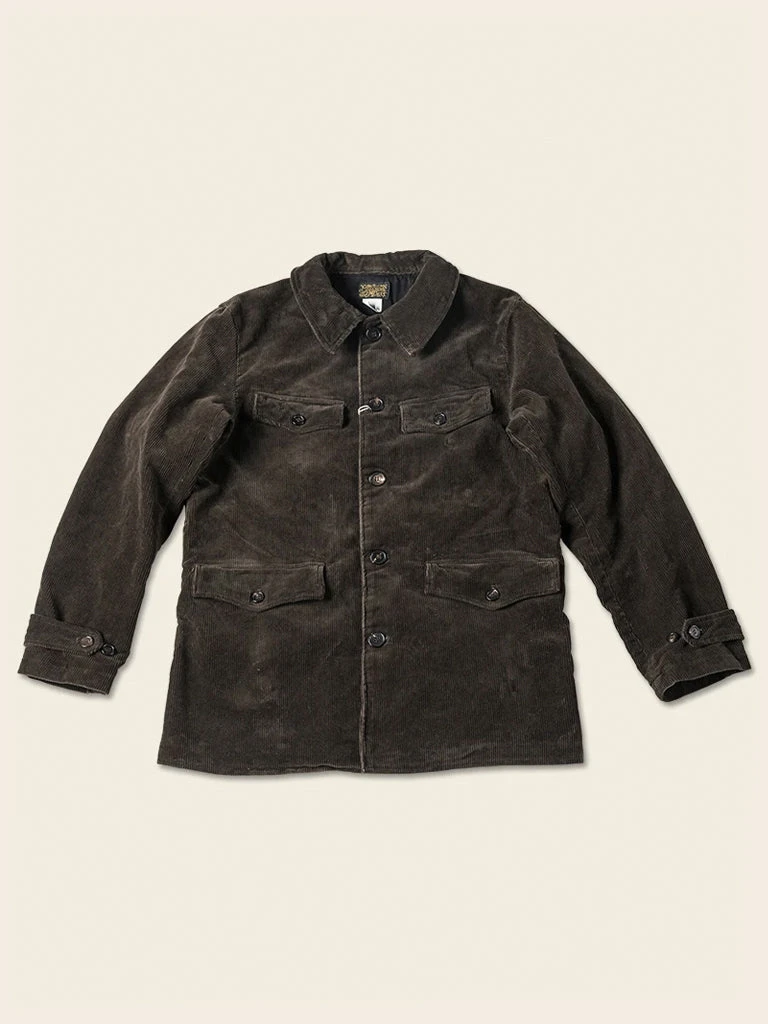 French corduroy jackets were used as hunting coats in the 1930s-1950s. Its heavyweight corduroy fabric gave them strong wind resistance, and as a durable fabric for the workwear, It warmer than denim or canvas.