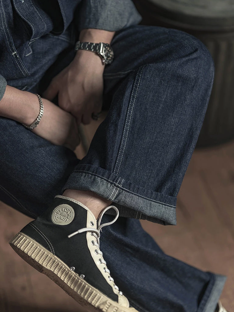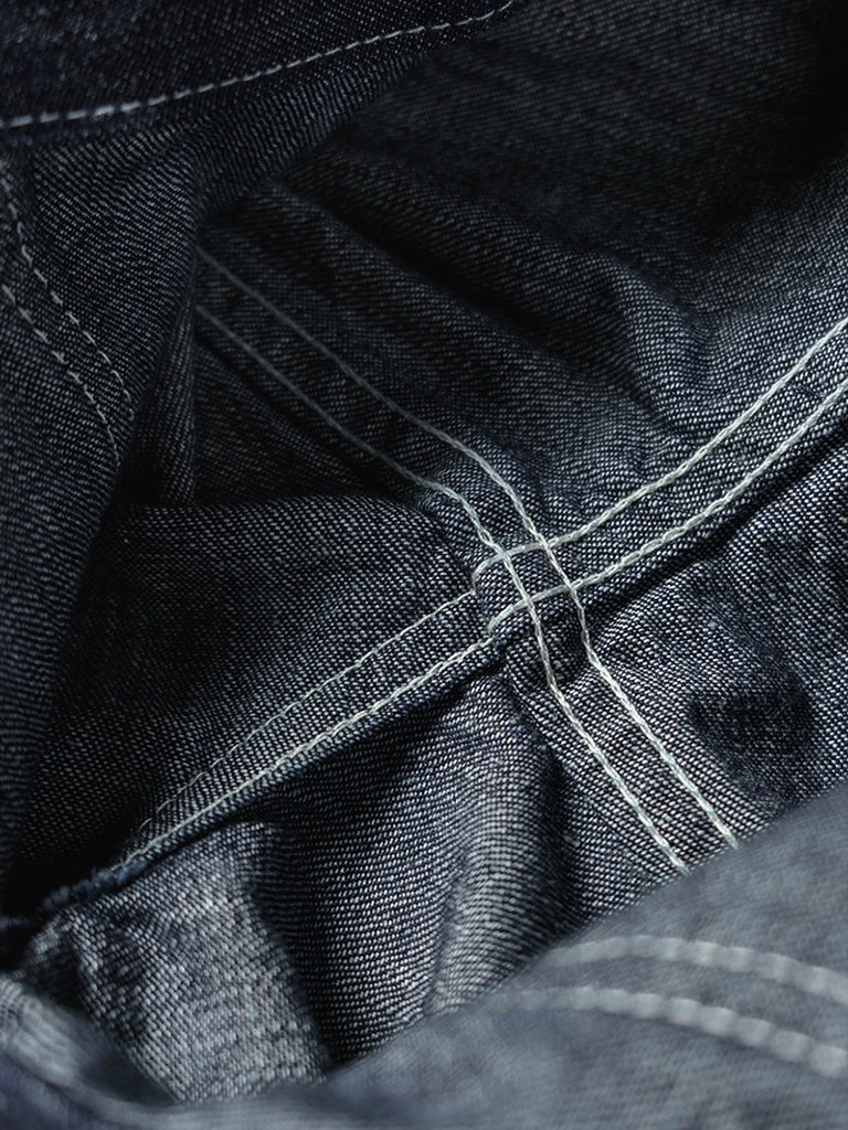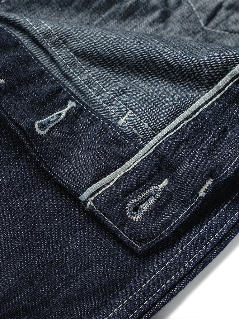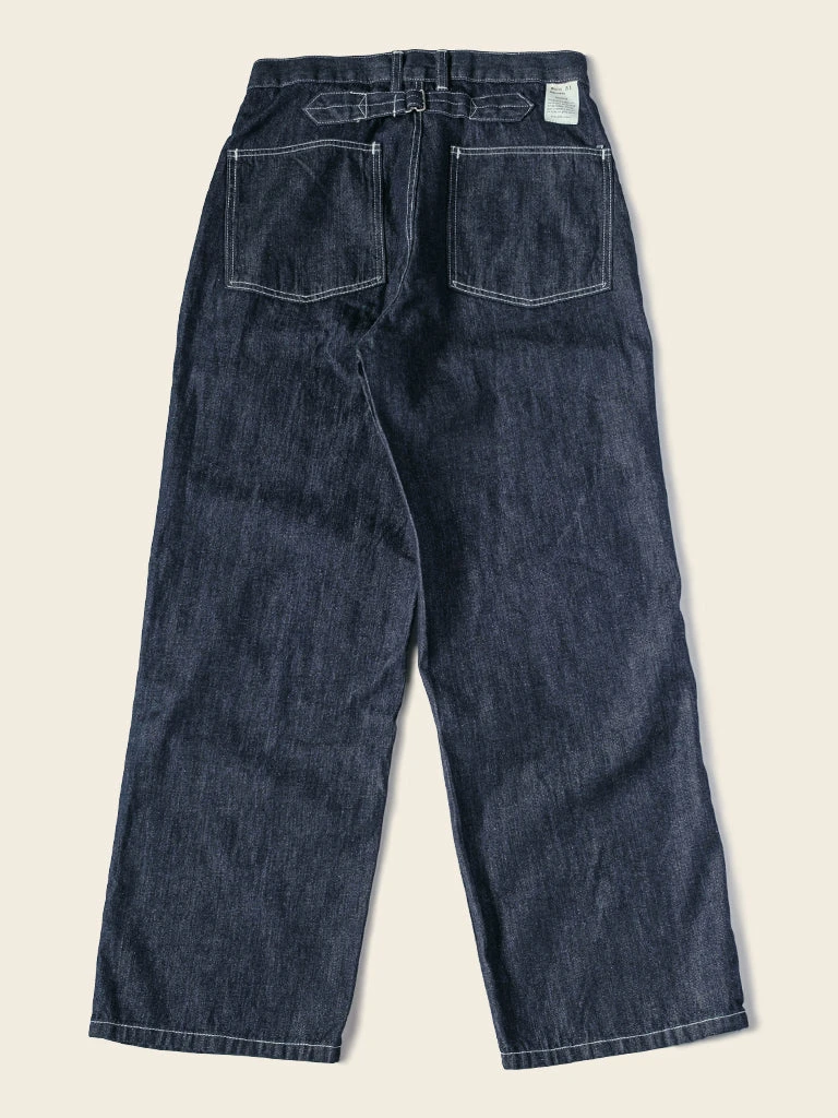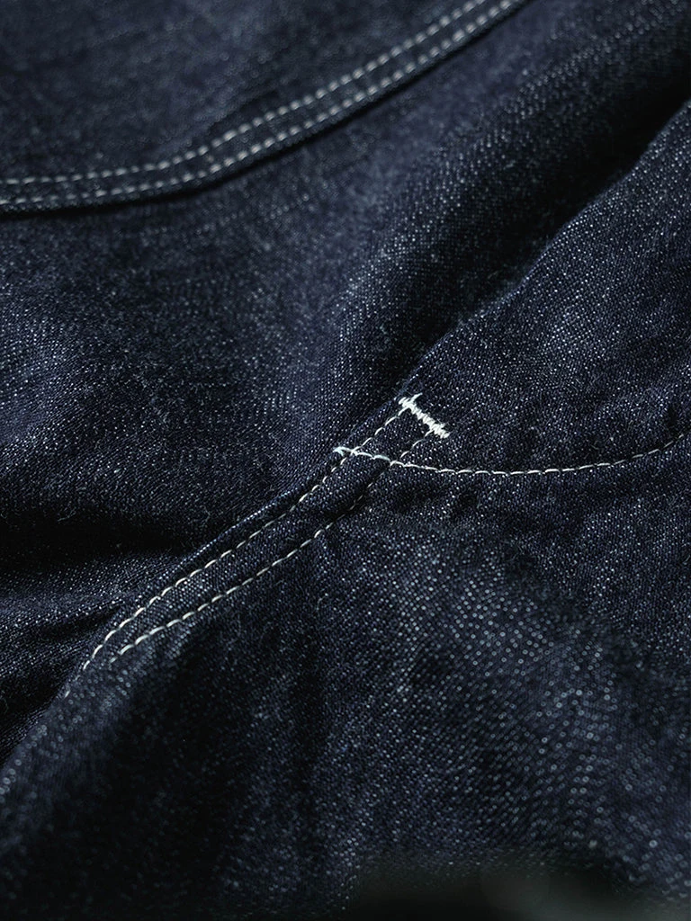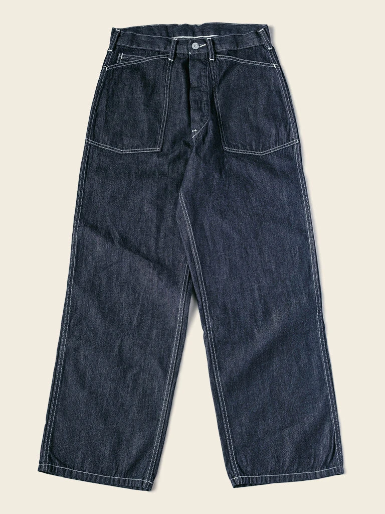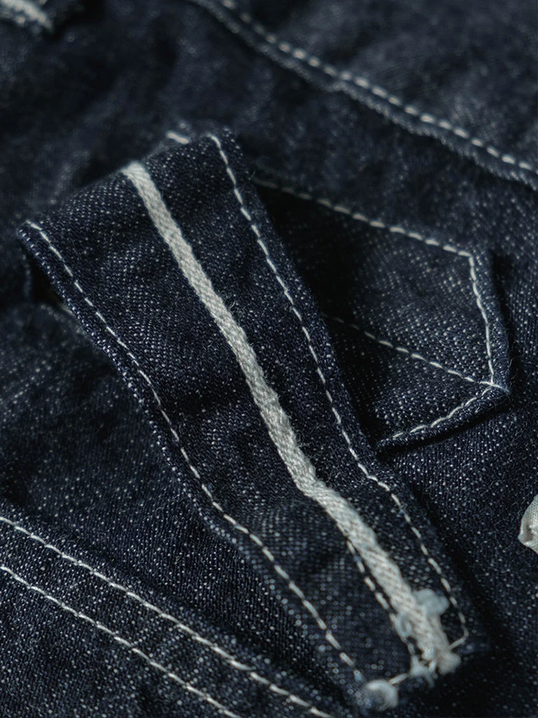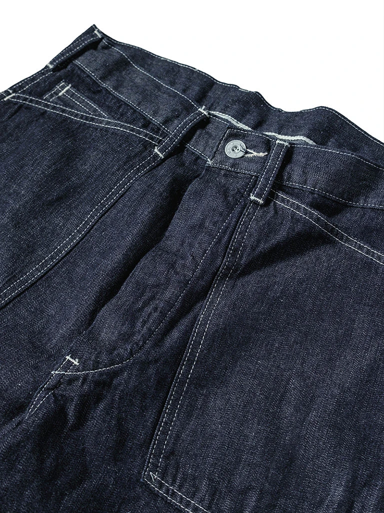 These jeans are part of the CCC fatigue uniform (an earlier version was a brownness twill fabric version issued by the US Army in 1919.). These jeans are combined with a fatigue jumper and a round brim hat(Daisy Mae Hat) to make up a set of fatigue uniforms. By 1942, with World War II raging and the draft in effect, the need for work relief declined, and Congress voted to close the program. The denim overalls were no longer used, they were gradually replaced by herringbone fabric overalls.
