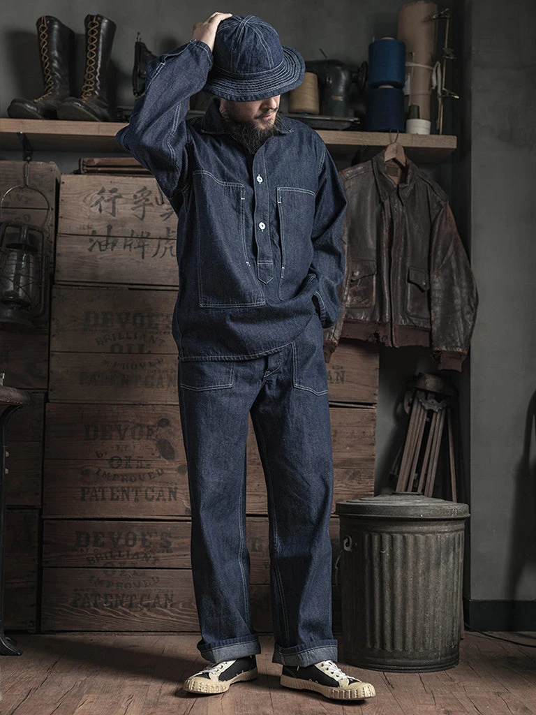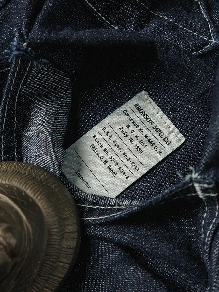 It’s a reproduction of the 1935 US Army dungaree. Due to the US Army the replacement of herringbone fabric pants before World War II, so this version was not widely used in World War II. In fact, the most used these pants are during the work of the Civilian Conservation Corps.