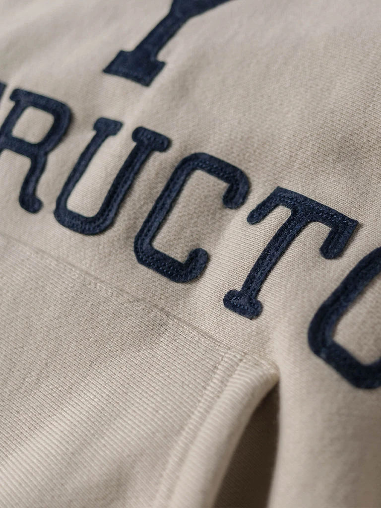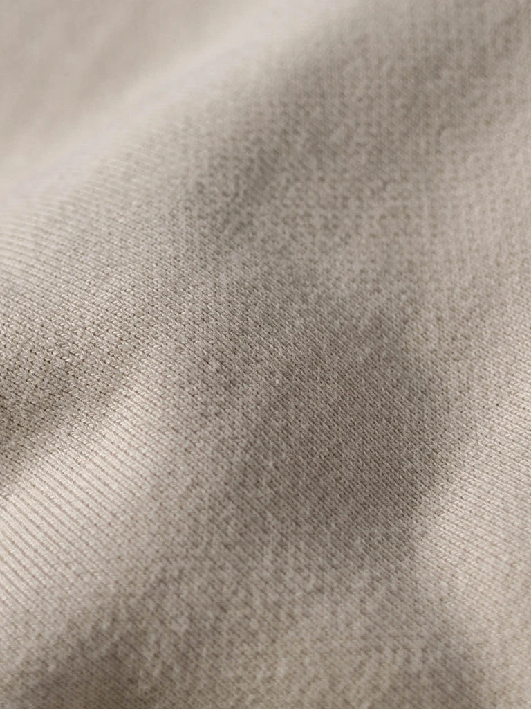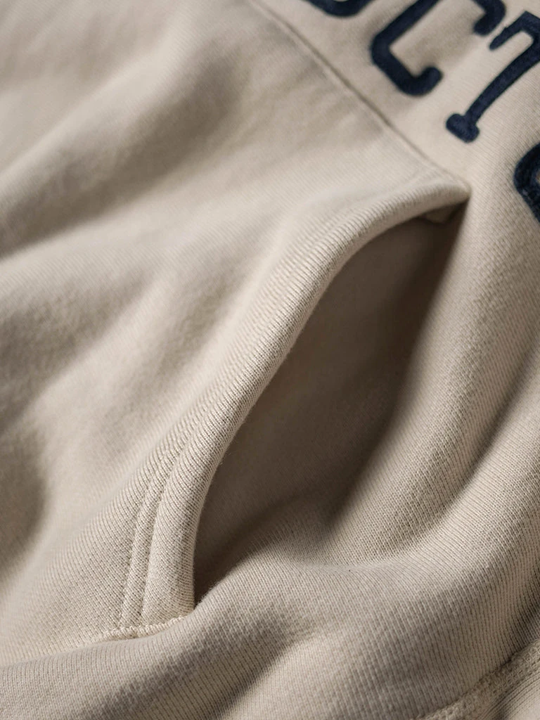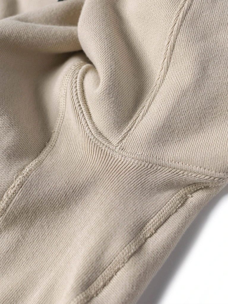 This hoodie is made of heavyweight reverse weave terry cloth cut on the cross-grain to resist vertical shrinkage, and it makes it more durable.