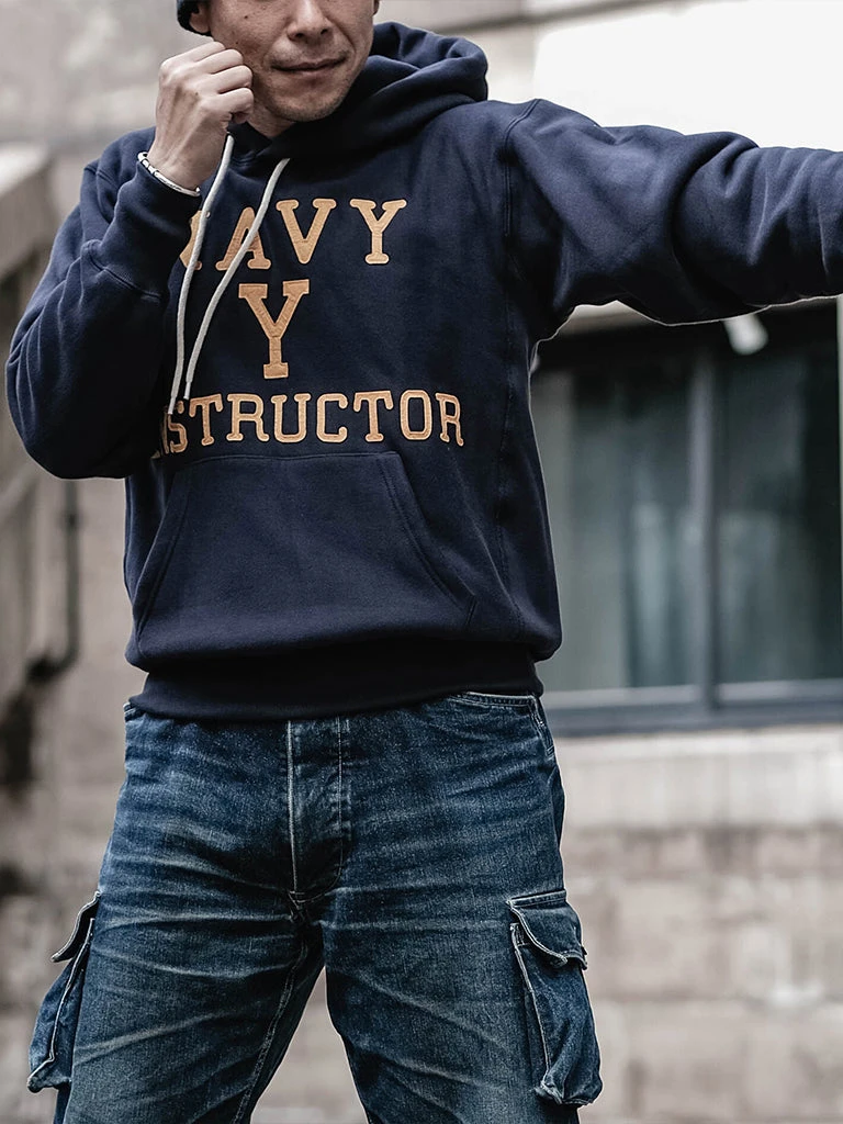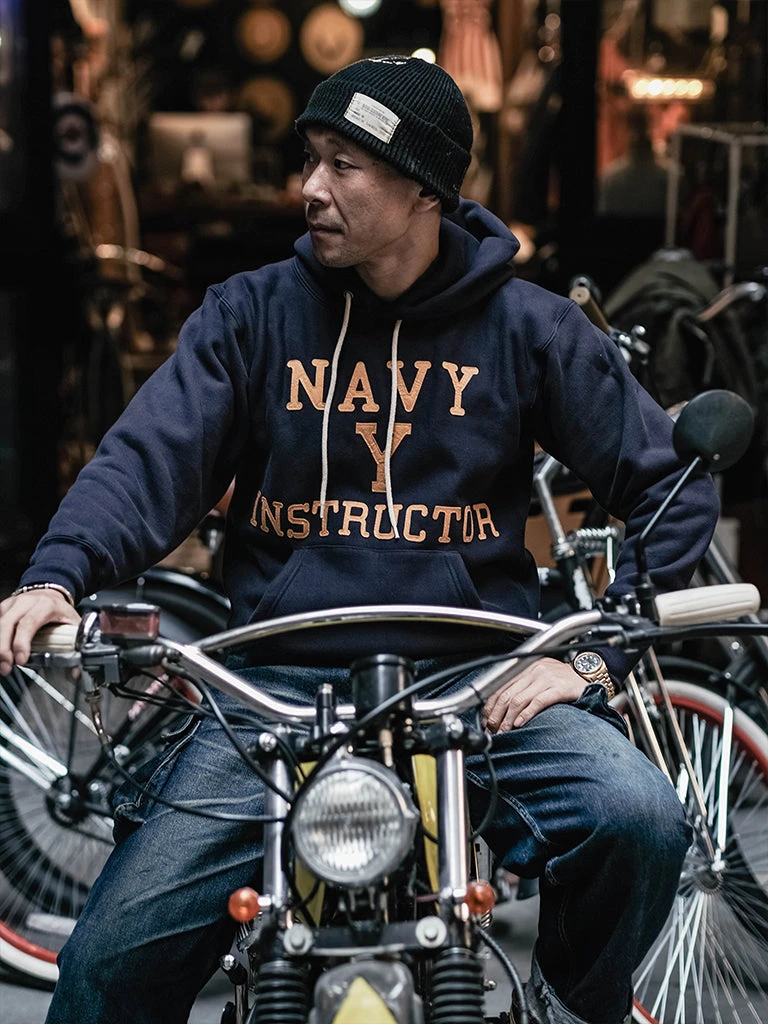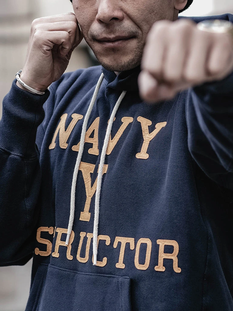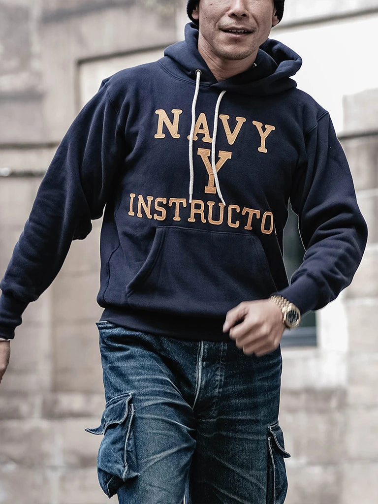 Based on the Navy Yard Training Hoodie, the felt letter “NAVY Y” on the chest stands for Navy Yard. Boxing instructors usually wore these hoodies in shipyards.