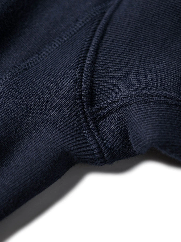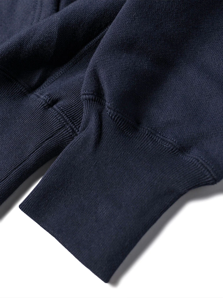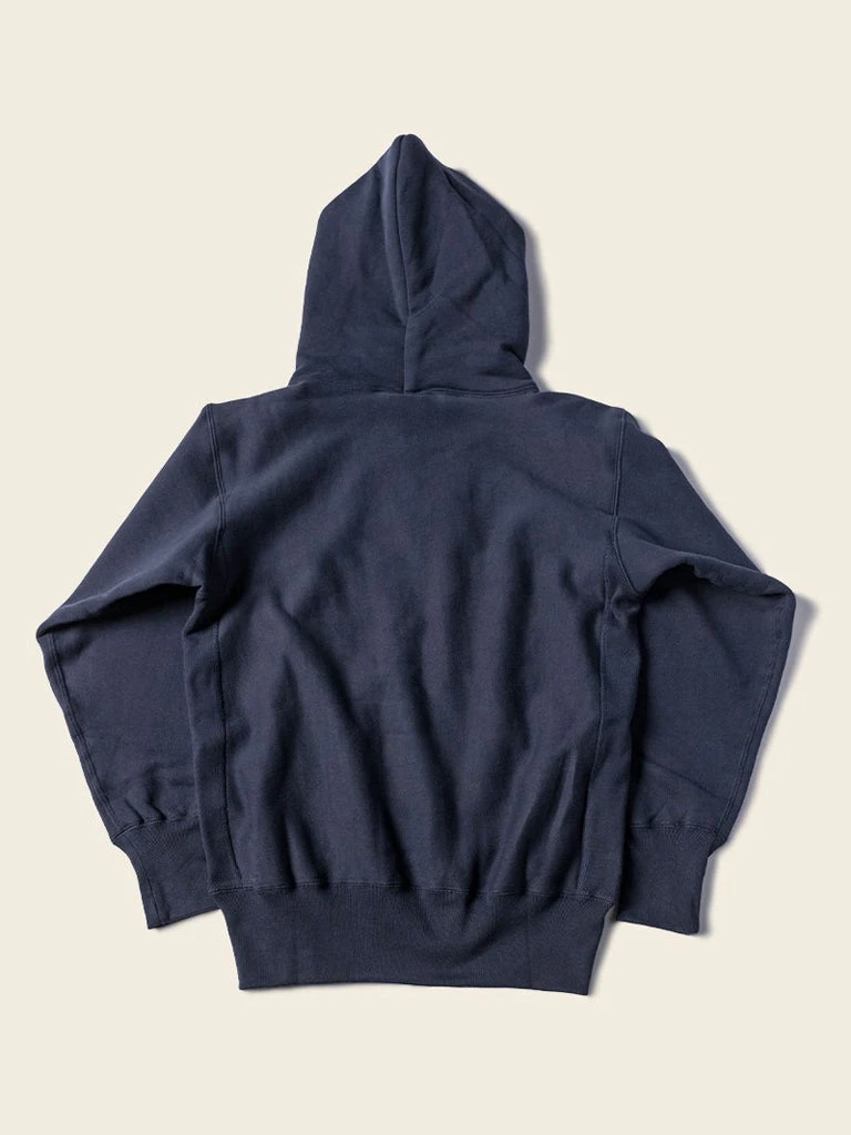 This hoodie is made of heavyweight reverse weave terry cloth cut on the cross-grain to resist vertical shrinkage, and it makes it more durable.