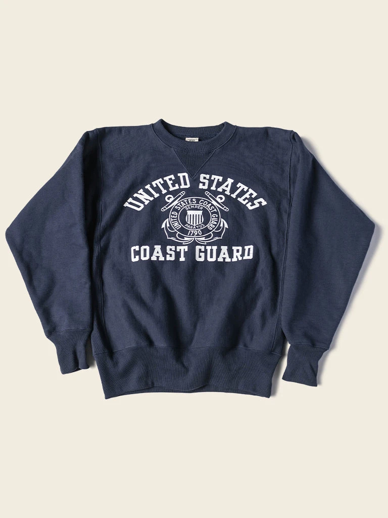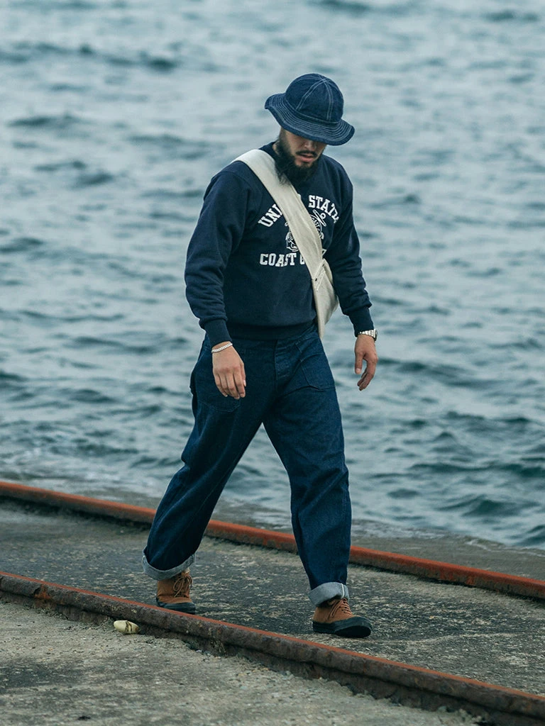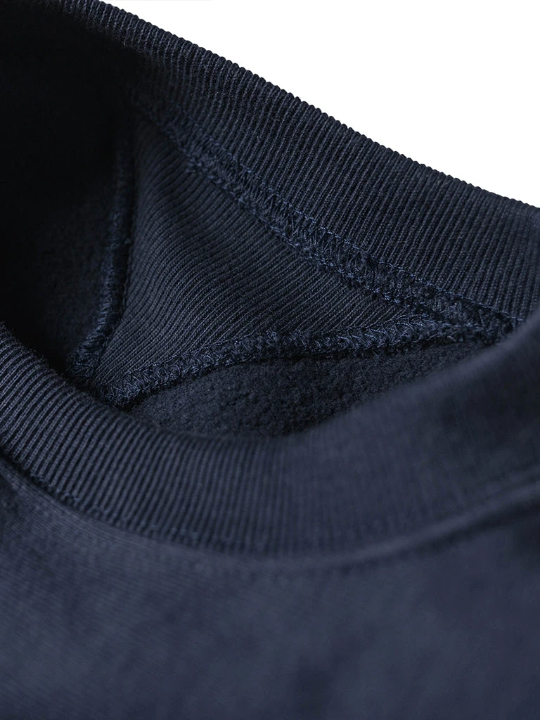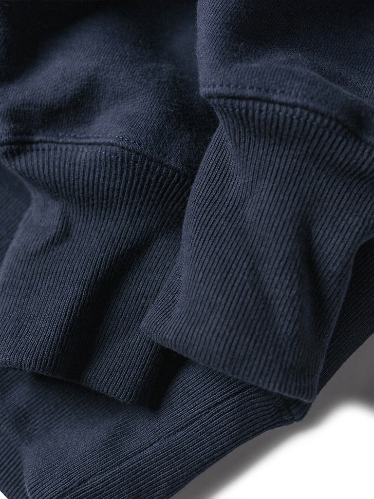 It is based on the United States Coast Guard sweatshirt. This sweatshirt is made of 20 oz heavyweight Reverse Weave terry cloth (after washing, reaches 21 oz), and the cut on the cross-grain to resist vertical shrinkage. The retro classic sewing process is adopted and adopts the Four needle six lines sewing process at the stitching thread of the sleeve body, making it more durable.