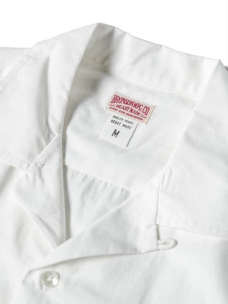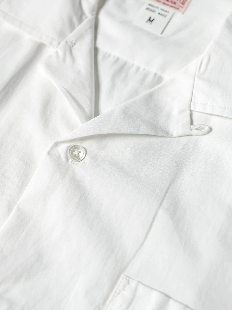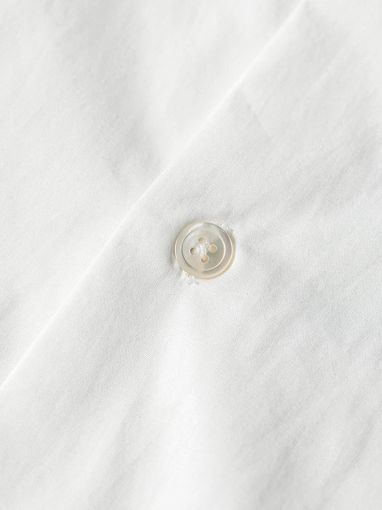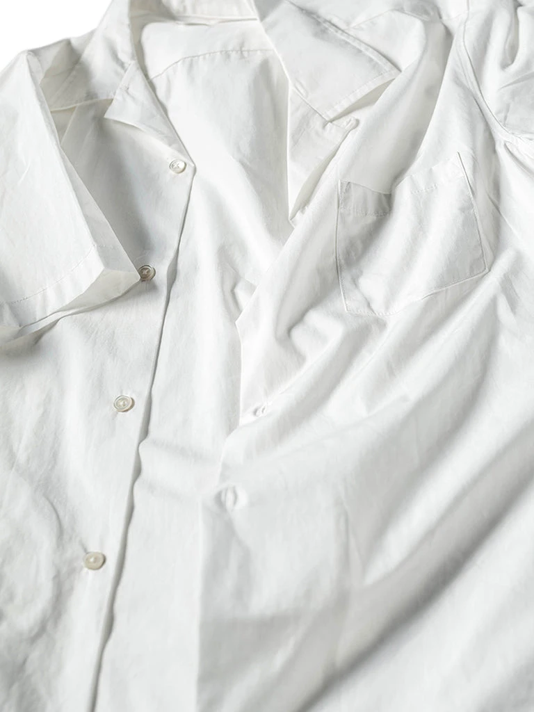 This classic Panama open collar shirt is made of cotton poplin fabric with natural shell buttons, has ivory white & dark gray two colors.