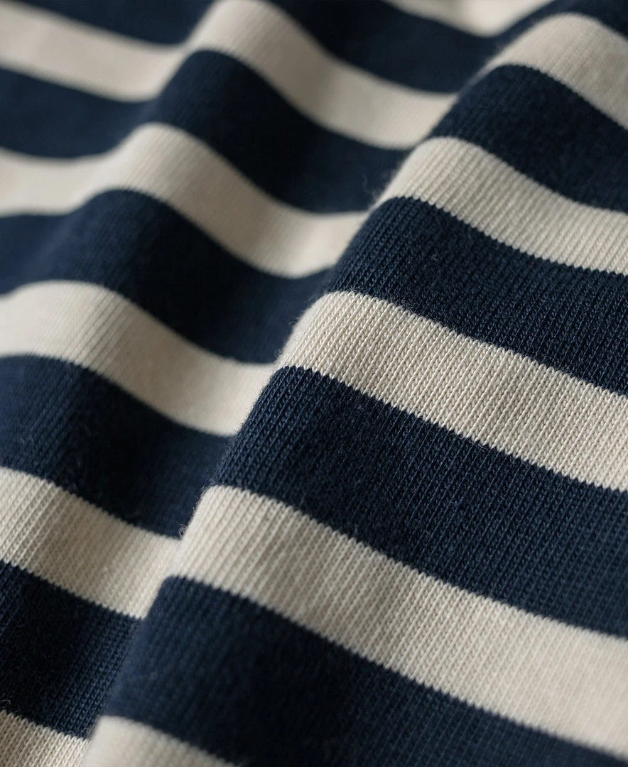 It became fashionable a century later. The classic Bretton blue and white stripes are the symbols of the sailor, and the collar is also a prominent symbol of the French sailor’s shirt. The collar’s wonderful use is that it can quickly take off clothes after falling into the water, and won’t jam the neck.
