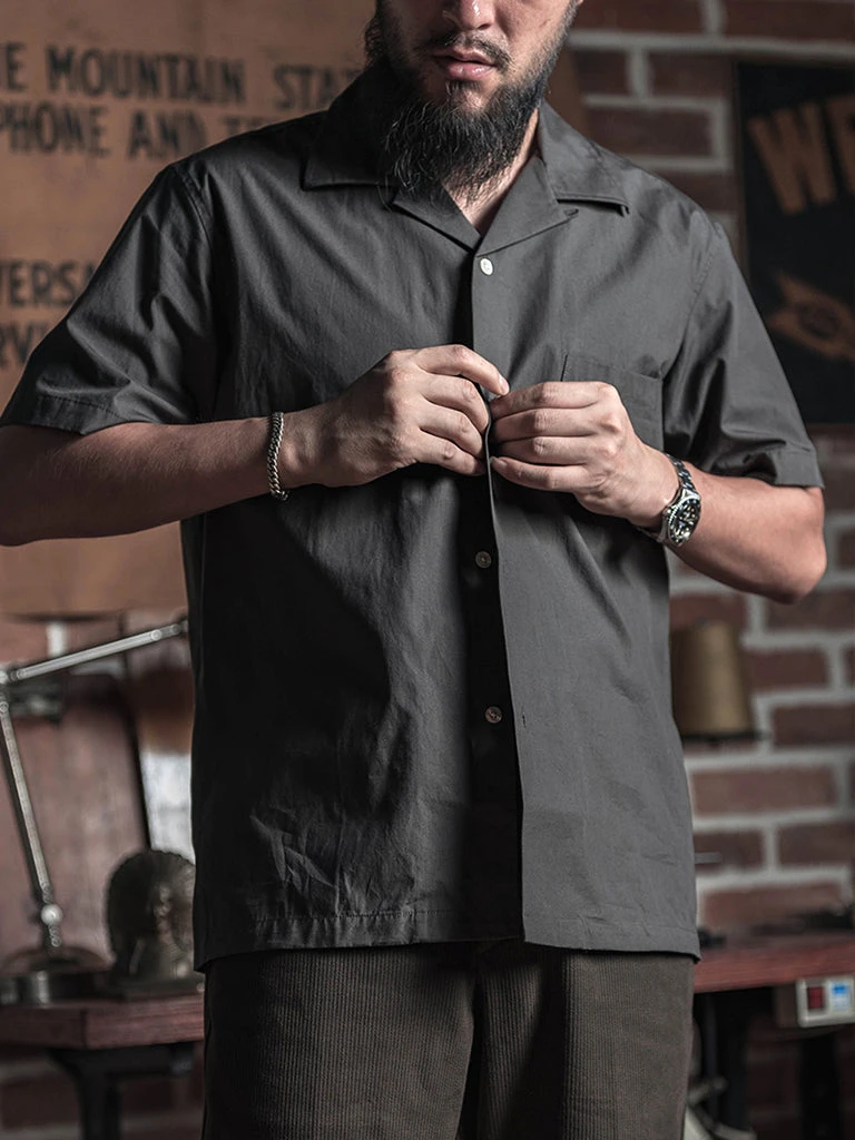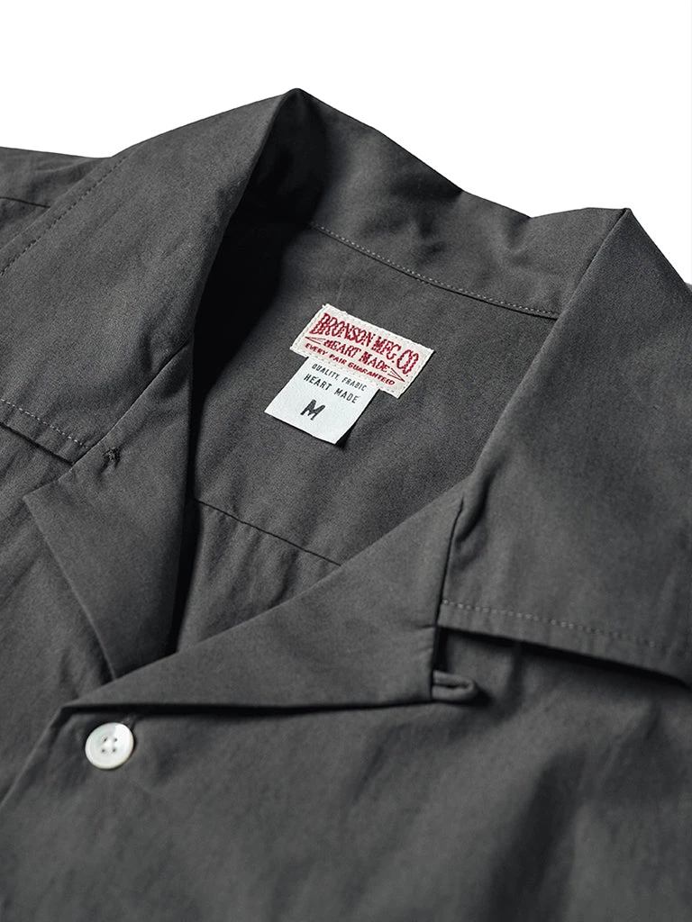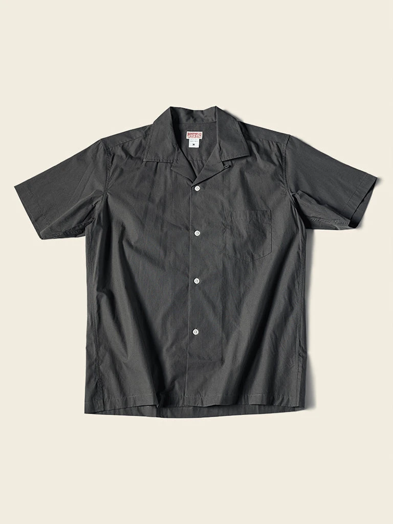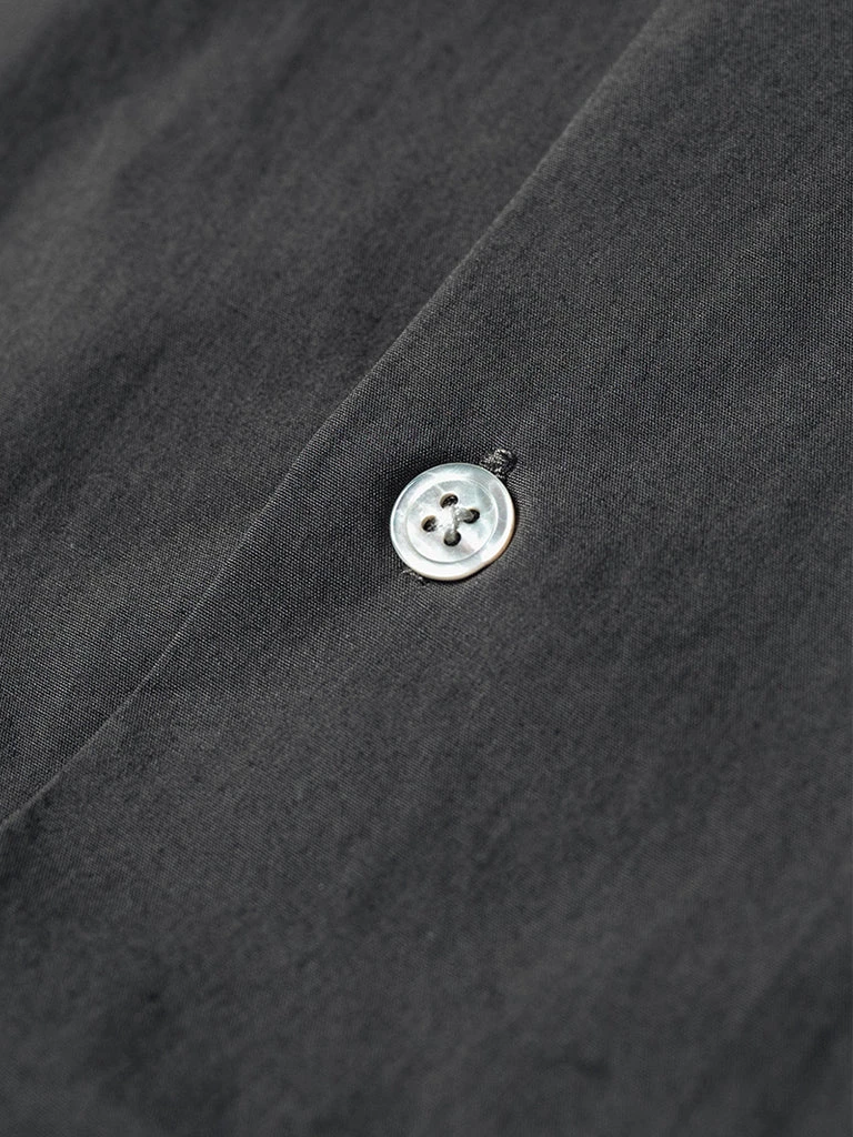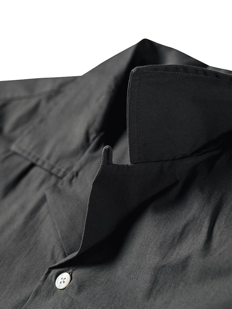 This classic Panama open collar shirt is made of cotton poplin fabric with natural shell buttons, has ivory white & dark gray two colors.
