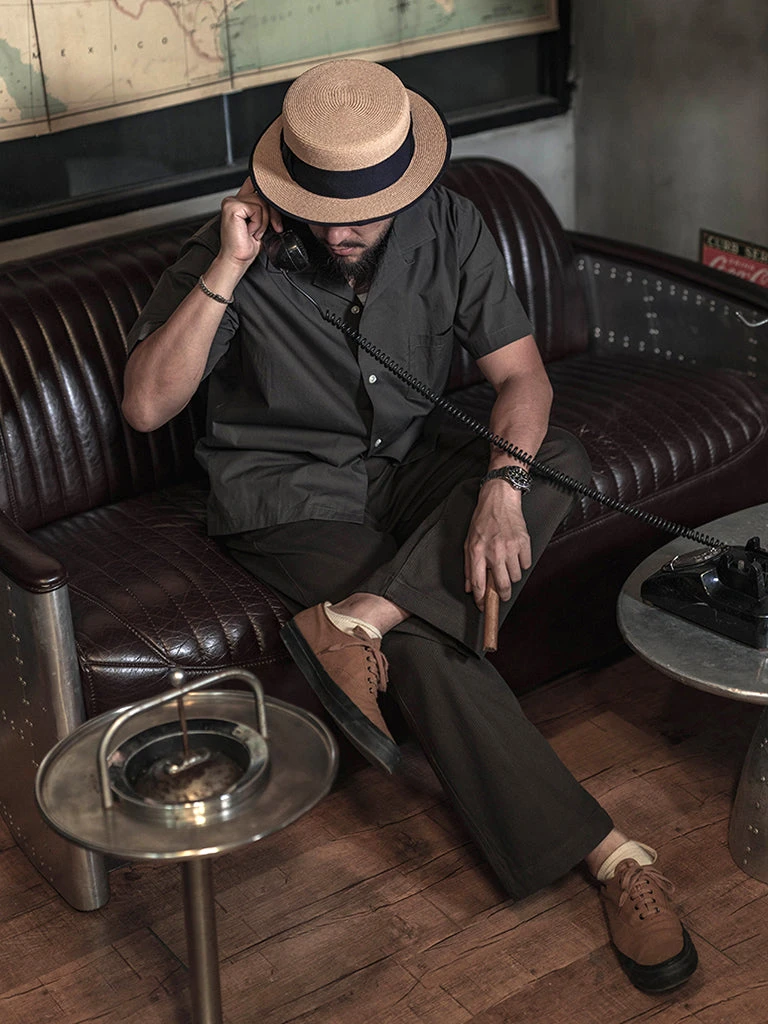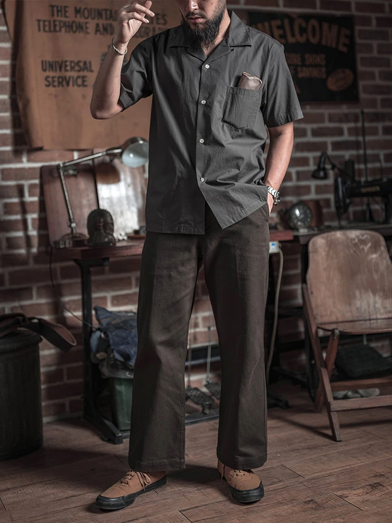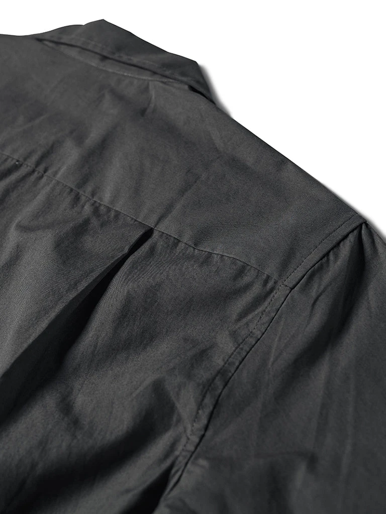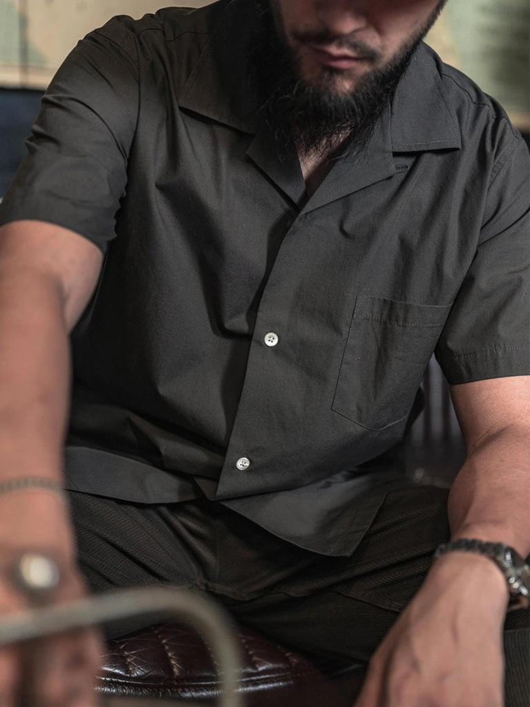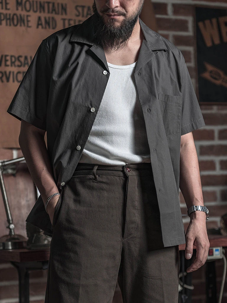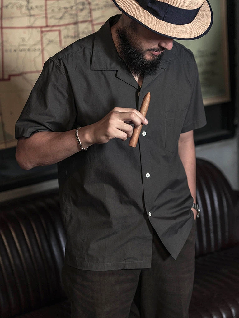 This classic Panama open collar shirt is made of cotton poplin fabric with natural shell buttons, has ivory white & dark gray two colors.