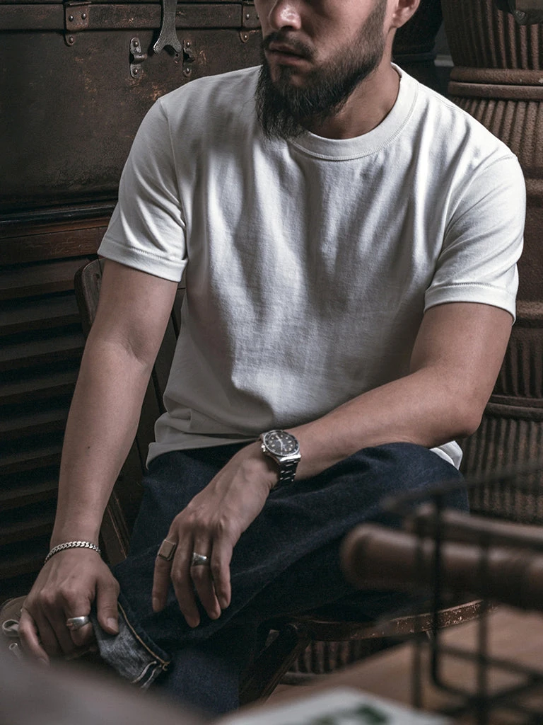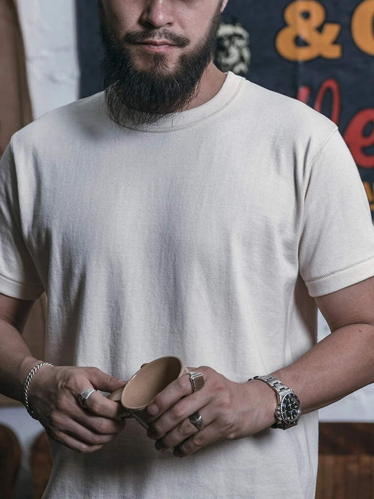 The absence of seams and high quality 10.5 oz ringspun cotton fabric makes for a t-shirt of ultimate comfort and quality.