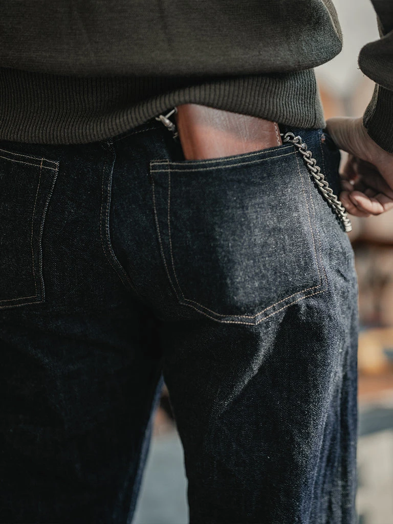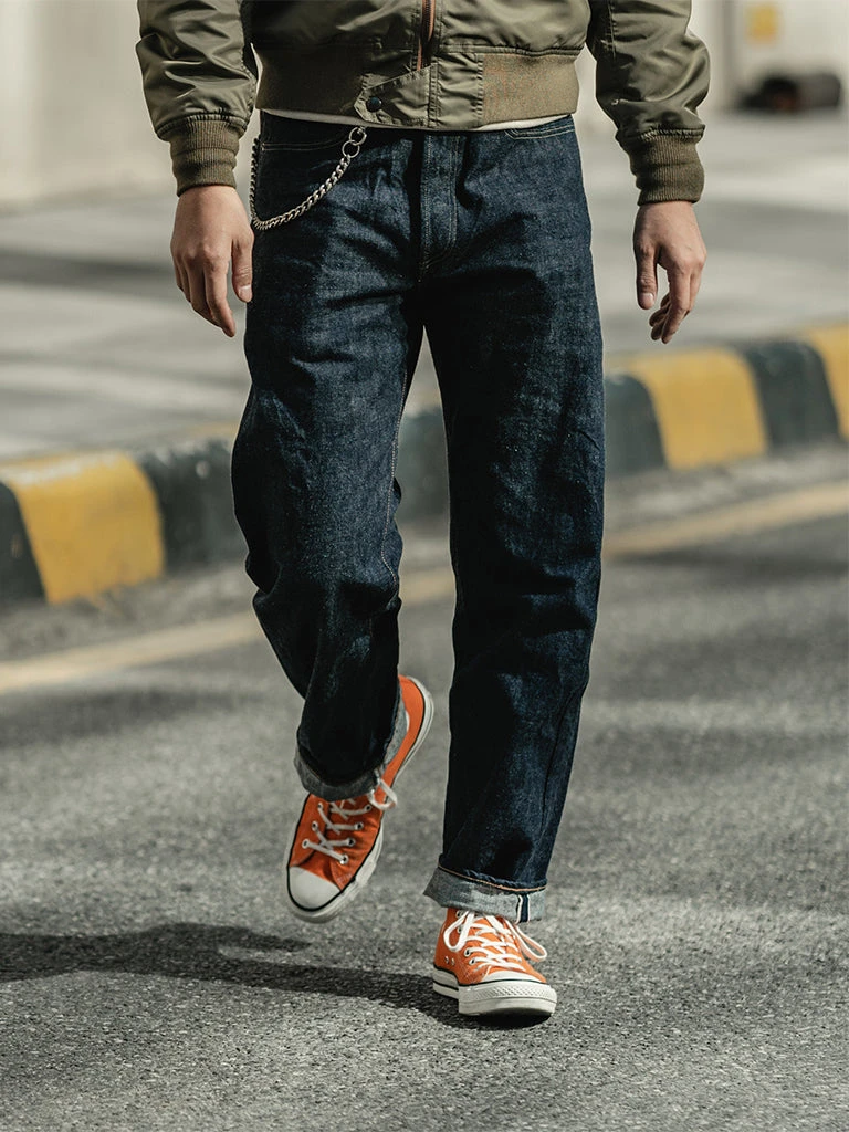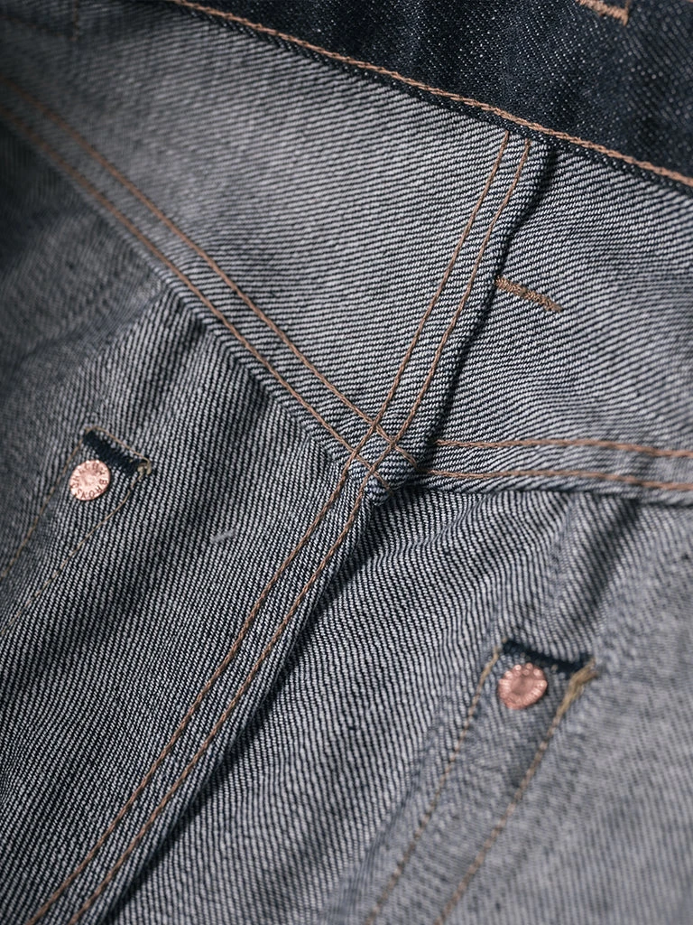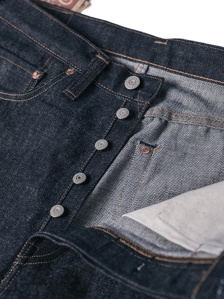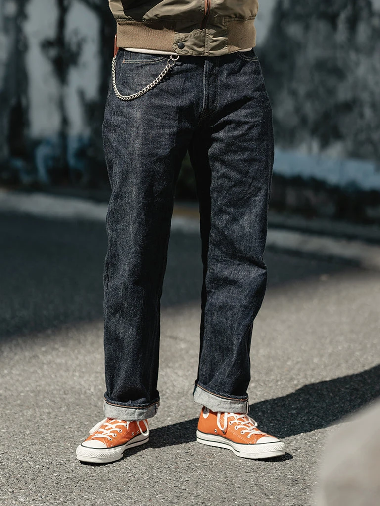 This is a reproduction of 1950s 501XX denim jeans. It’s made of 13.7 oz. selvedge denim (after one wash, it will reach about 14.5 oz.), 5-pocket style, Faithfully restore the details of the original version.