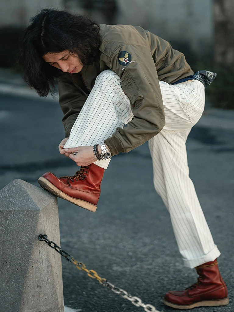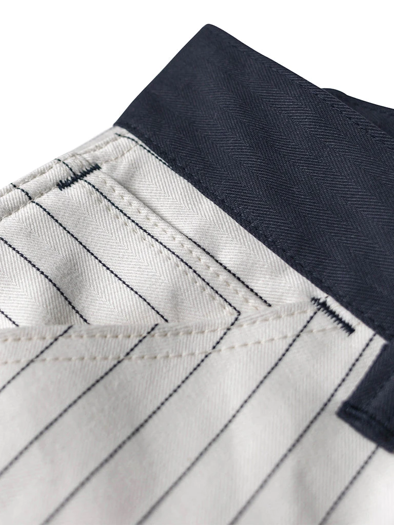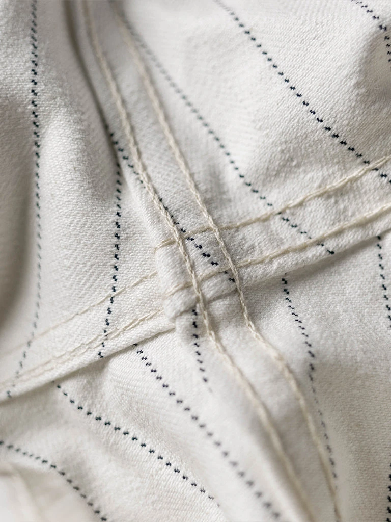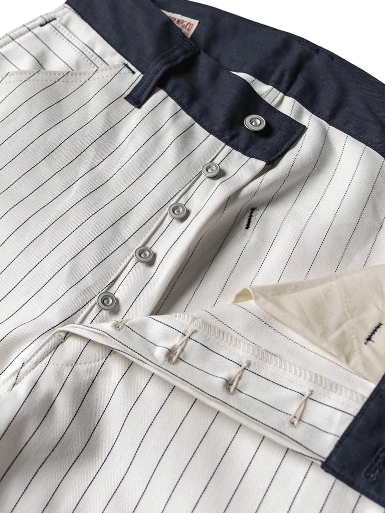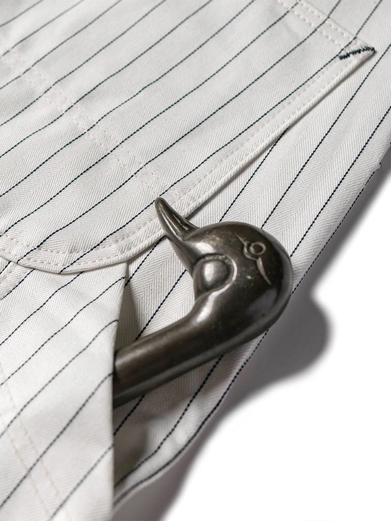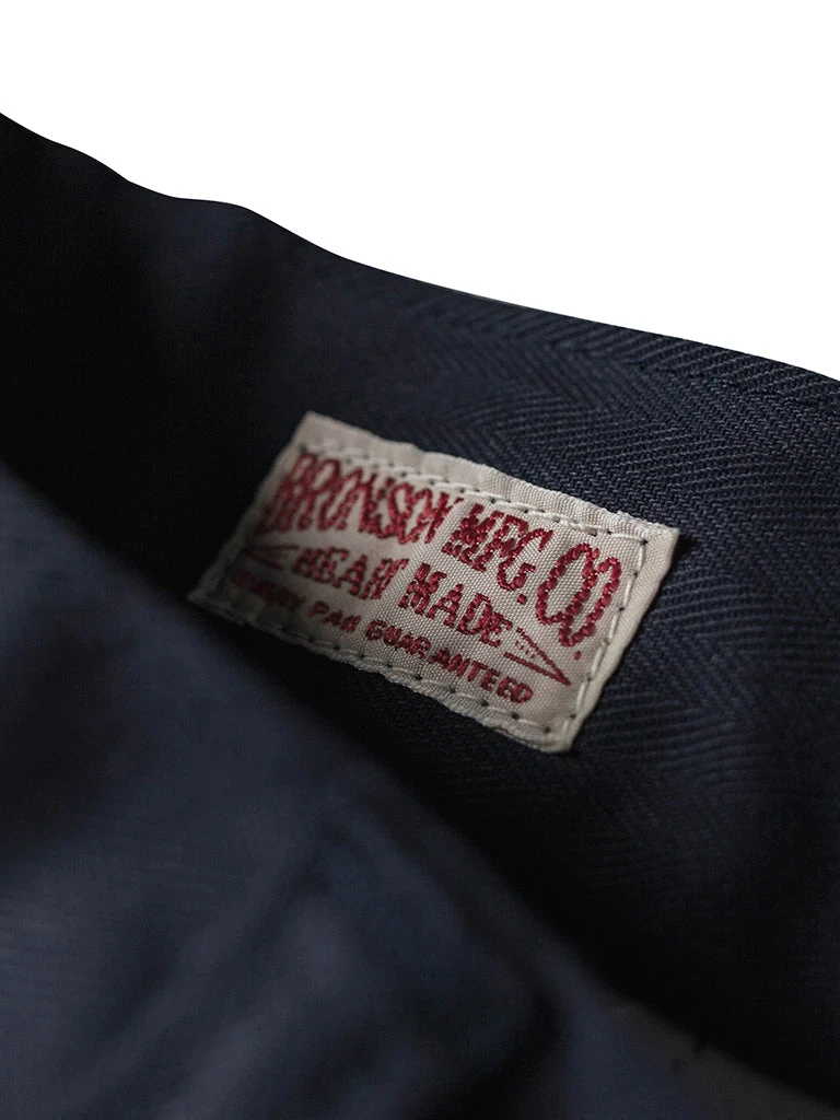 Based on 1950s split work pants, they are widely used by carpenters, railroad workers, and other types of mechanical maintenance workers. The pants are custom-made in 10.5 oz yarn-dyed herringbone twill (HBT) fabric, restoring the texture of the original.