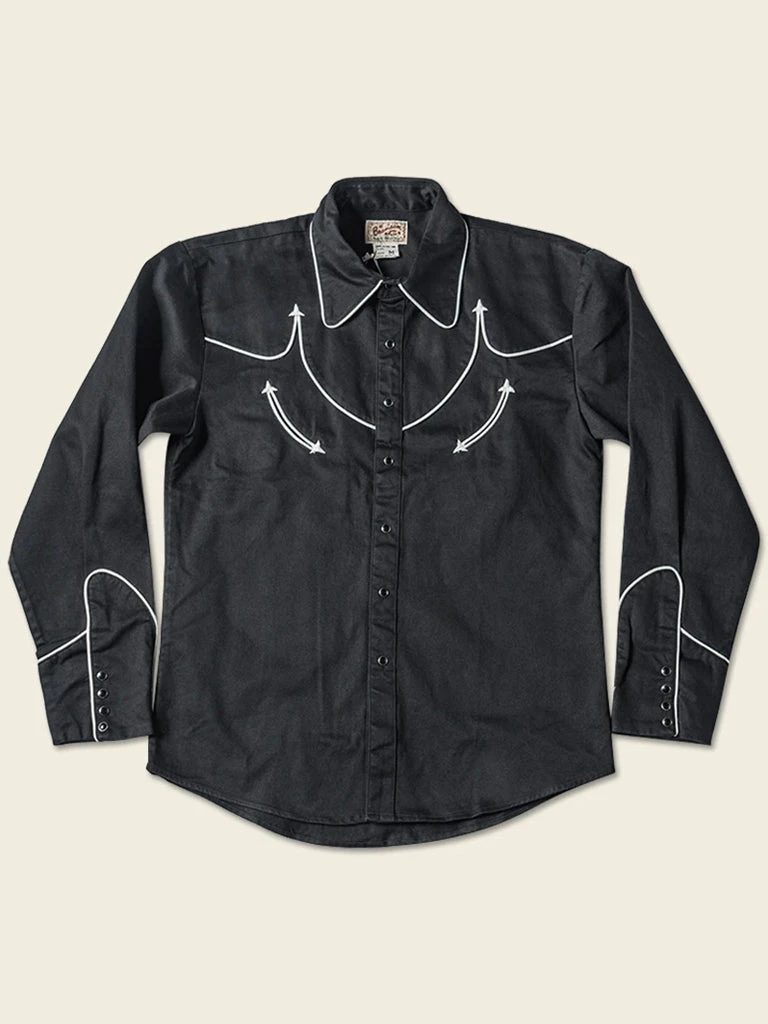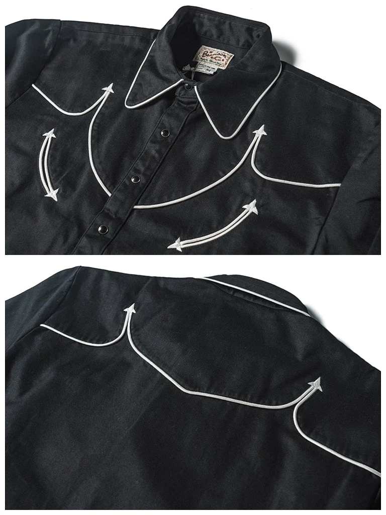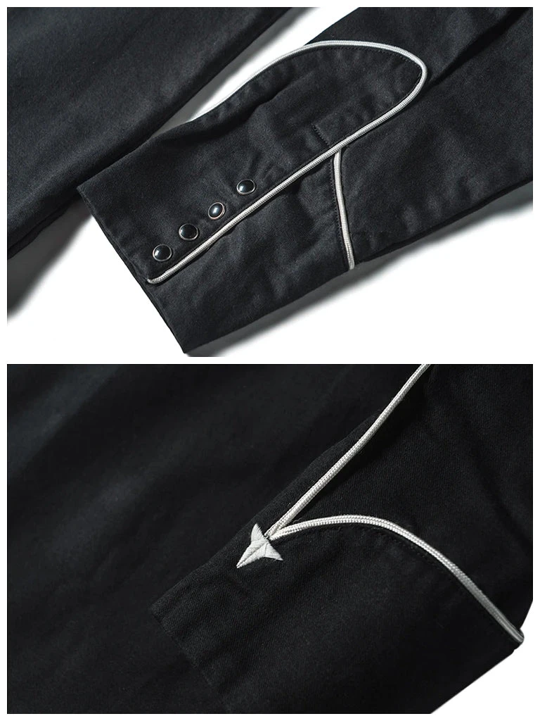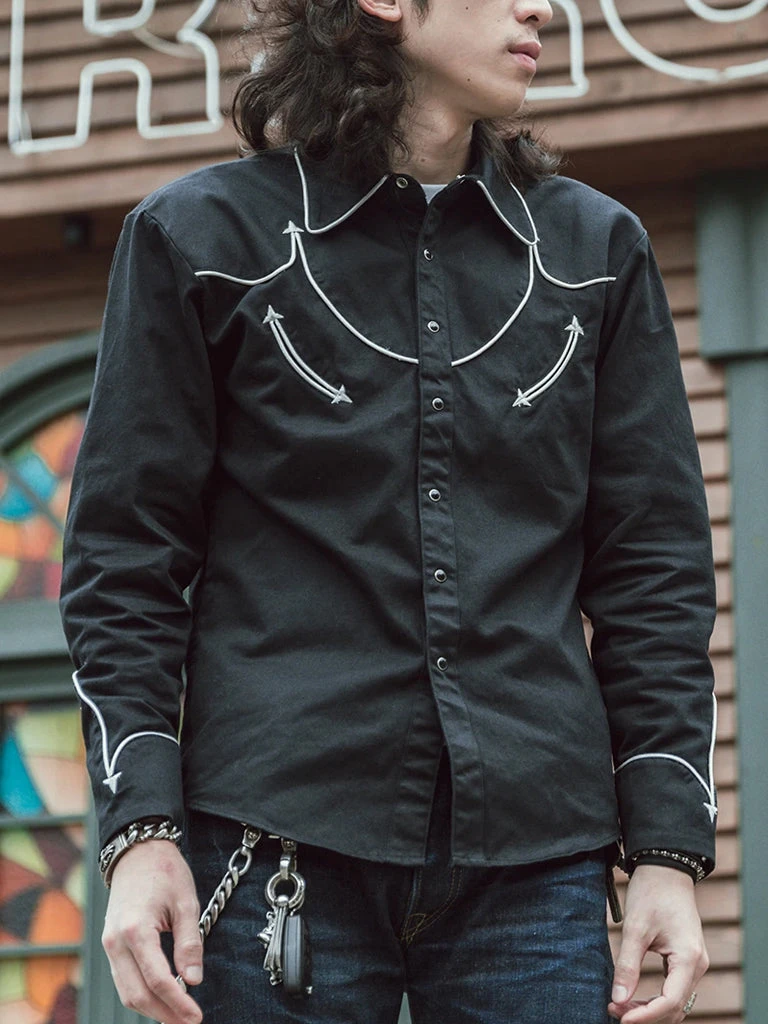 This is an American western-style shirt, showing a strong western romantic style. It is made of a 10.5 oz heavyweight cotton satin drill and retro bound seam craft.