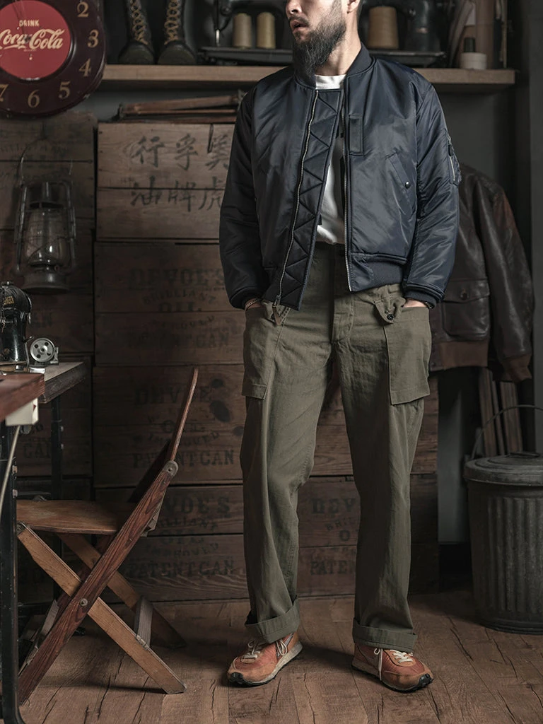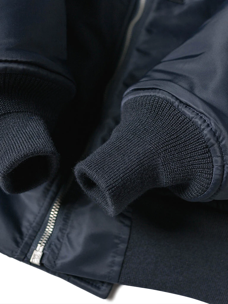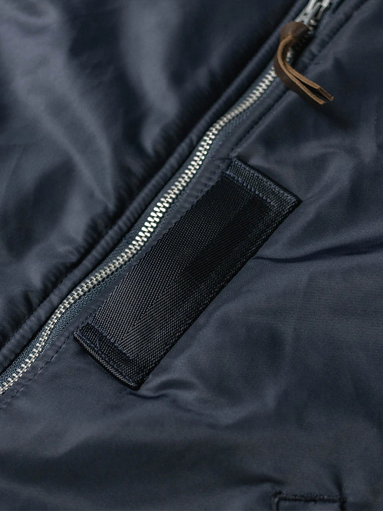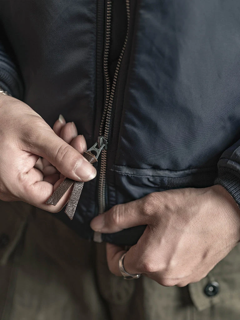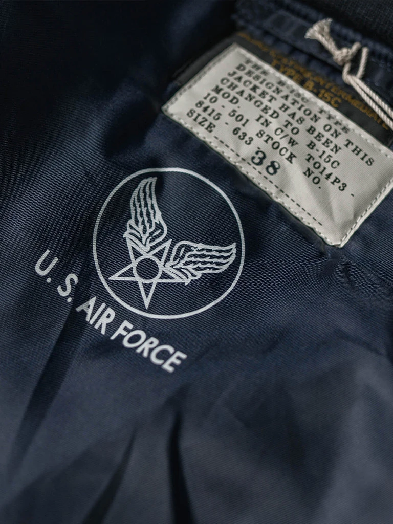 Only four models of the Air Force jacket are blue, they are N2A, N3A, L2, B-15C. The B-15C(MOD) version replaces the wool collar with a ribbing one, it is made from a custom-made fabric that authentically replicates the true color and characteristics of the highly durable nylon material from that era.