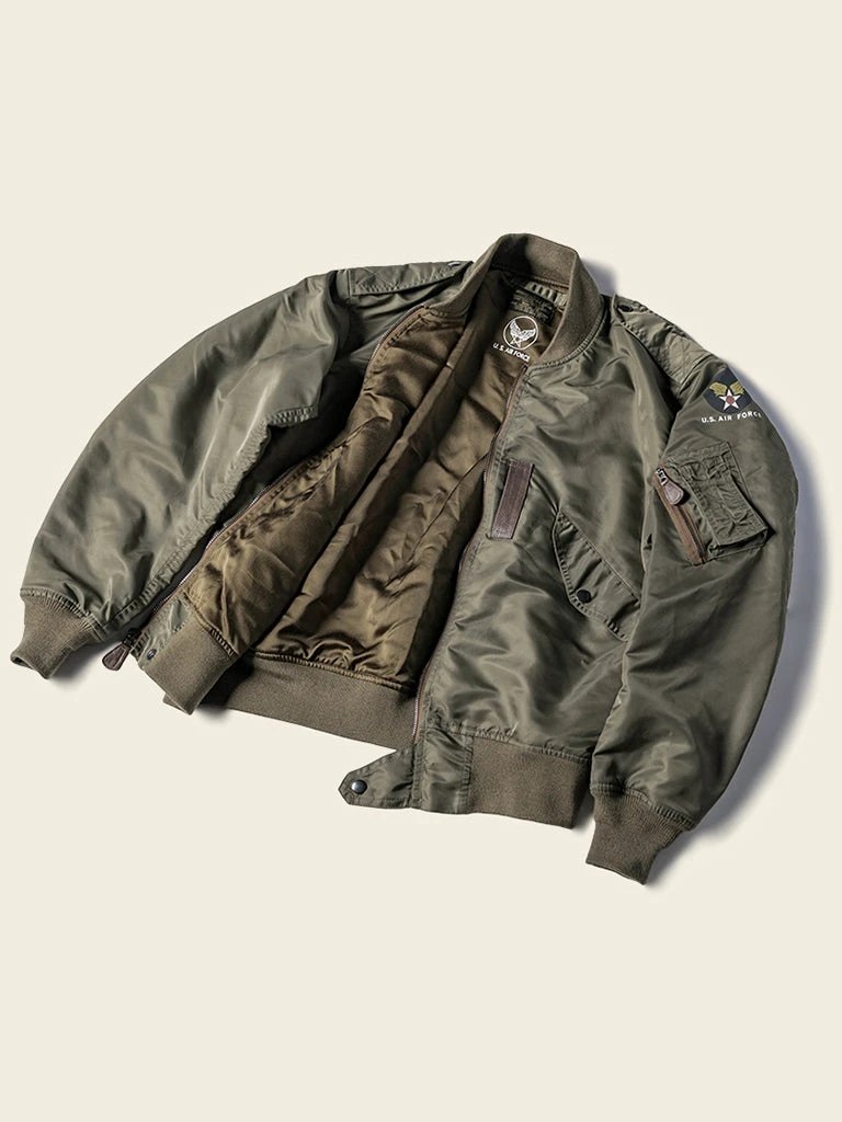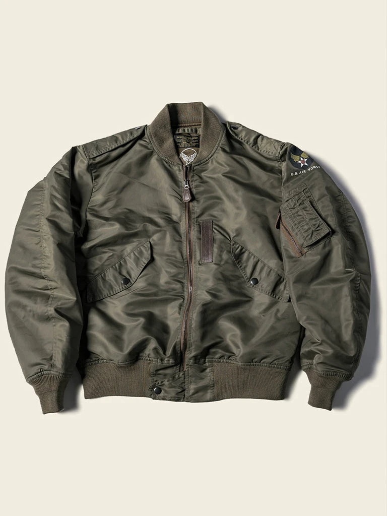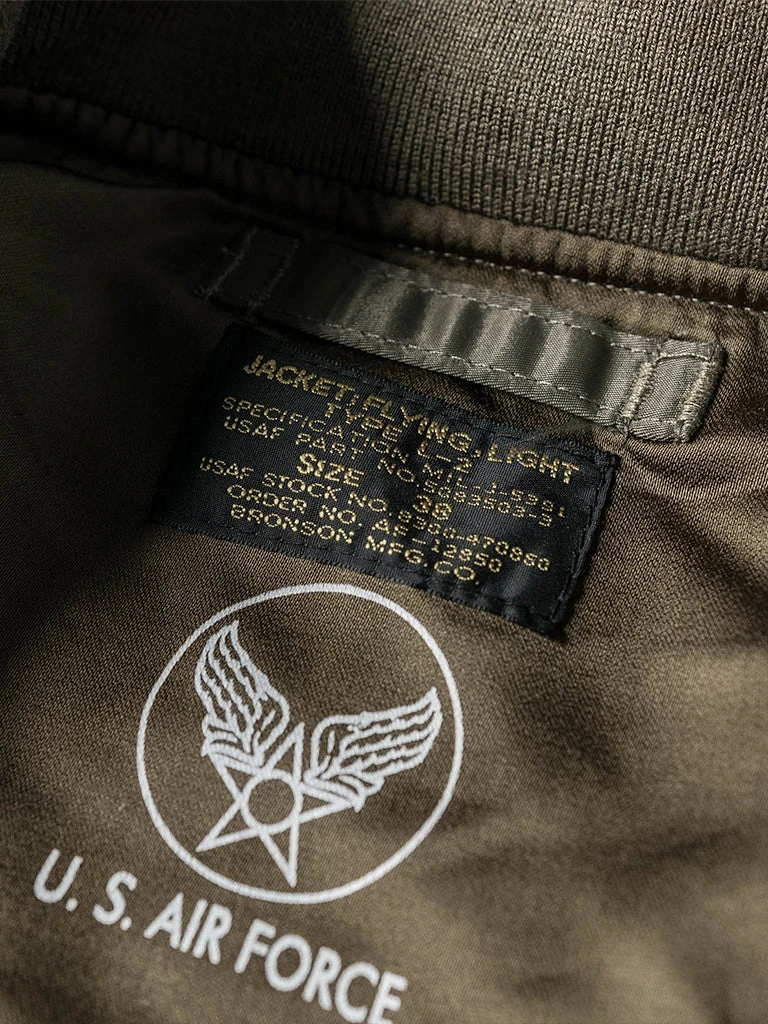 Introduced from 1946 to 1949, the L-2 is the masterpiece of the light flying jacket, used mainly in warm weather and summer. The L-2 was the successor of the A-2, which was to replace nylon as the main fabric from leather. The design is based on the B-15, removing the mouton shearling collar, replacing it with wool knit collars. The leather was replaced due to inconsistent sourcing and evolution of jet engine aircraft. The L-2 was only produced for a short span quickly replaced by the L-2A making it a rare jacket in the vintage industry.