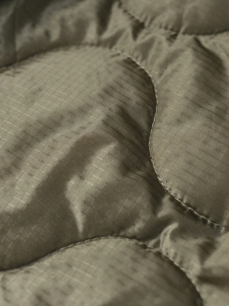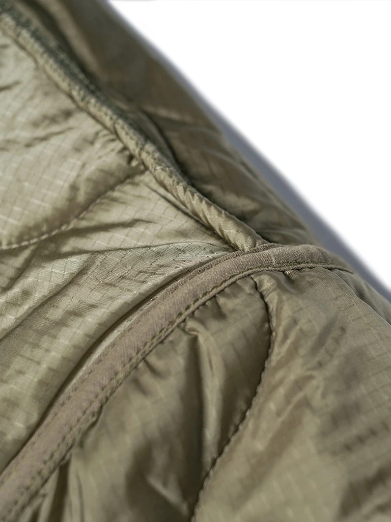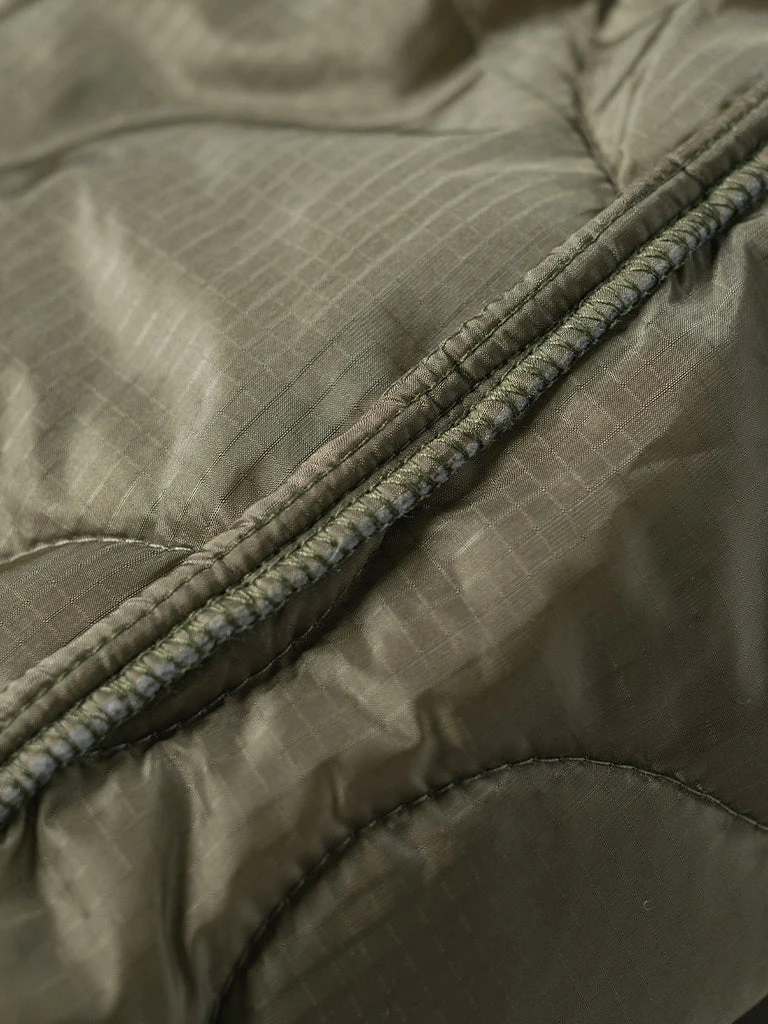 This is a reproduction of the US Army 1st Model M-65 Field Jacket Liner, and lightweight is the feature, Made with thin nylon mesh silk cotton, The underarm is an open type and wearing underarm comfort, it also has the function of heat dissipation and dehumidification. It can be matched with the Bronson US Army 1st Model M-65 Field Jacket.