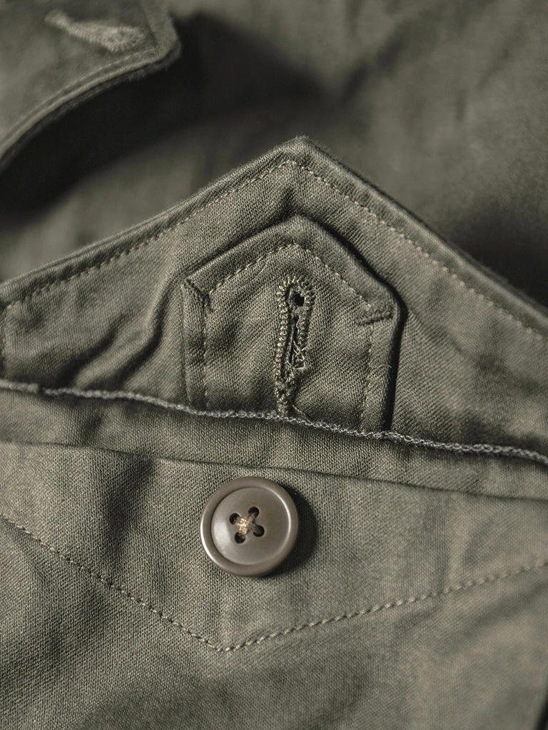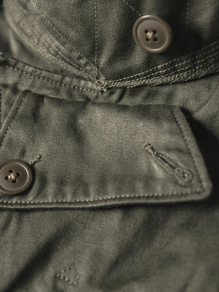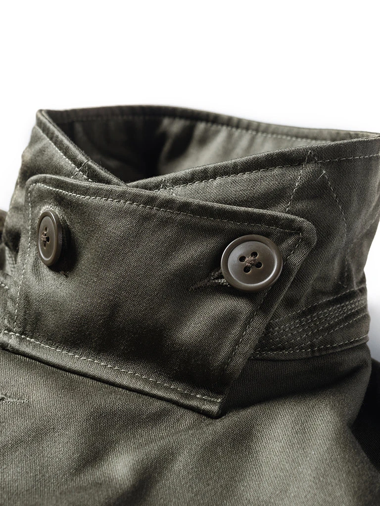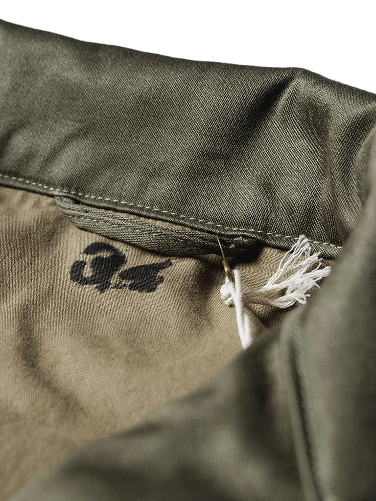 This M-1943 is made of cotton sateen, was originally issued with a removable hood and pile liner, making the field jacket extremely versatile in warm and colder conditions.