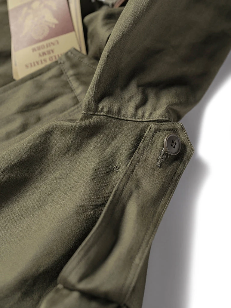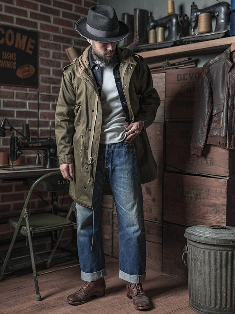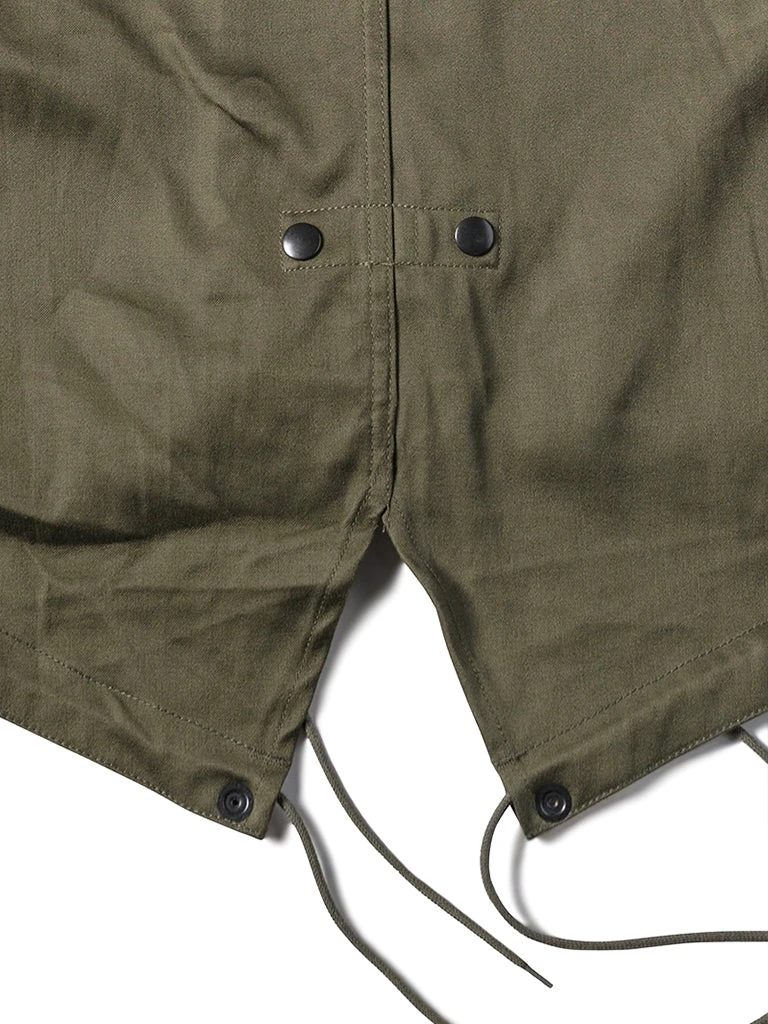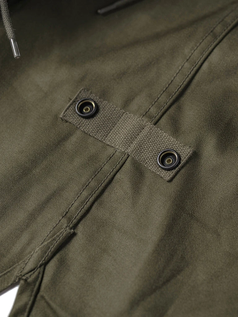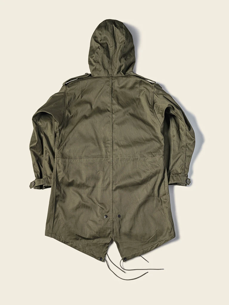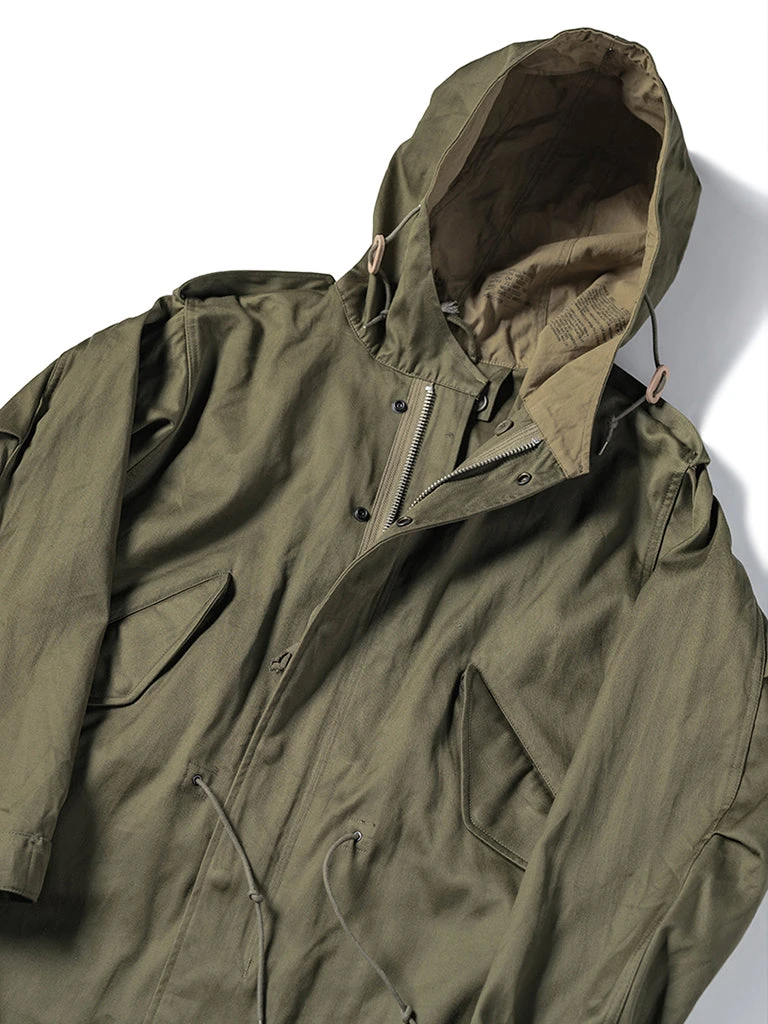 The M-1951(or M51) Parka, commonly known as the fishtail parka. It was designed by the US Army during the Korean War to cope with severe cold weather. It was a replacement for the M-48 Parka. The early M-51 Parka was made of heavy cotton sateen fabric, which was thicker. The fishtail was intended to be tied around soldiers’ legs for additional cold-weather protection. The M-51 parka can add a wool liner to the inside.