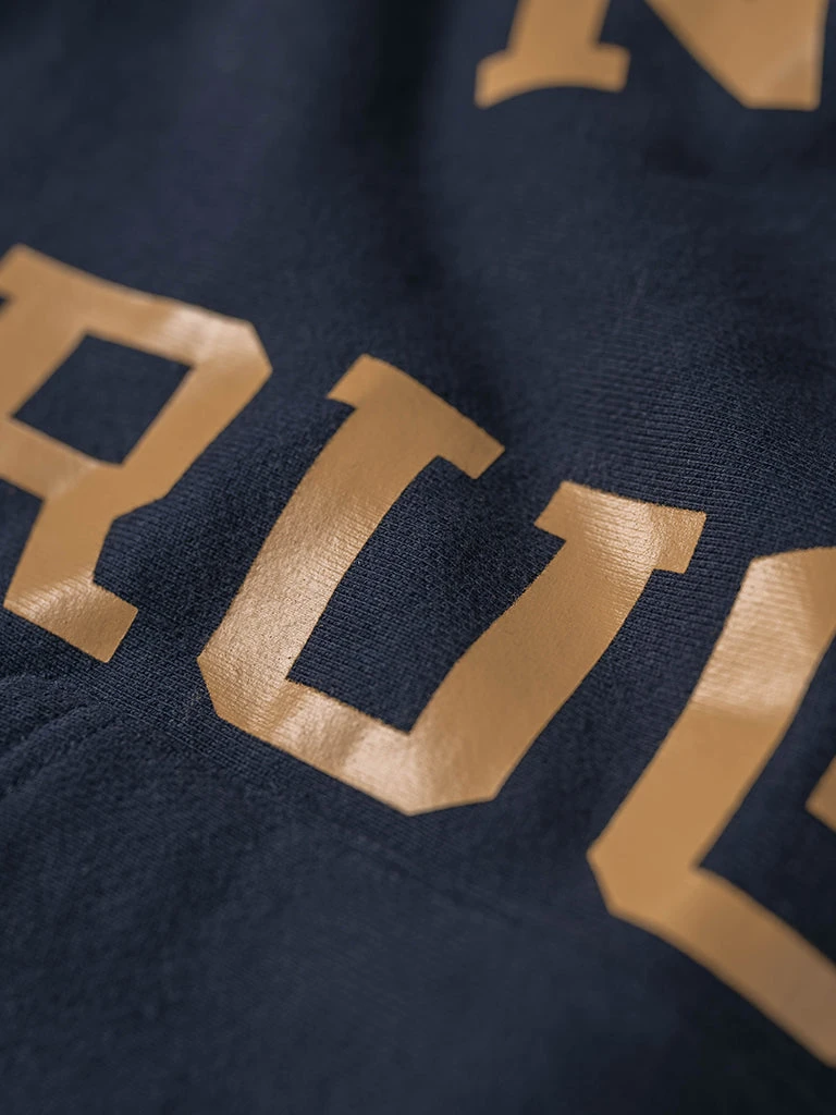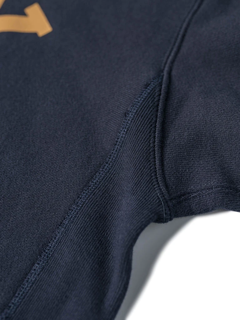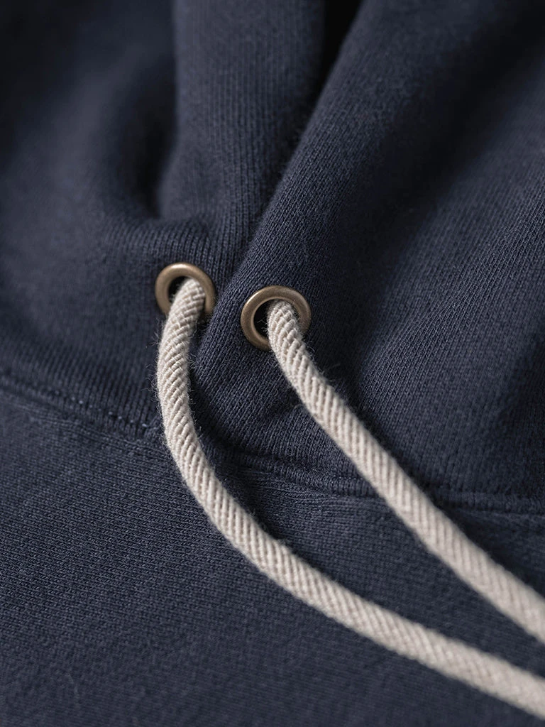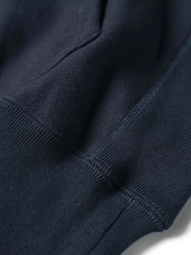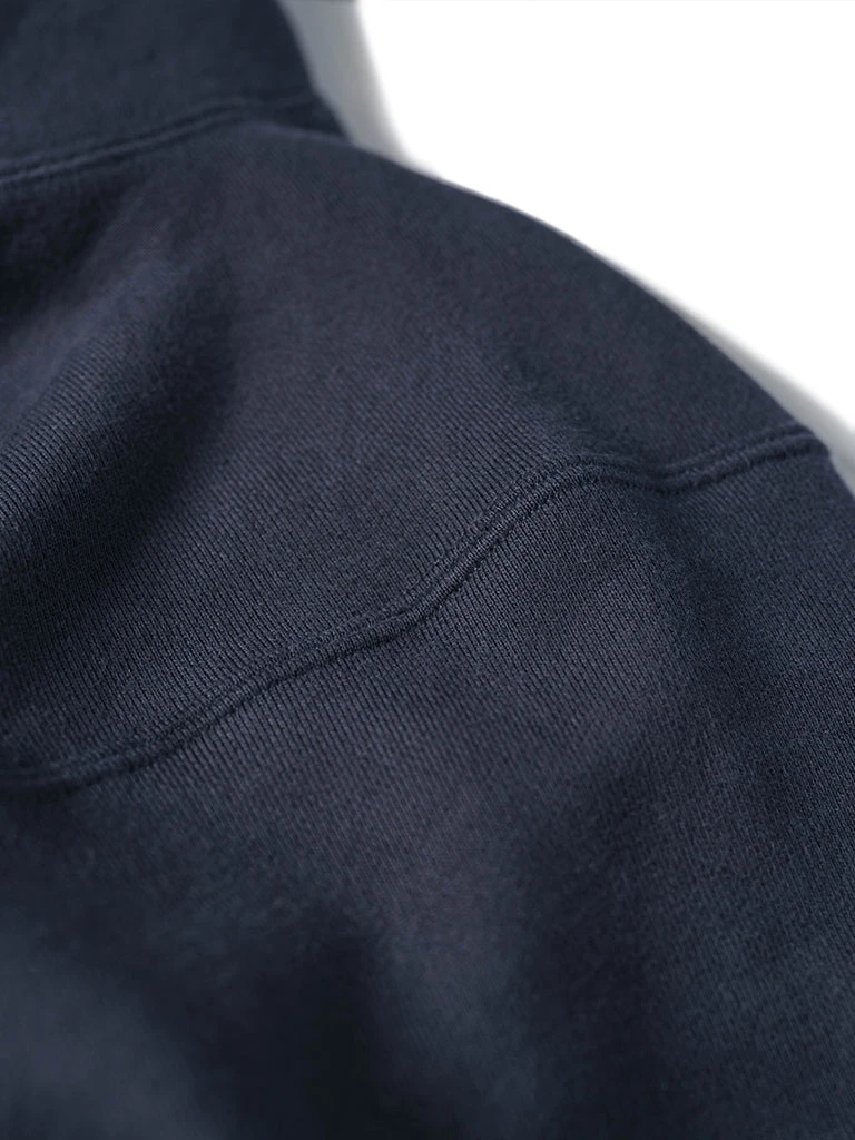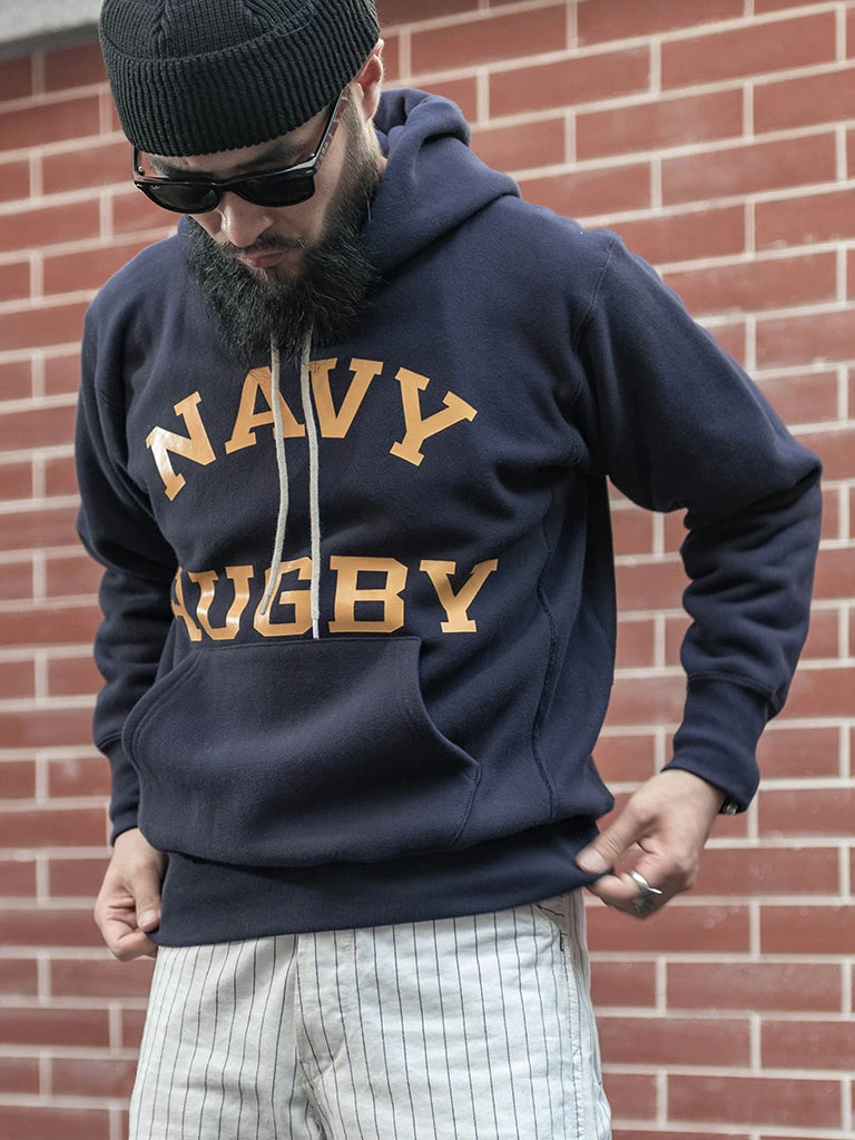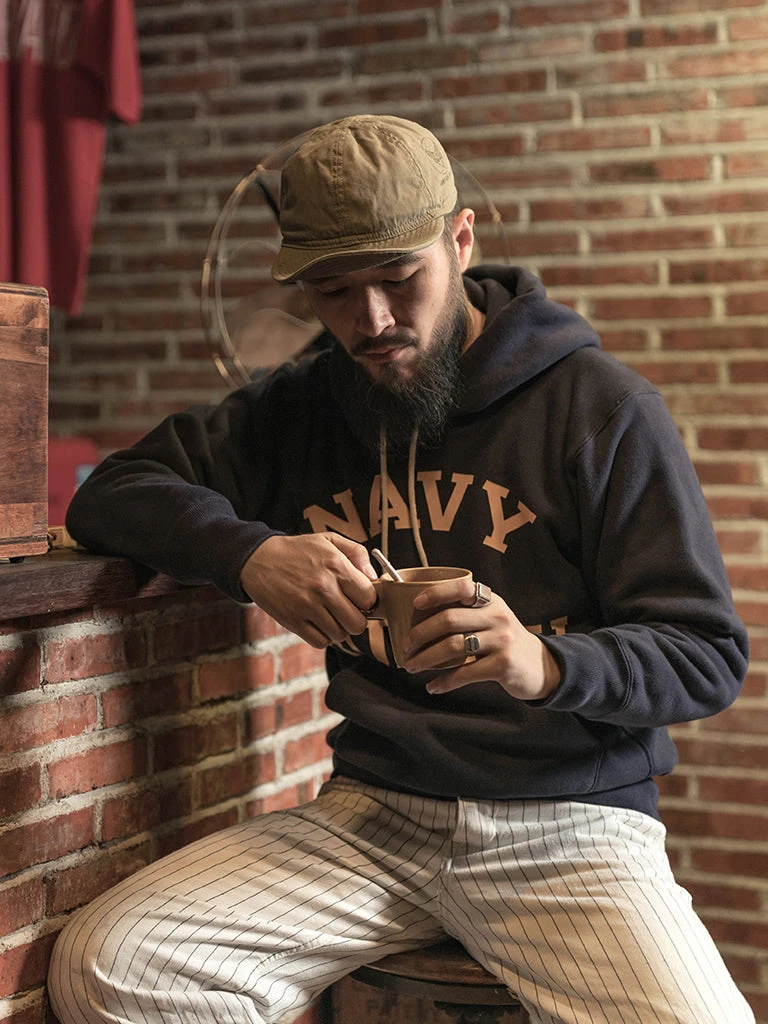 Based on an original version of the US Naval Academy training hoodie, made of 21 oz terry cloth(US cotton), woven on a vintage loom, using an old-time classic reverse weave cut, it is not easy deformed and is very durable.