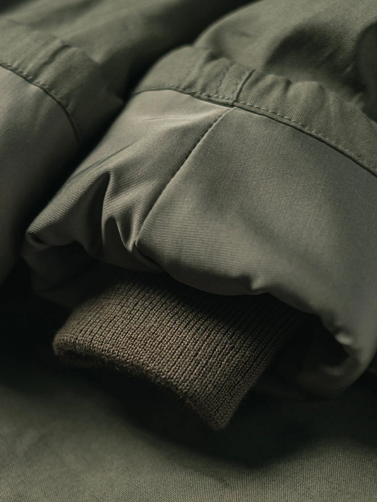 Bronson AL-1 flight jacket is made of a high-density fine canvas, waterproof coating, brown flocking wool (80% wool, 20% polyester) inside, a blend of wool inside sleeves, and nylon inside. The jacket’s main zipper is a TALON #10 tin color zipper. Sleeve and side pocket with tubular seamless wool rib-knit (70% wool 30% acrylic), soft touch.