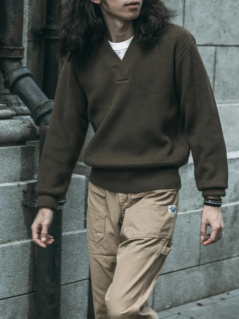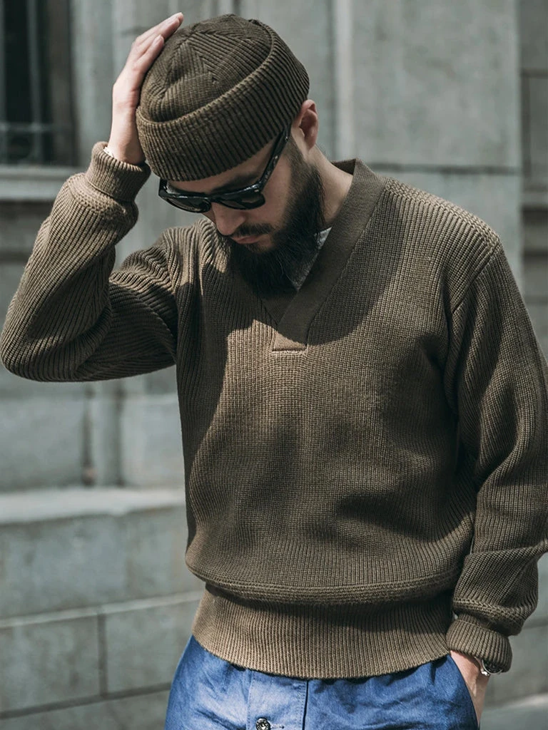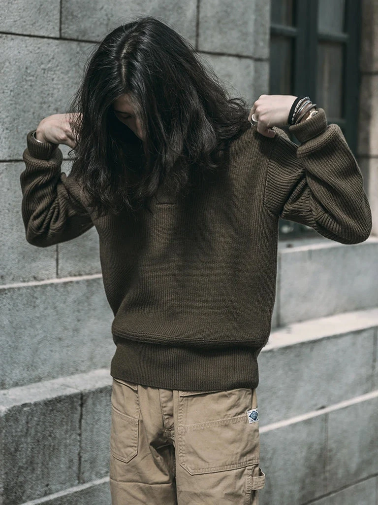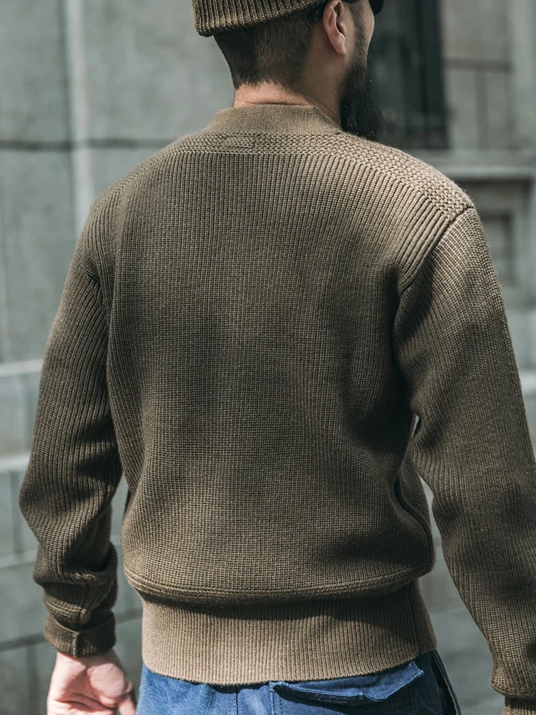 The US Air Force A-1 sweater was designed for mechanics during World War II. The C-2 zipper cardigan is generally for the officers. A-1 sweater texture is relatively heavy, suitable for cold areas use, thanks to its concise and spell able appearance and good warmth, pilots and part of the US Army Air Force (USAAF) army soldiers in its use.