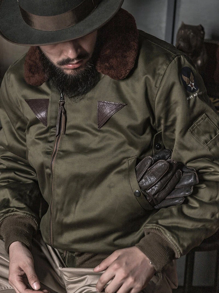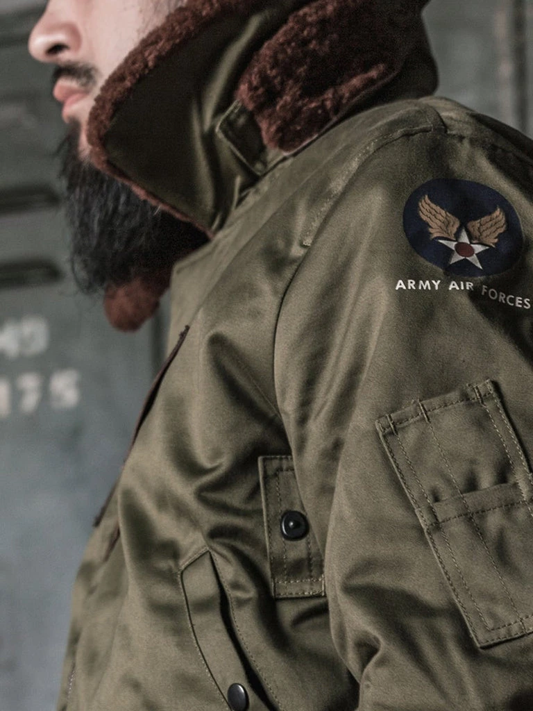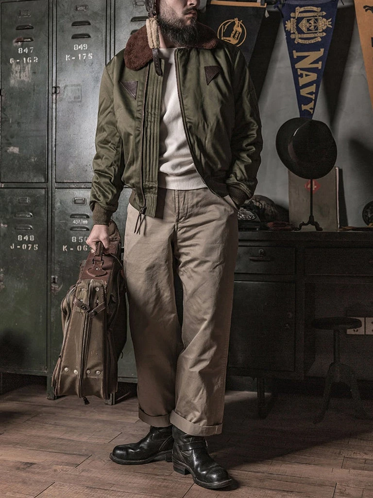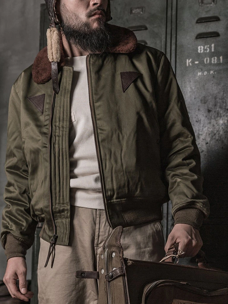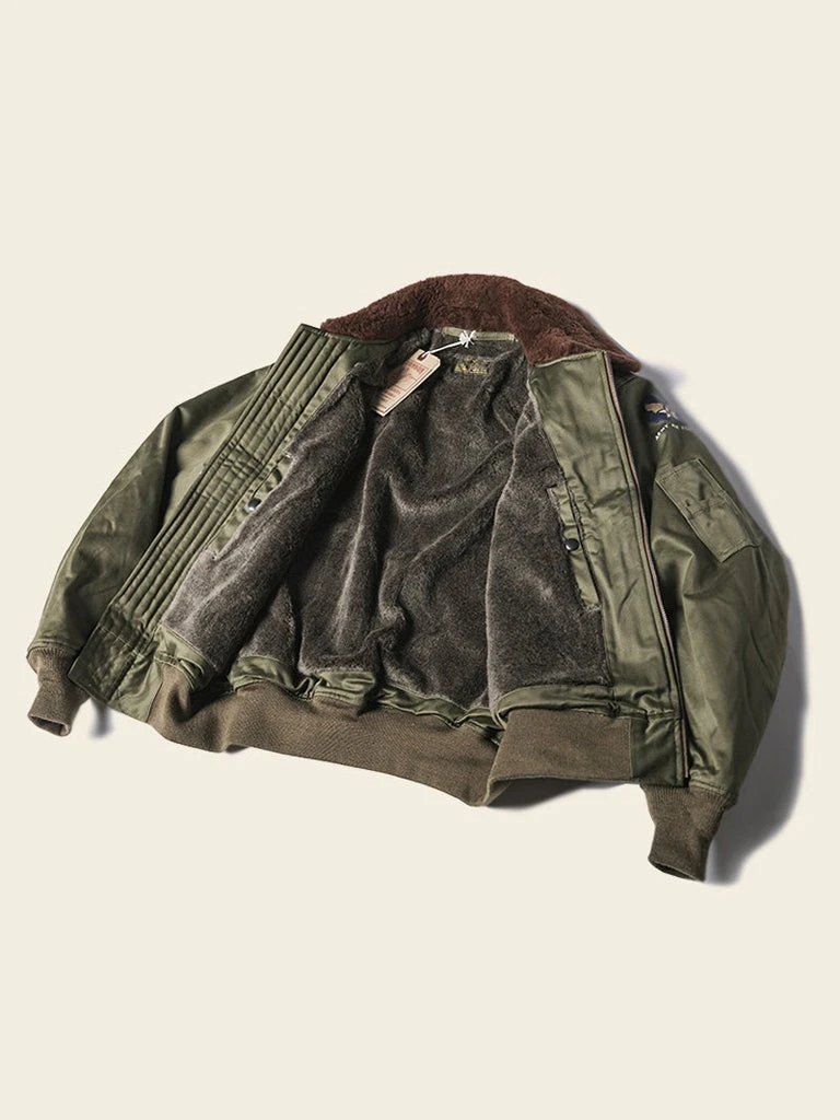 The B-15A is a very distinctive part of the B-15 series. chest of two pieces of cortex triangle let you’ll never forget, B-15A was made of cotton cloth, and later models began to use nylon cloth, The B-15 series features a larger collar than the B-10, convenient stand collars warm head, The zipper is positioned to the right of the centerline, a unique feature of the B-15 and B-15A.