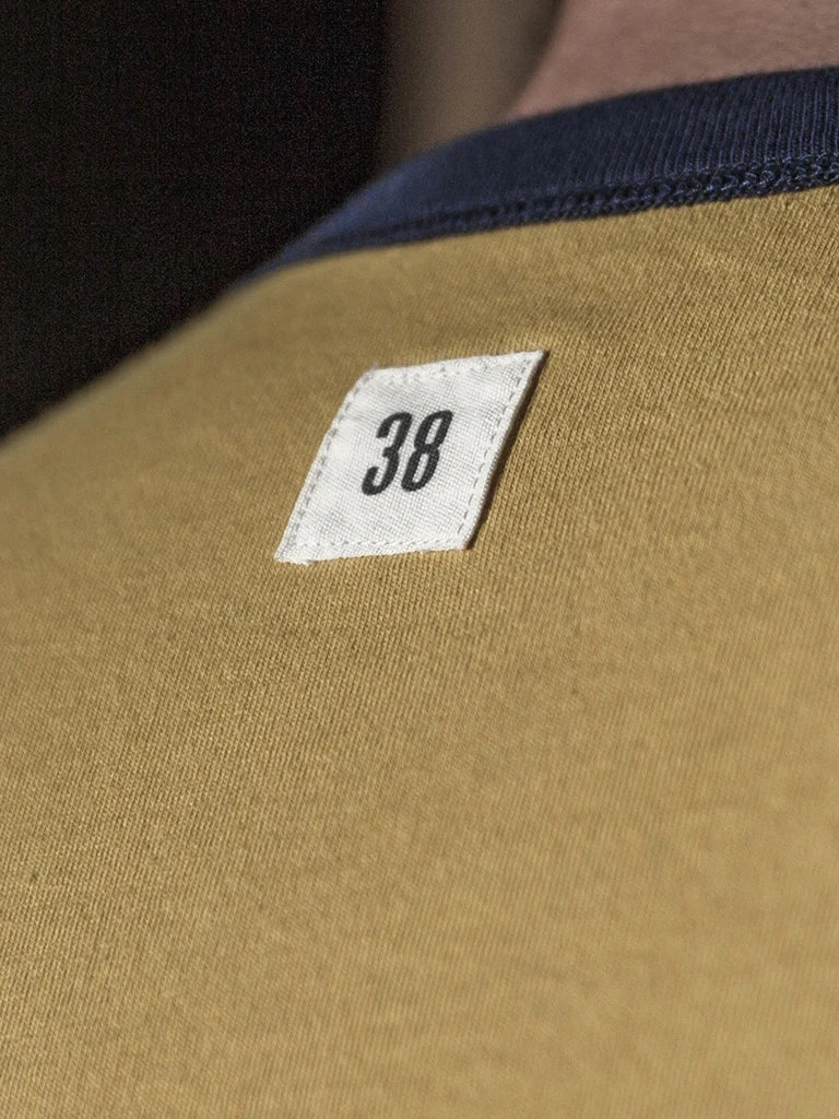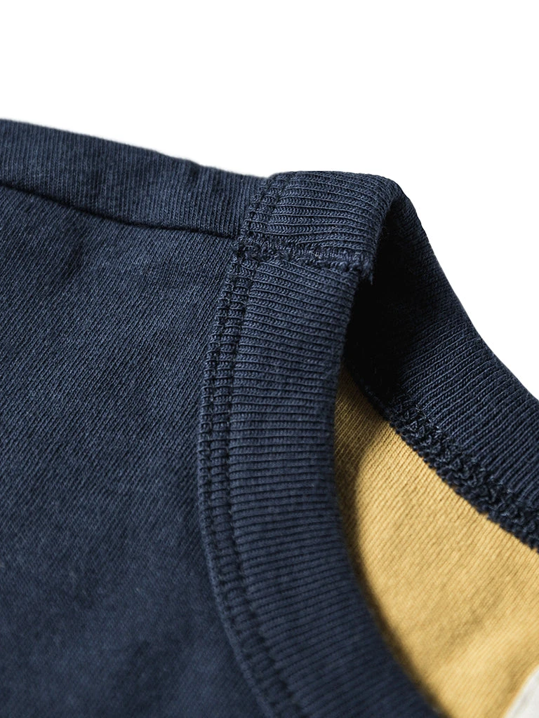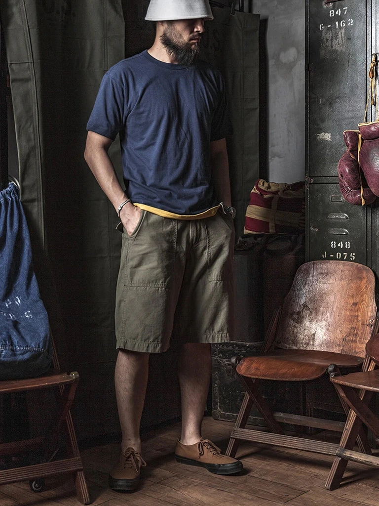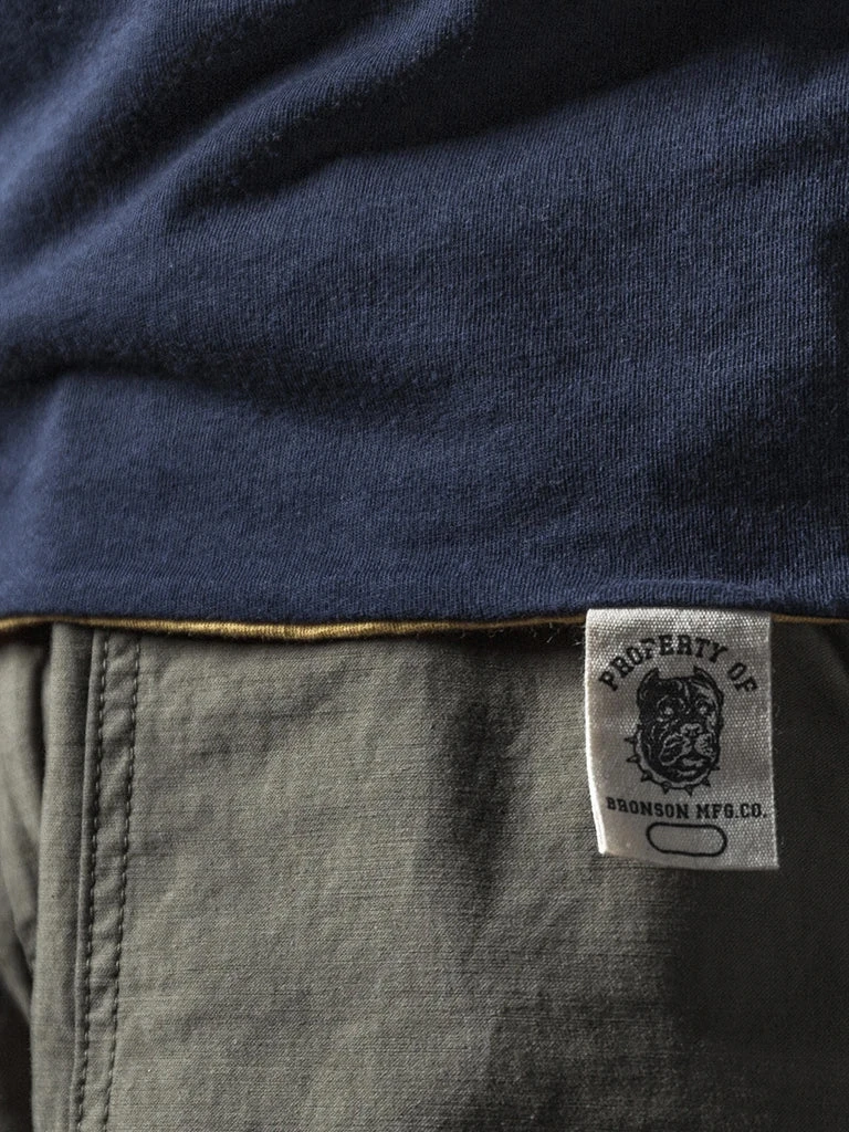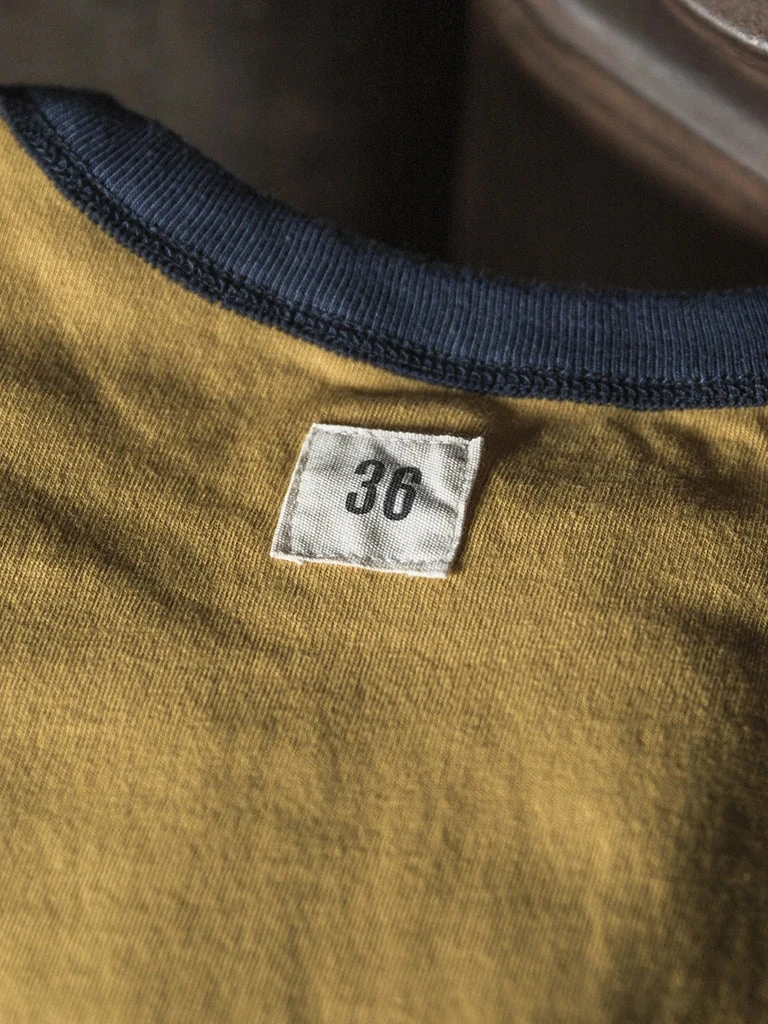 This t-shirt is a reproduction of an early WWII version of the UDT Reversible T-shirt, with a more well-fitted tailoring, rib-knit cuffs, and each side has a size cloth label. These are details that later versions don’t have.