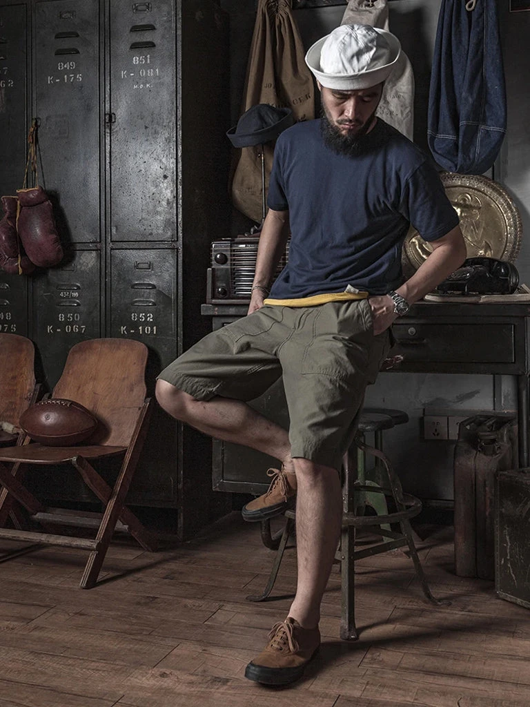UDT(Under Water Demolition Team) wears a Reversible T-Shirt during World War II for training. These divers had the job of clearing underwater obstacles for amphibious landings. It was hard training, and these men had to spend a lot of time in the water to get their special diving skills. The yellow side will be used when the standard is not met, while the blue side will be used normally to indicate the wearer’s qualifications and status. These Reversible T-shirts were also used in Vietnam and were worn by SEAL(the successor to the UDT) until the 1990s. Later versions were light blue with no threaded cuffs and long sleeves.