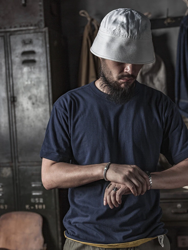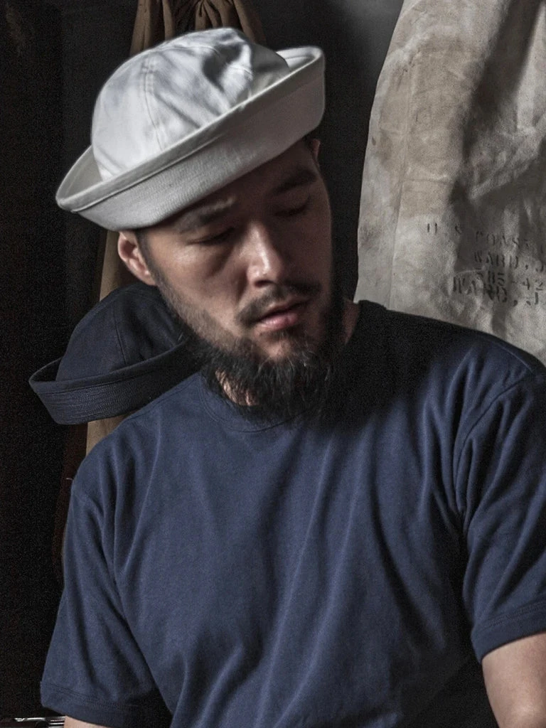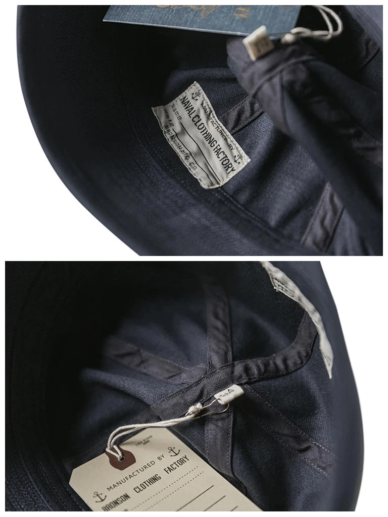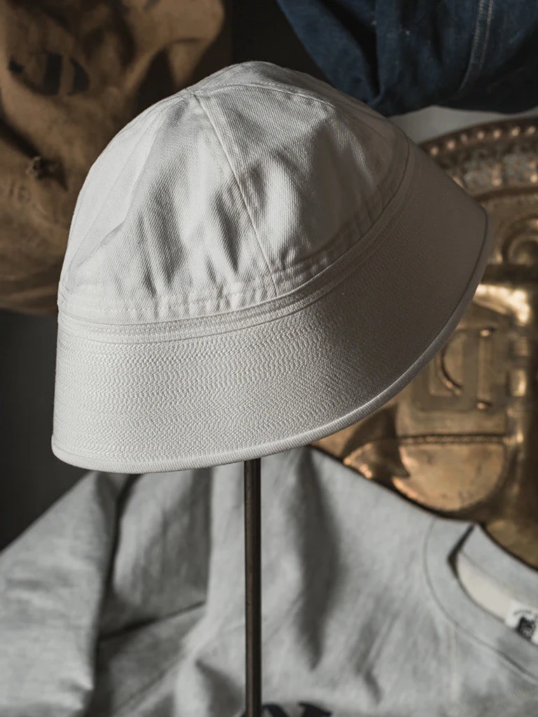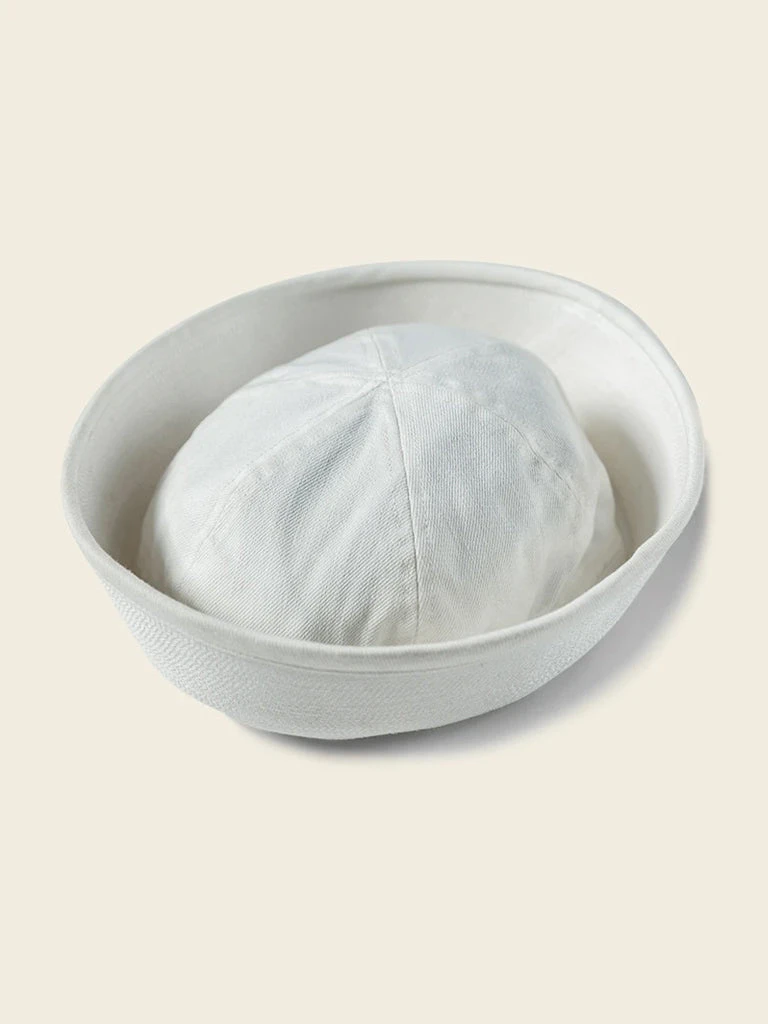 This World War II-era U.S. Navy white hat originated in the 1880s, when white canvas hats with a similar structure first appeared. Its original purpose was to protect the head from hot, intense sunlight. Normally, the brim is turned up, but it can be turned down to protect the ears if necessary. Over the years, the cap became as much of a tradition as the sailors’ spring and summer white cotton uniforms, autumn and winter blue wool uniforms, and everyday denim.