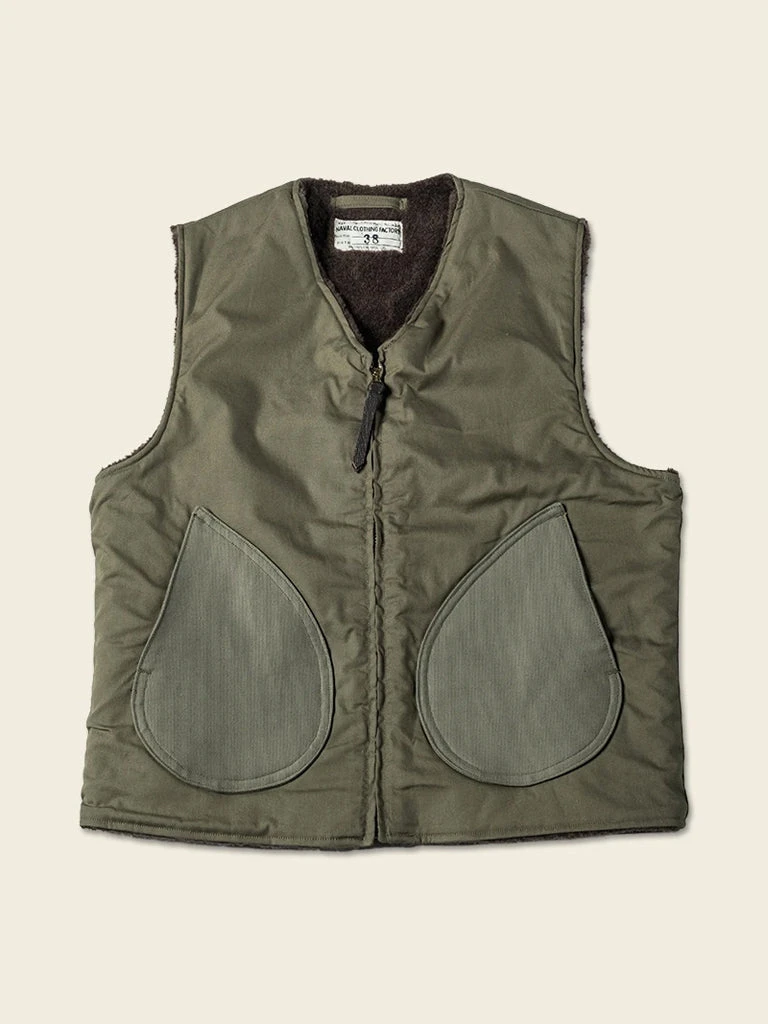 USN/US Marine vests issued between the 1940s – 1950s were generally given to mechanic or engine room personnel. This vest was made of poplin fabric, alpaca or wool is used inside, closed by a zipper, the overall structure is straightforward, warm performance is good.