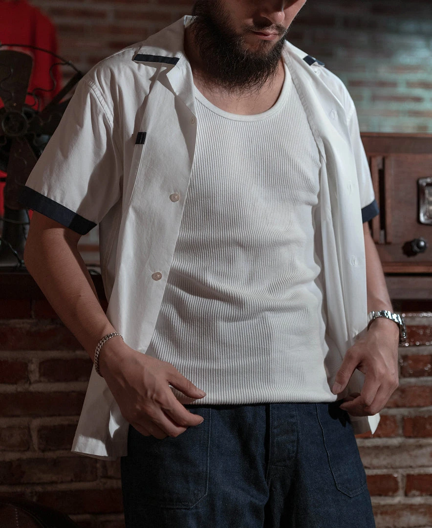 This tank top is made of heavyweight 10.5 oz cotton fabric. It has a good texture.