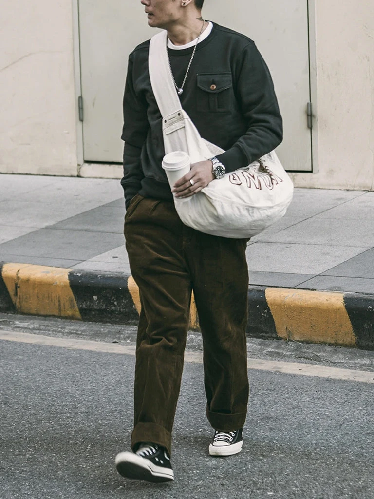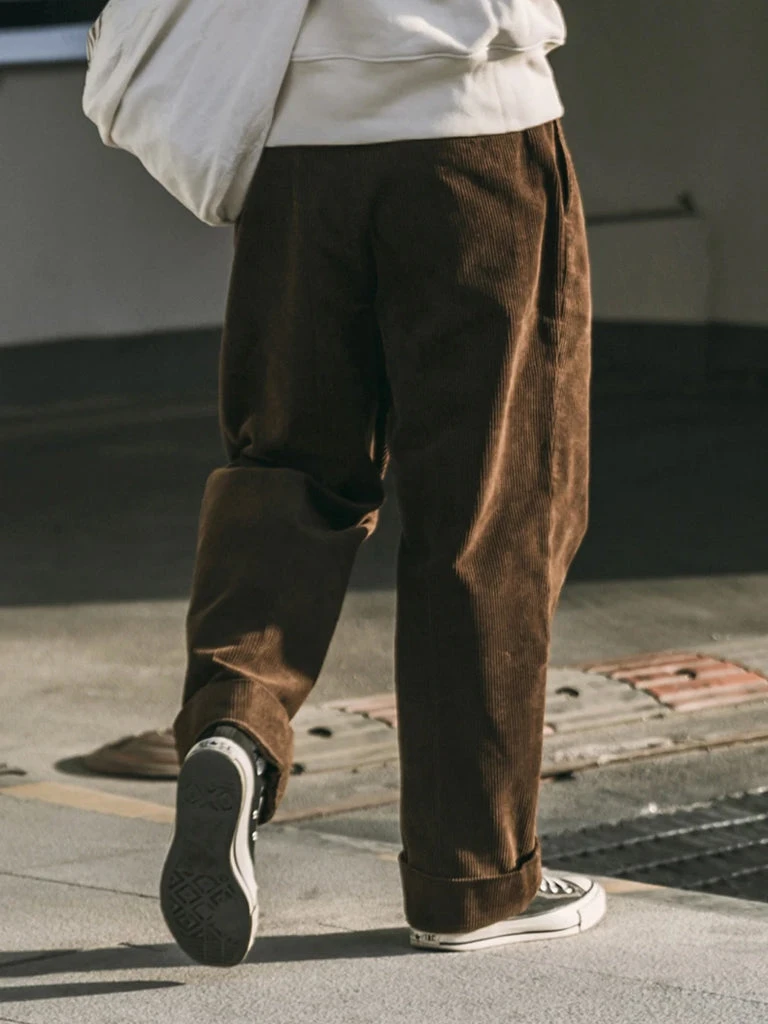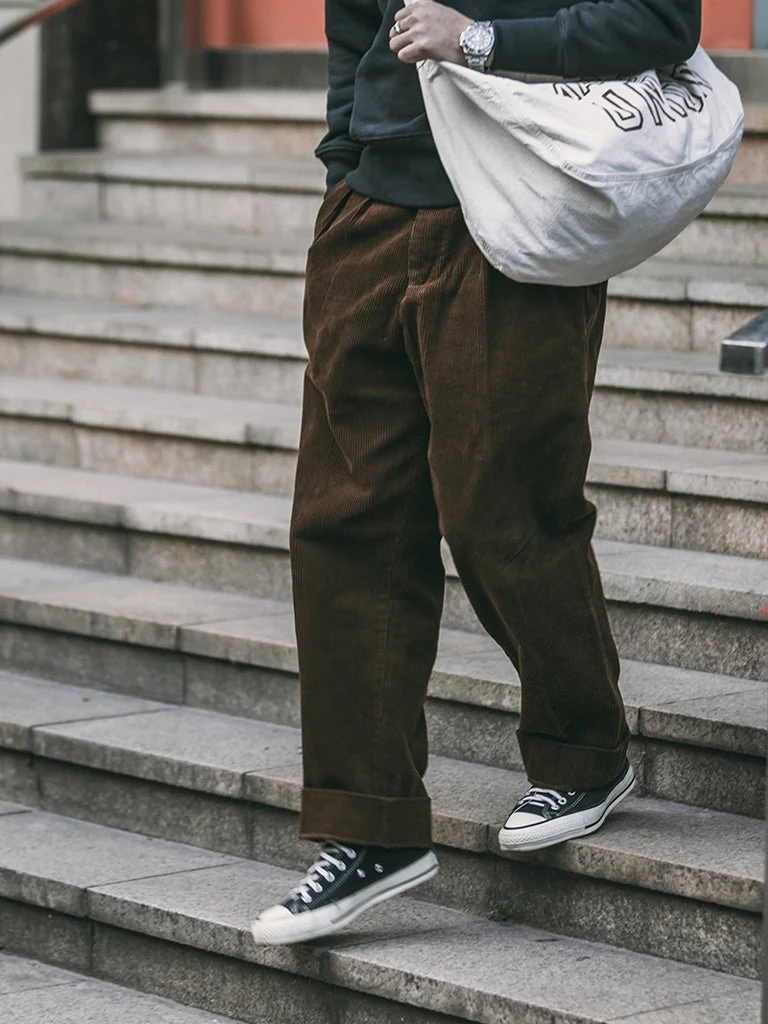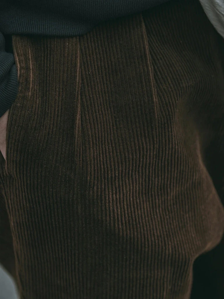 These corduroy pants are cut in the style of suit pants, Without any feeling of tightness, and it’s not too wide to look bloated.