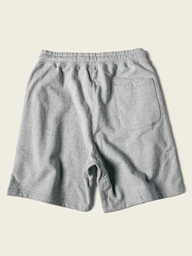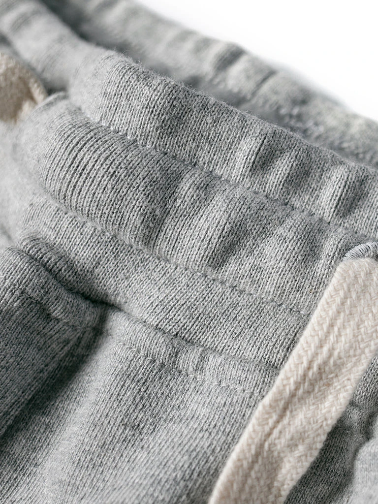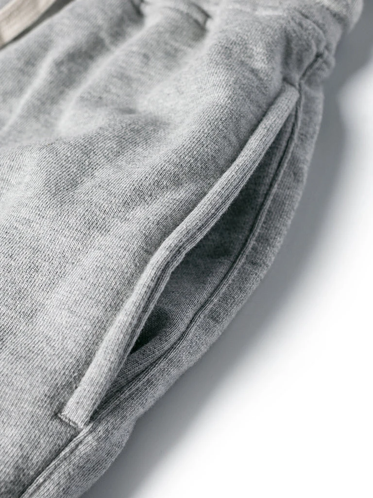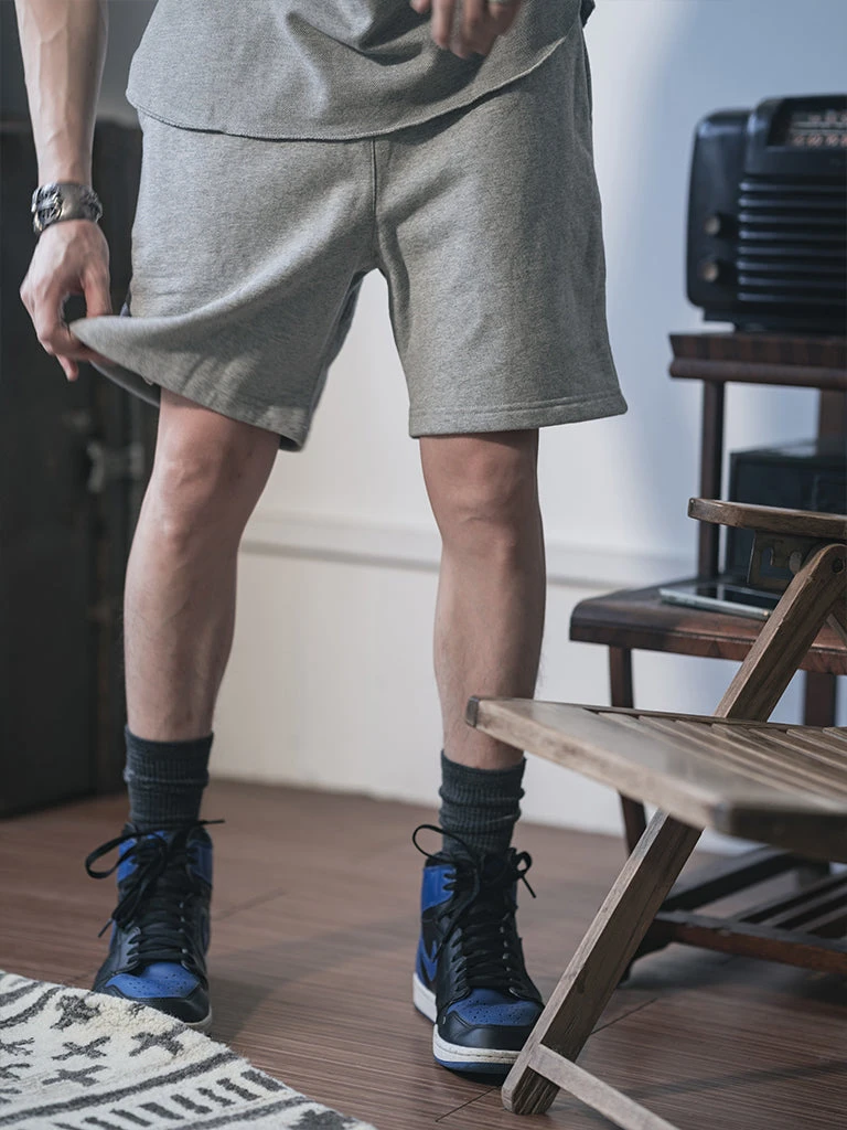 A pair of sweat shorts for spring and summer. The shorts are made from soft french terry fabric, super comfortable, and feature an elasticated drawstring waistband with an adjustable cotton drawstring to ensure you find the perfect fit, a ripstop triangular ribbed patch at the bottom of the shorts for extra durability, and two side pockets at the waist for safely storing items.