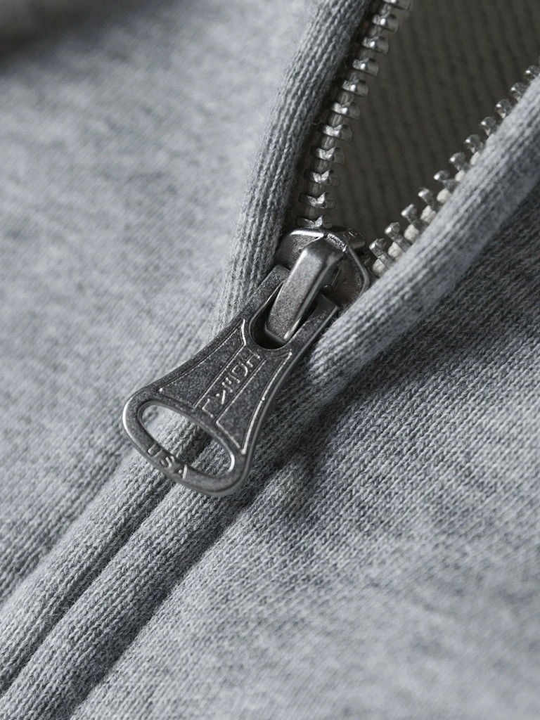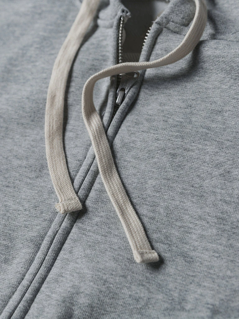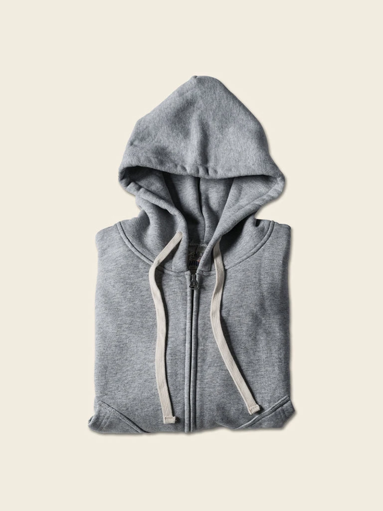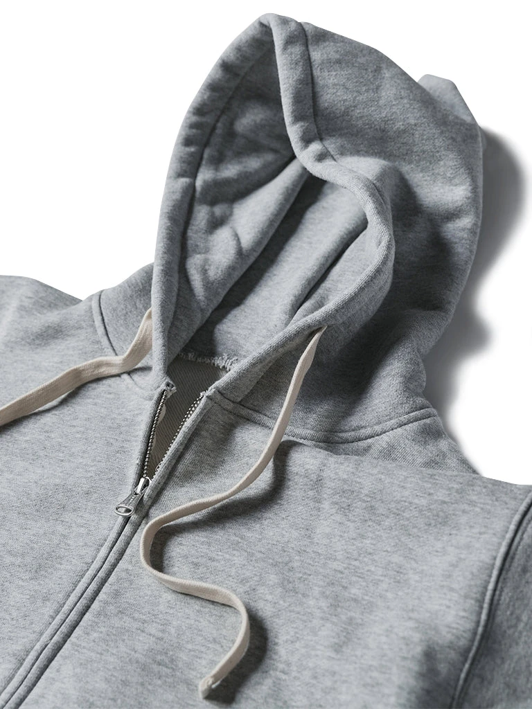 This zip-up hoodie is made of heavyweight 17.5 oz terry cloth, allowing the fabric to have a heavier and denser handle. It is soft, comfortable, and durable.