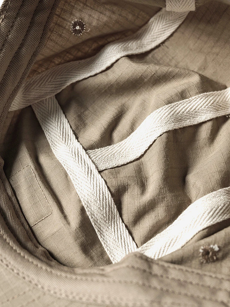 In the early 20th century, the hats were often worn by couriers or cyclists and gradually became popular. This hat is made of 7.5 oz ripstop cotton fabric and is available in khaki and navy, and it is easy to match.
