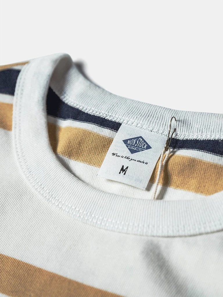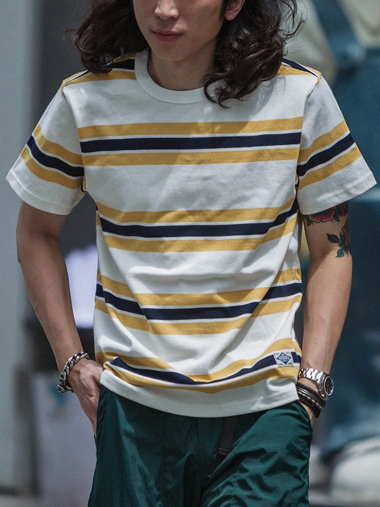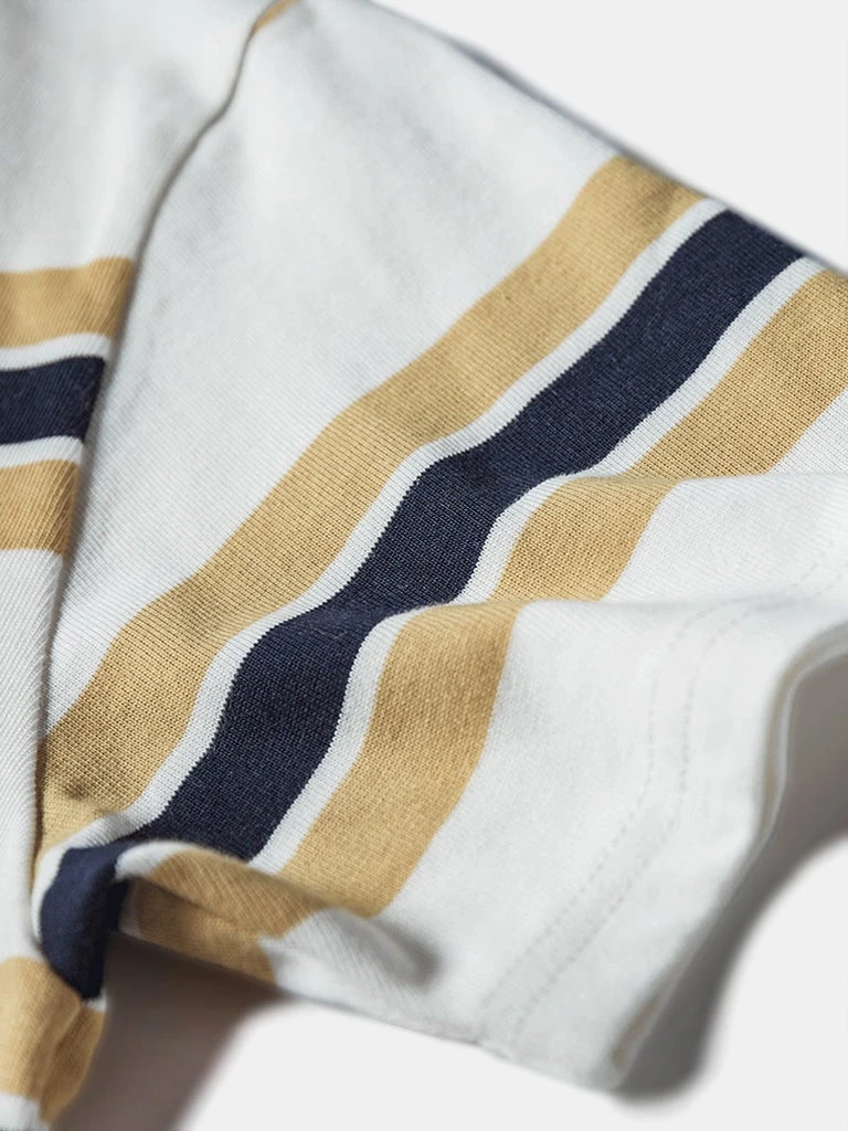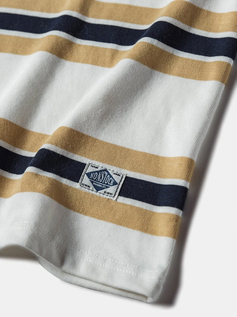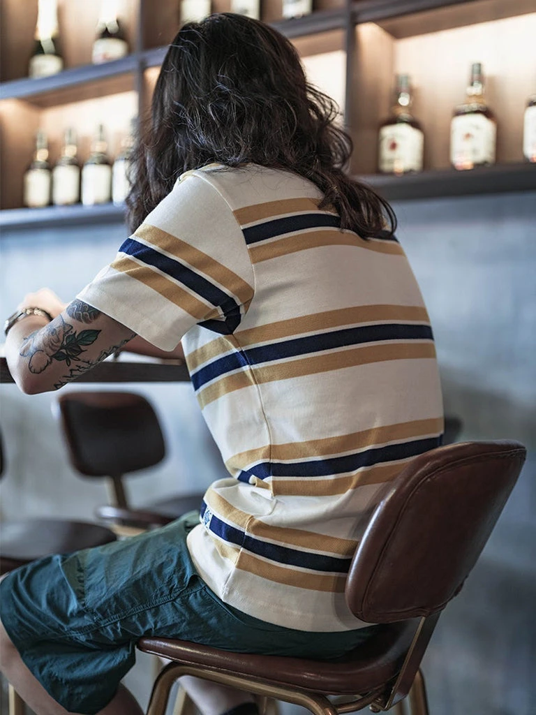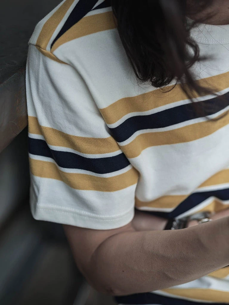 This is an IVY style stripe T-Shirt, made of 9.8 oz cotton, and uses the University of Michigan classic Maize and Blue color scheme, the fabric texture is good, soft and comfortable.