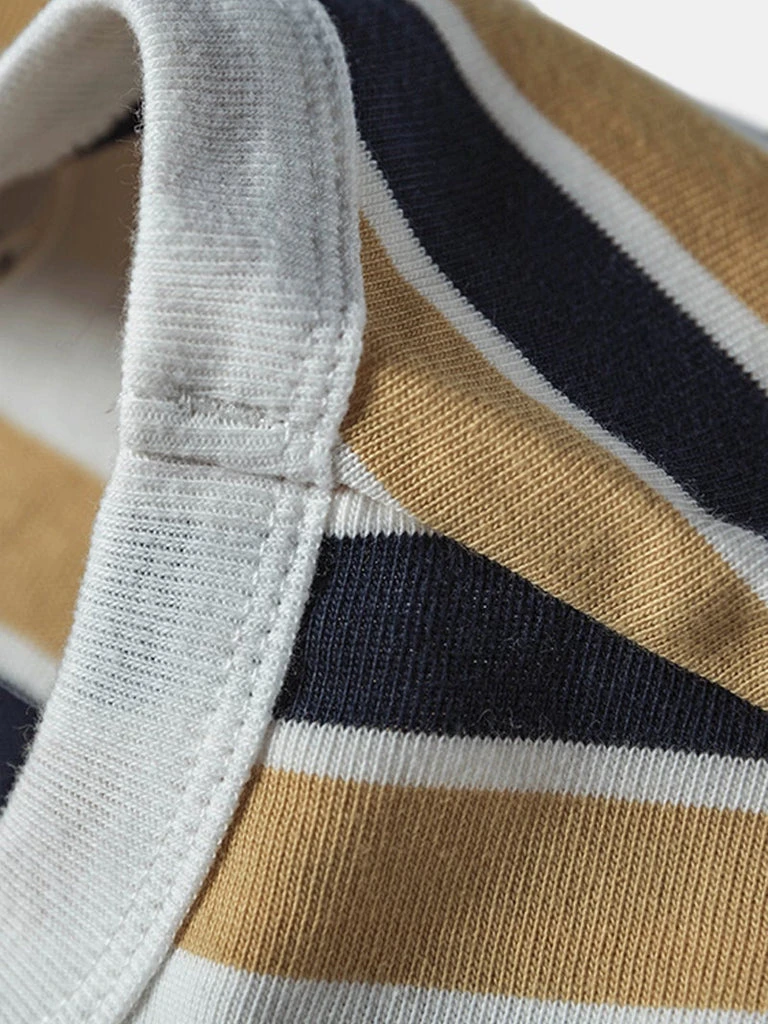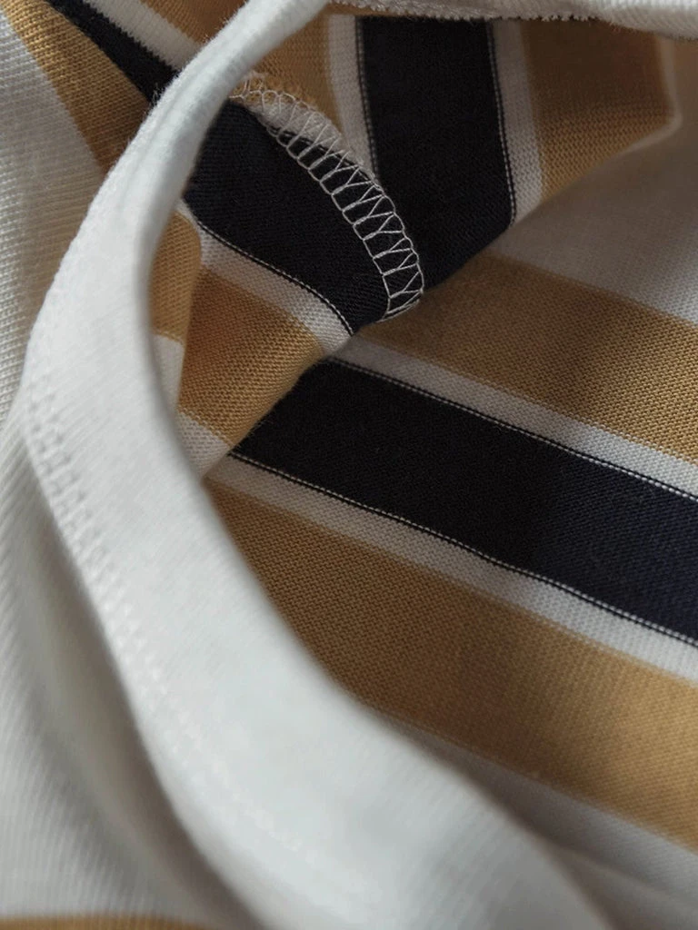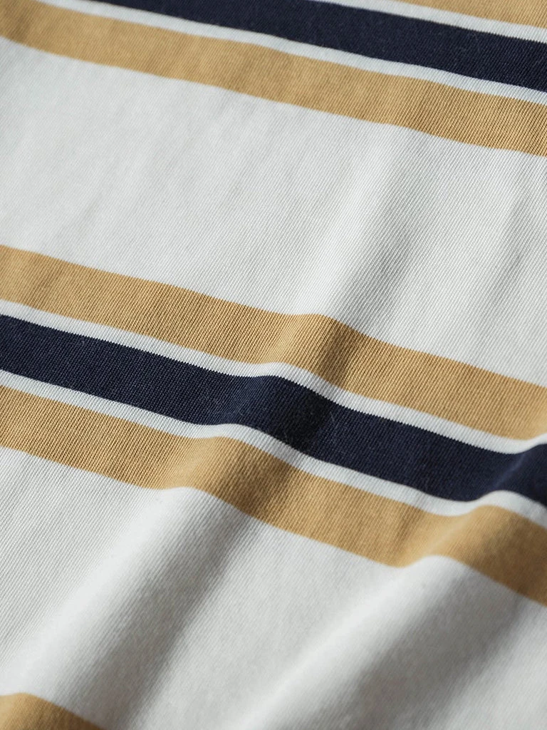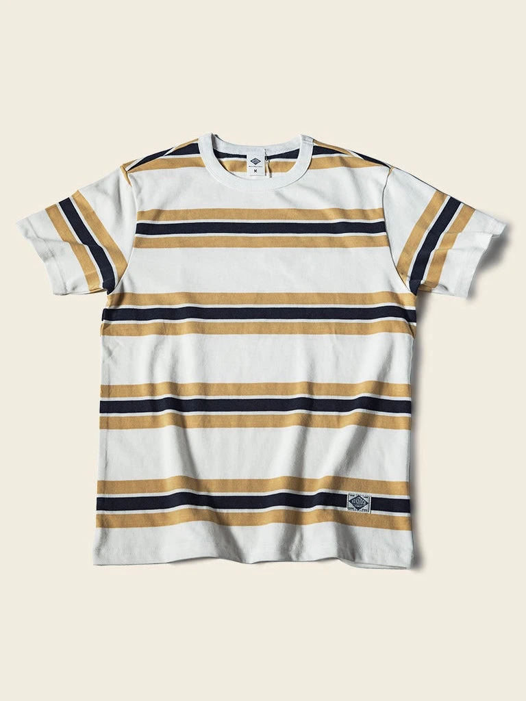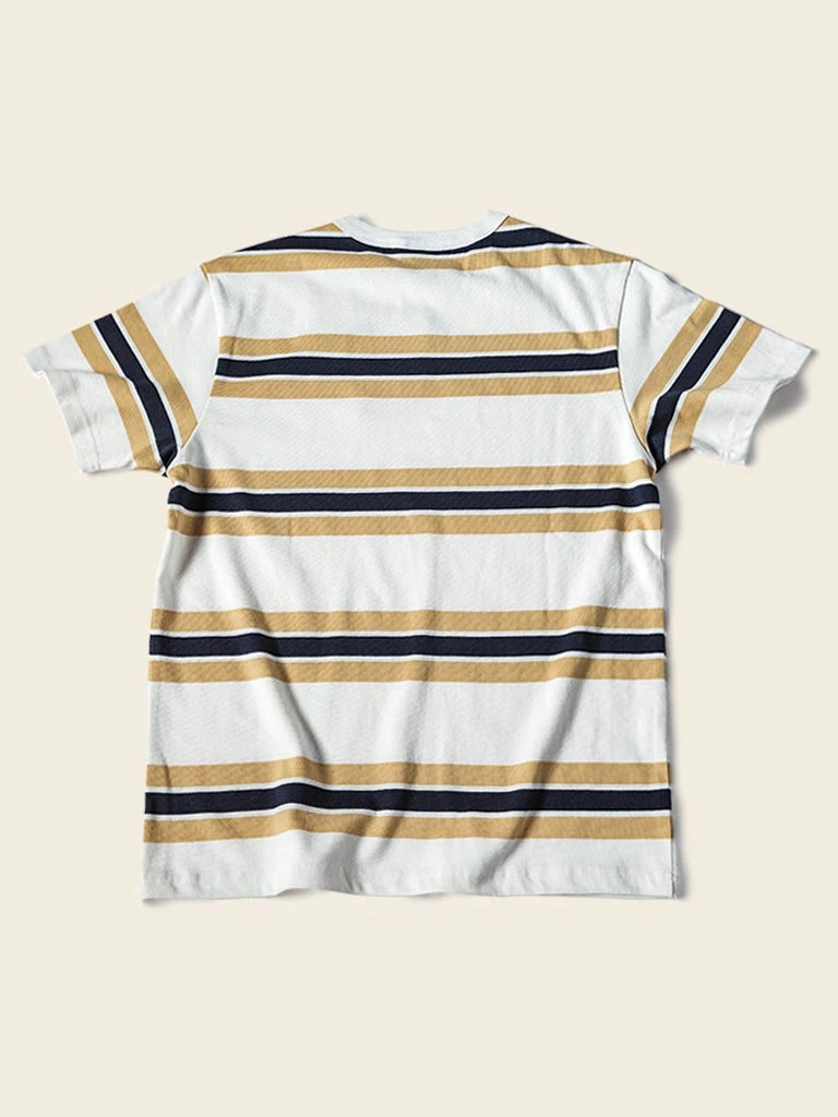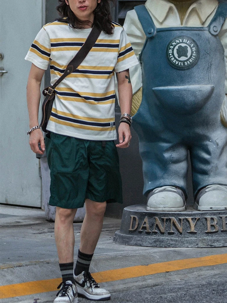 This is an IVY style stripe T-Shirt, made of 9.8 oz cotton, and uses the University of Michigan classic Maize and Blue color scheme, the fabric texture is good, soft and comfortable.