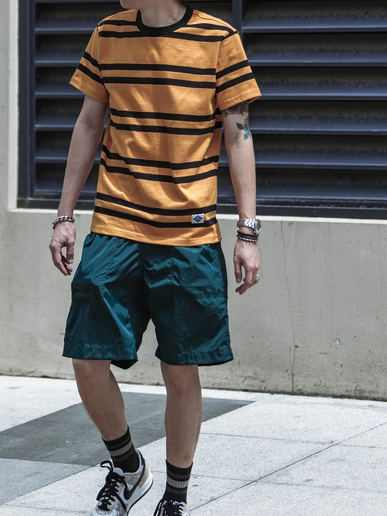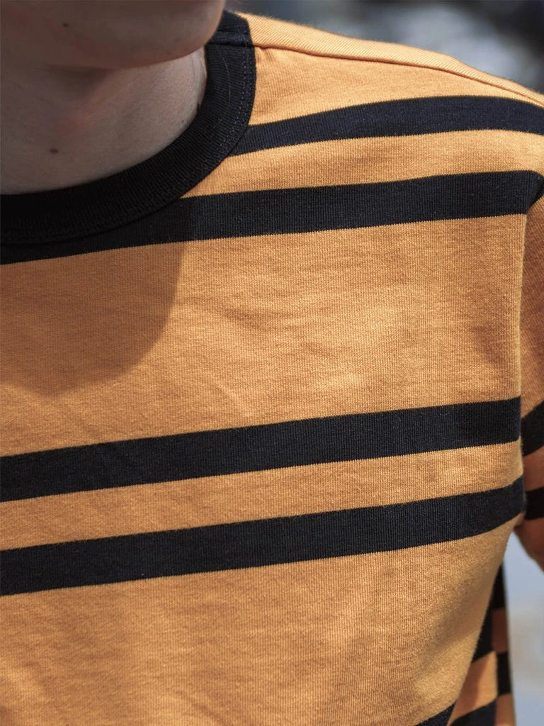 This is an IVY style stripe T-Shirt, made of 9.8 oz cotton, and uses the Princenton Tigers Yellow and Black color scheme, the fabric texture is good, soft and comfortable.