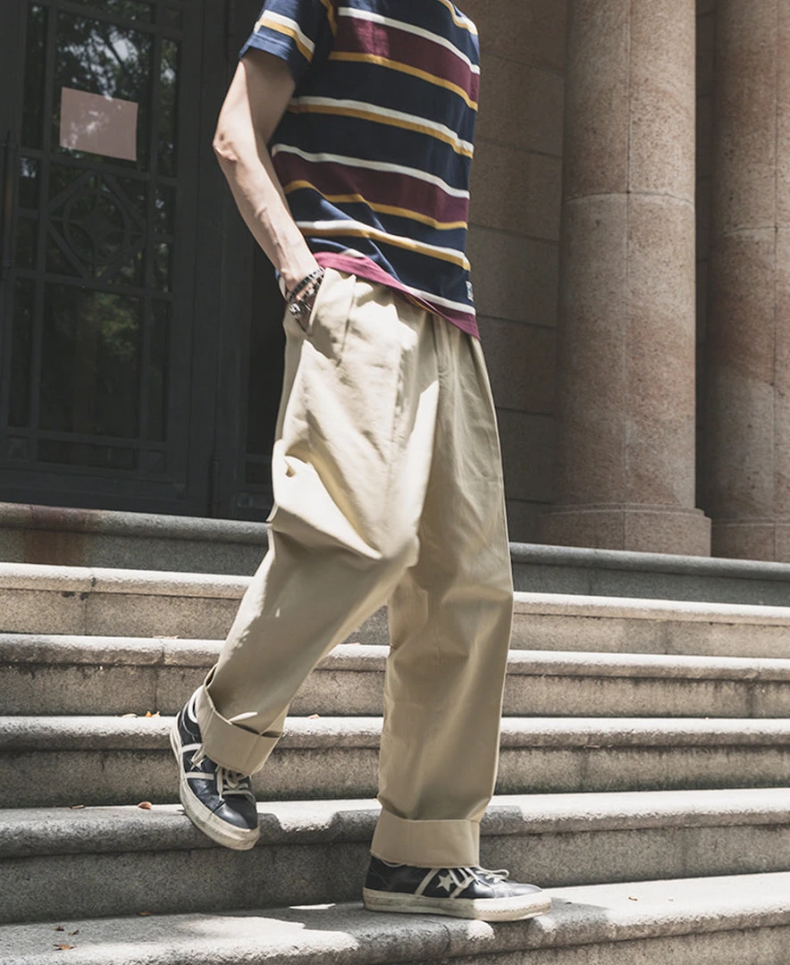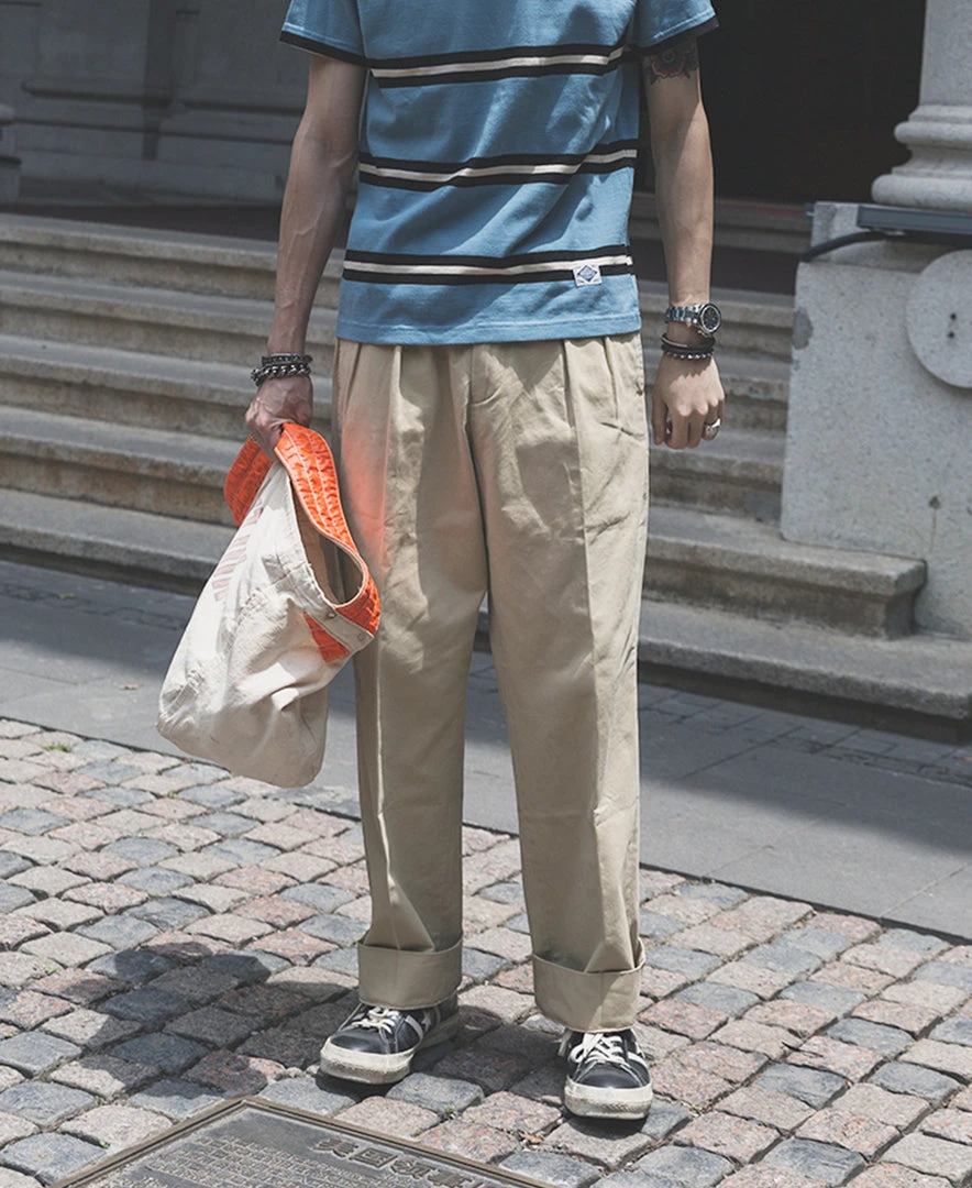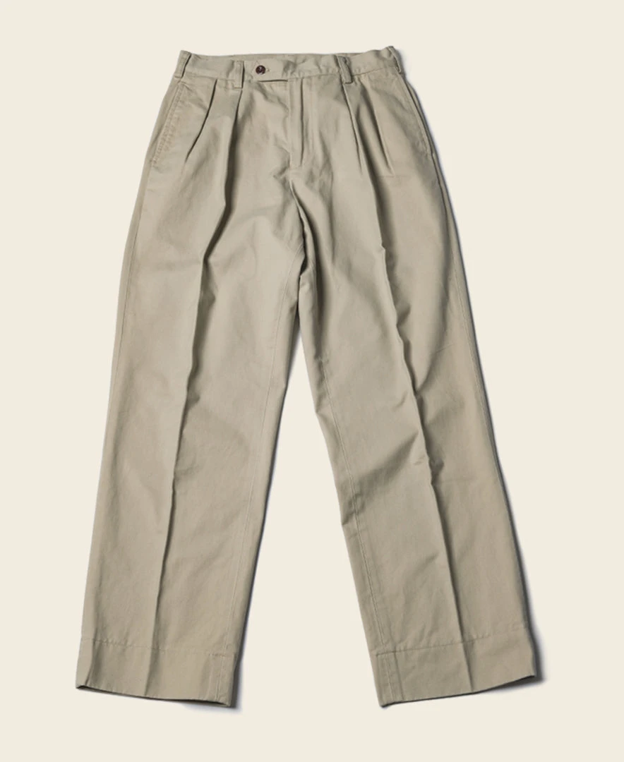 Non Stock BEST SELLERS 1930s IVY Style Double Pleated Chino Trousers – Khaki