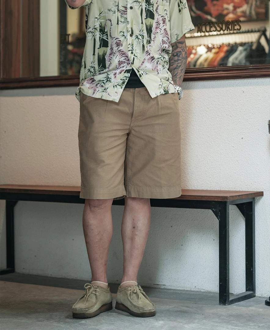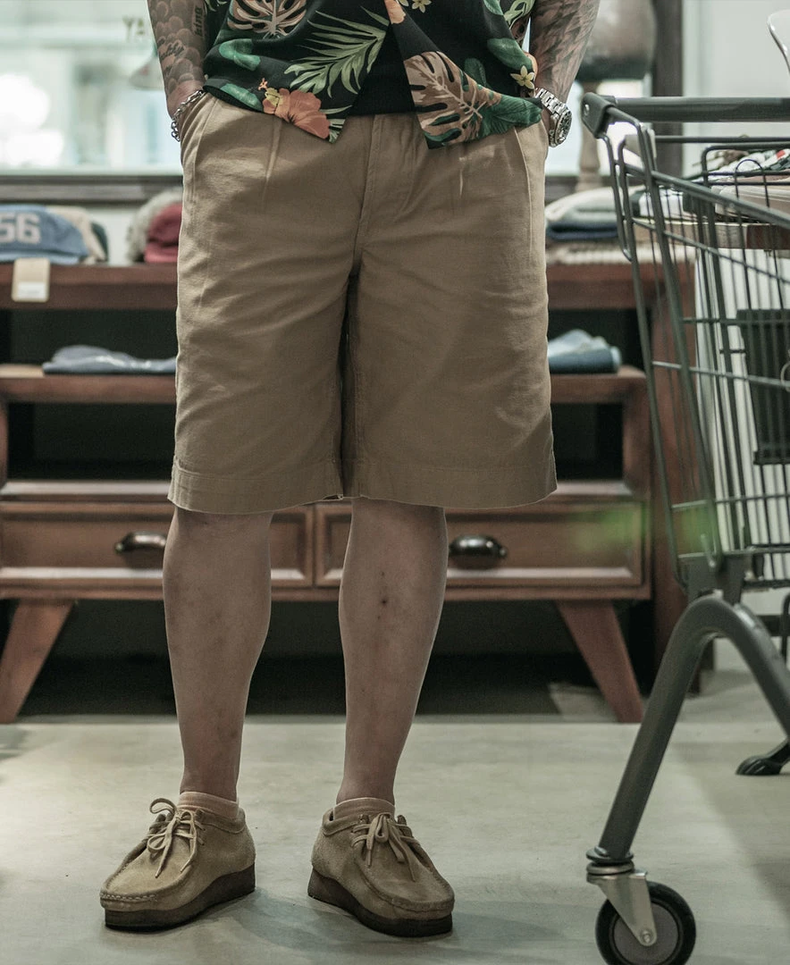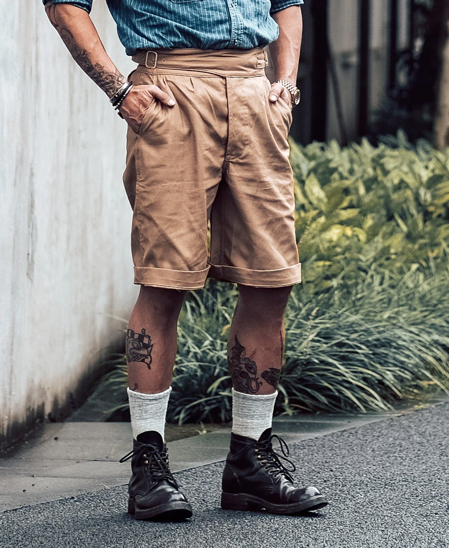 The Gurkha trouser was borne out of this alliance as well – rooted in British military tradition but explicitly modified for use by the Nepalese. The pant is defined by its double-pleated front and high, cummerbund-style waistband with buckle fastenings.