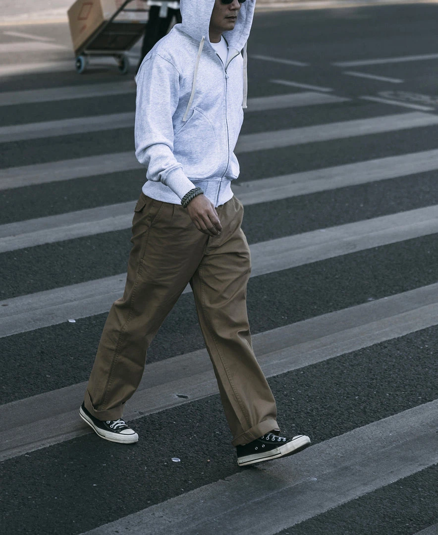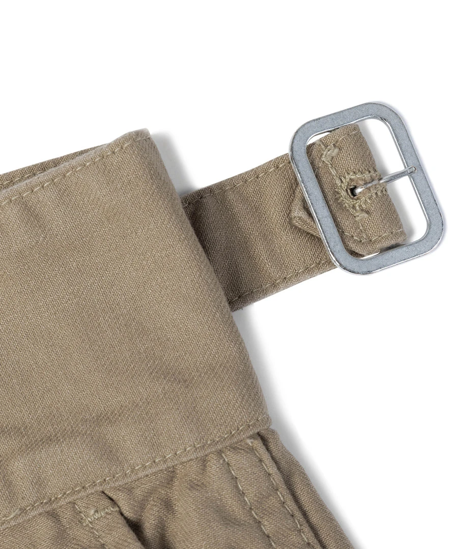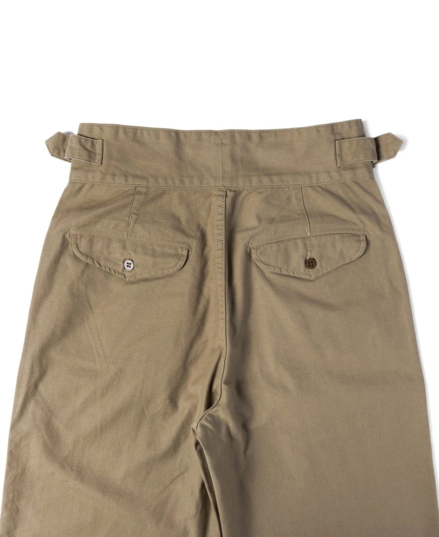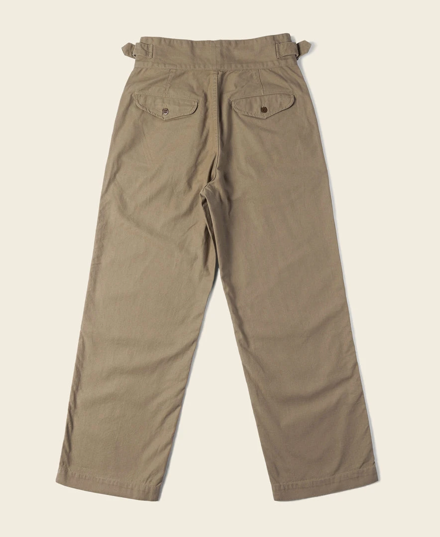 The Gurkha trouser was borne out of this alliance as well – rooted in British military tradition but explicitly modified for use by the Nepalese. The pant is defined by its double-pleated front and high, cummerbund-style waistband with buckle fastenings.
