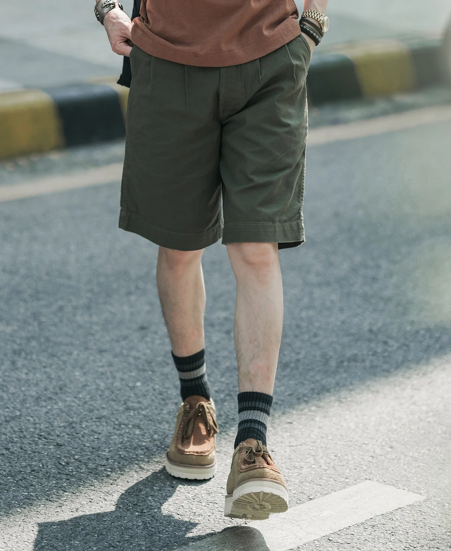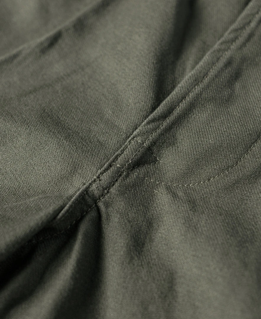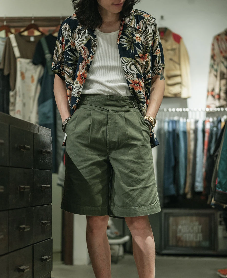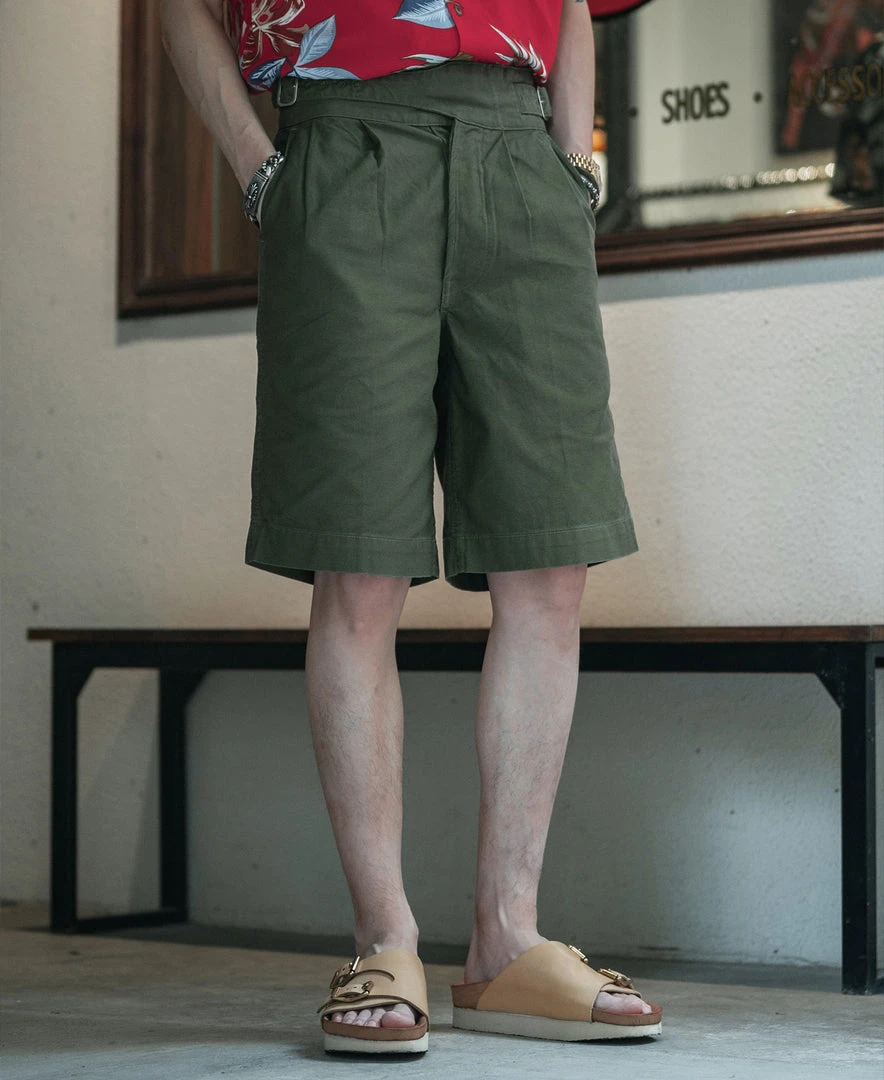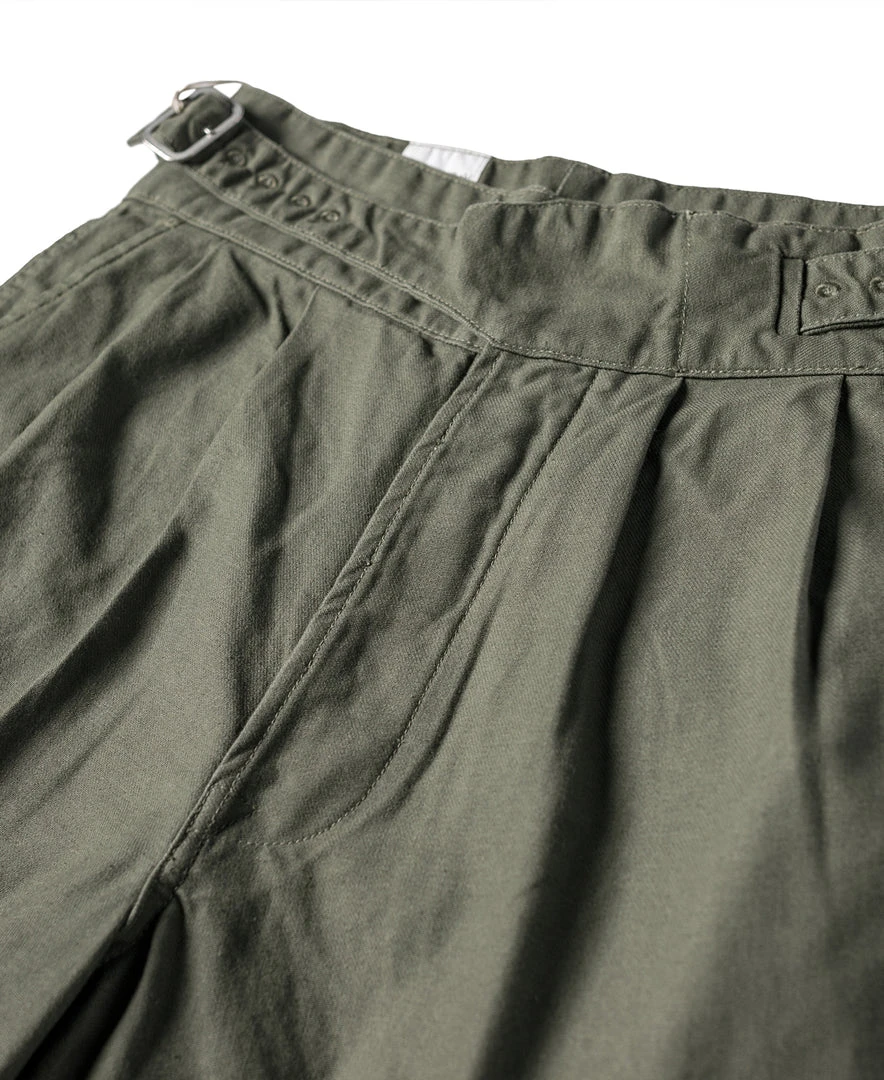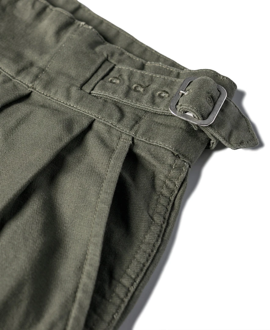 The Gurkha trouser was borne out of this alliance as well – rooted in British military tradition but explicitly modified for use by the Nepalese. The pant is defined by its double-pleated front and high, cummerbund-style waistband with buckle fastenings.