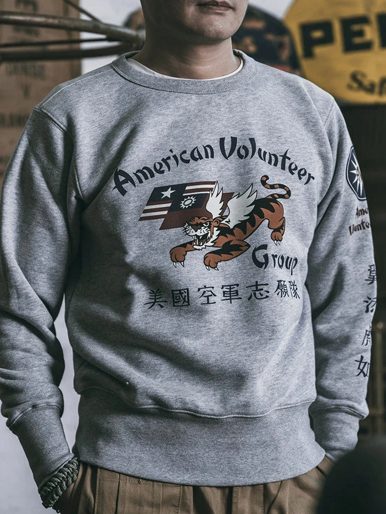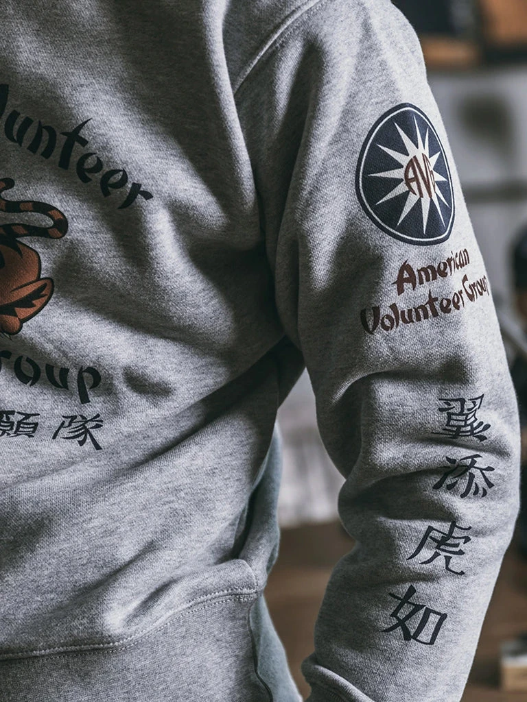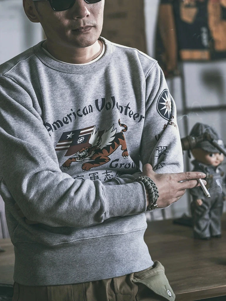 This sweatshirt is made of 17.5 oz terry cloth with a “Flying Tigers” pattern printed on the chest. It’s soft, has no static electricity, can be worn close to the skin, and has good elasticity. The sewing technology adopts the classical sewing process: overlocking and then interlocking. Compared with an ordinary single overlock, it’s stronger and more beautiful.