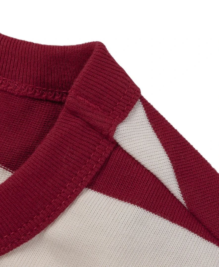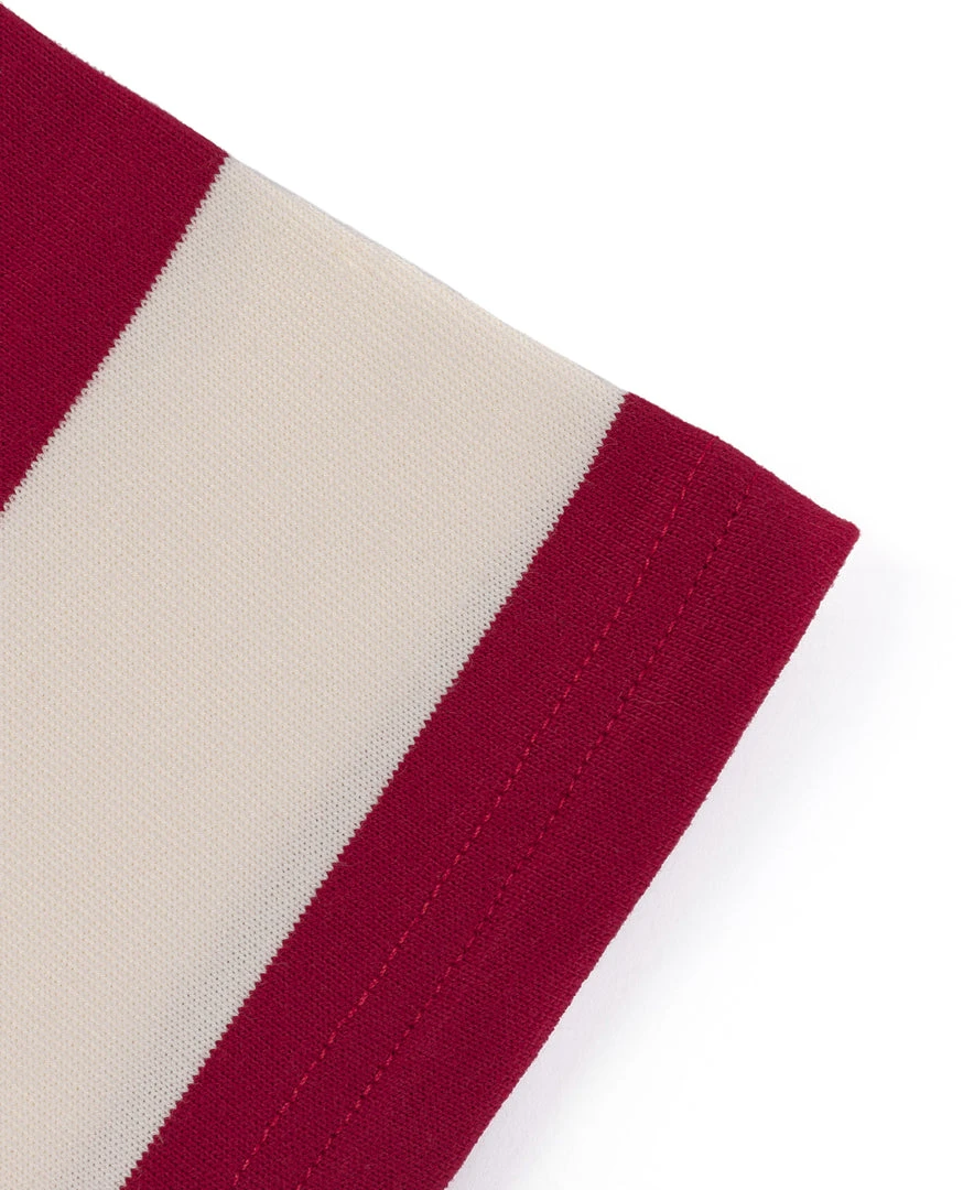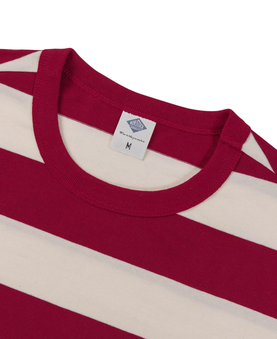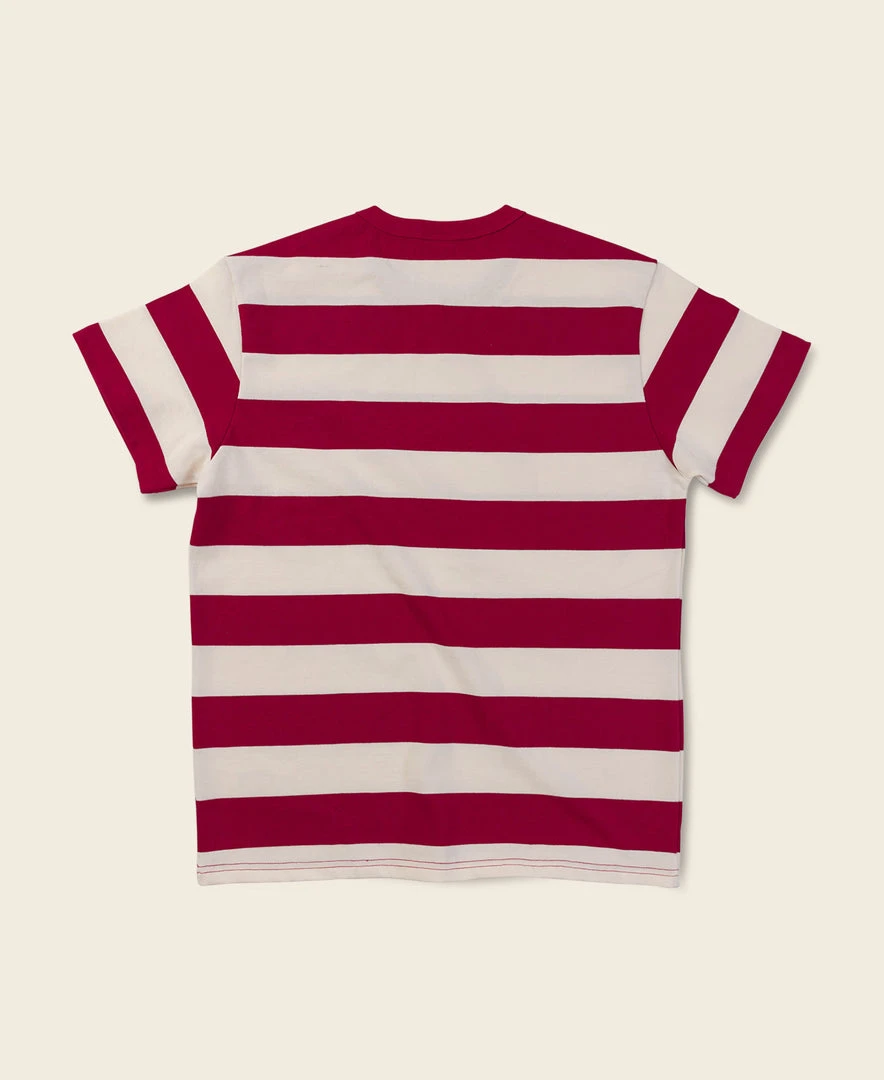 A 1950s inspired stripe tee made popular by motorcyclists in mid-century America. This Stripe Tee is made of heavyweight 9 oz cotton fabric.