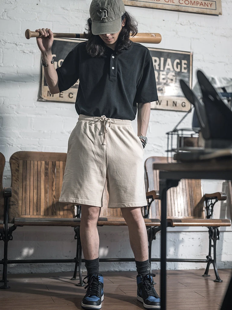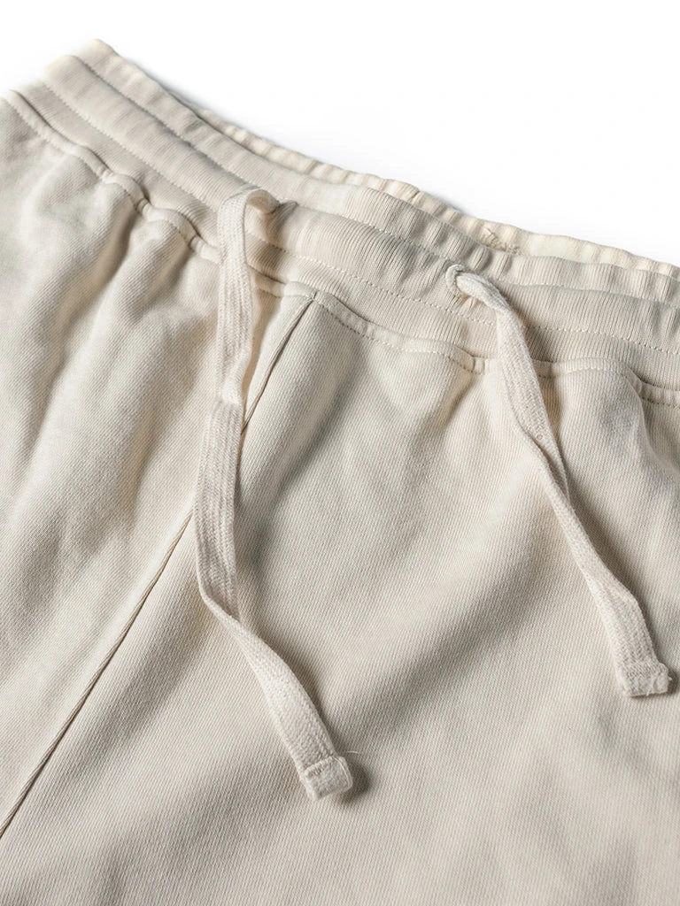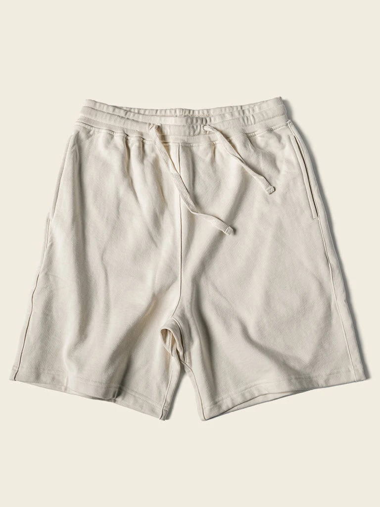 A pair of sweat shorts for spring and summer. The shorts are made from soft french terry fabric, super comfortable, and feature an elasticated drawstring waistband with an adjustable cotton drawstring to ensure you find the perfect fit, a ripstop triangular ribbed patch at the bottom of the shorts for extra durability, and two side pockets at the waist for safely storing items.