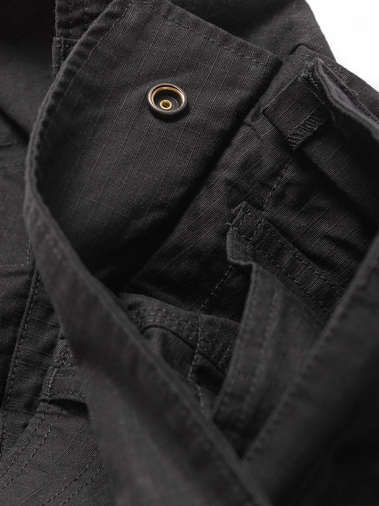 Inspired by the U.S. Army M42 Fatigue Trousers, cut from durable cotton ripstop. We have added new details, enlarged two side patch pockets, and Compartments are added to the pockets to facilitate sorting and storage. There are drawstrings at the waist and leg openings, which can be tightened if necessary. A circular arc patch was added to the hips for enhanced durability.