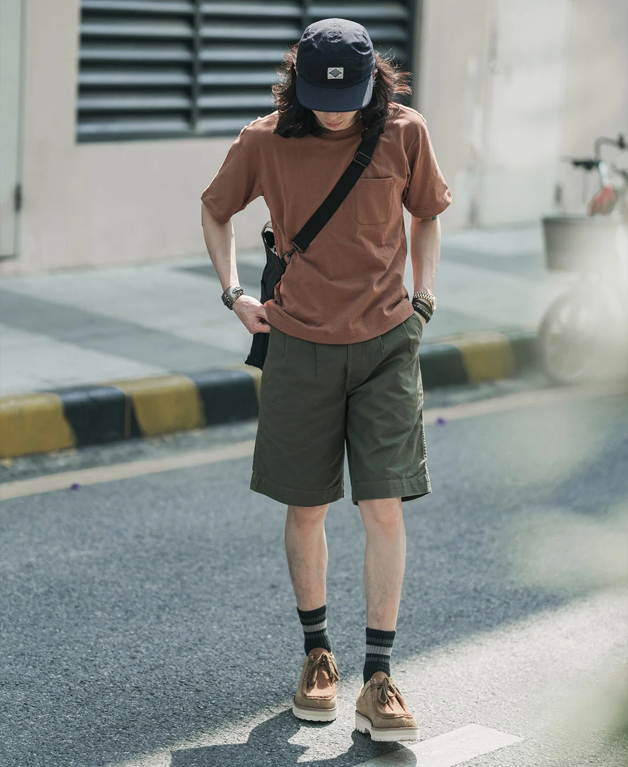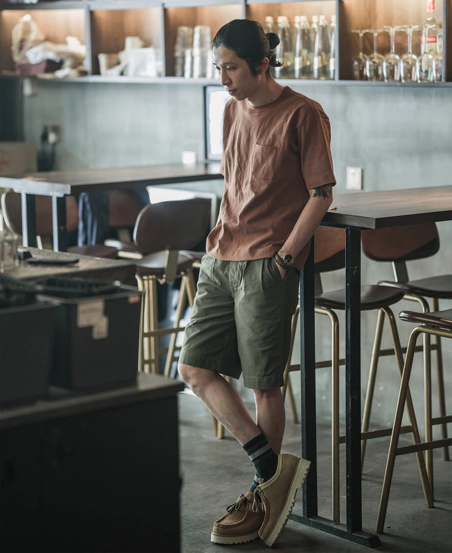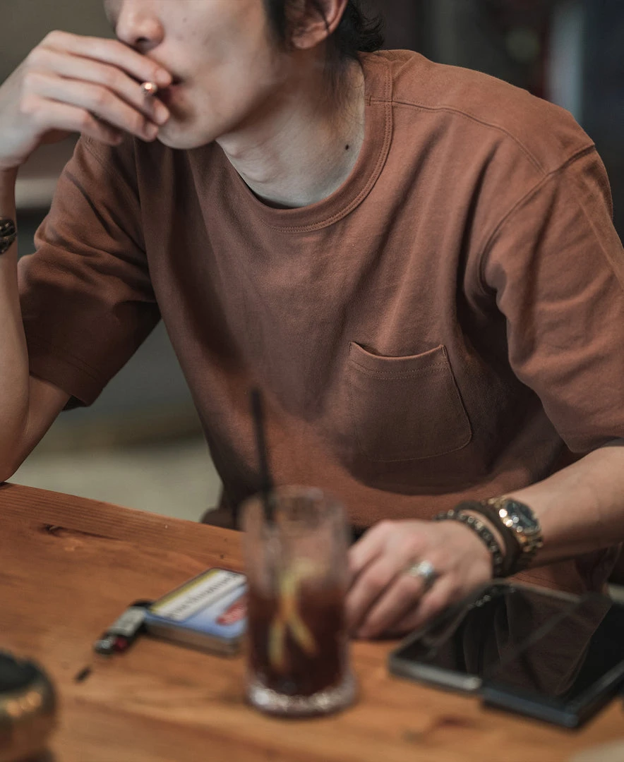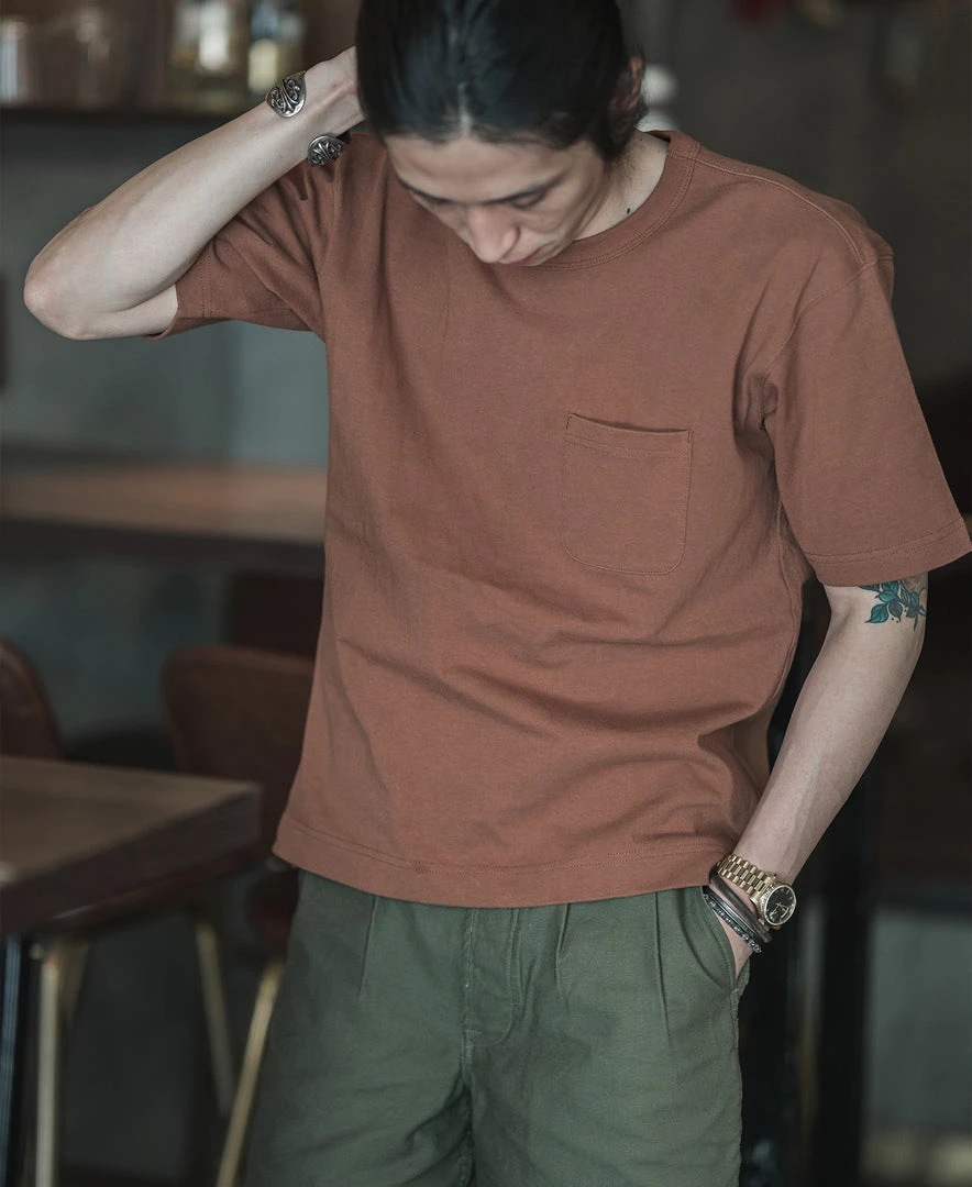With a vintage-inspired loose fit, dropped shoulders, a U-shaped chest pocket and a split hem, this is the kind of T-shirt that’ll never go out of style. Made of roving cotton fabric, the fabric has a strong texture and a rough touch, just like blending flax into the fabric.
