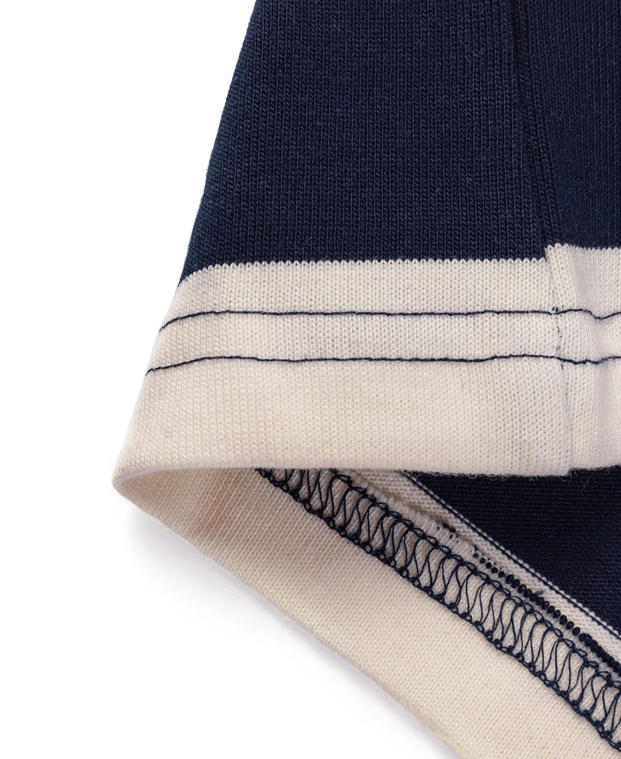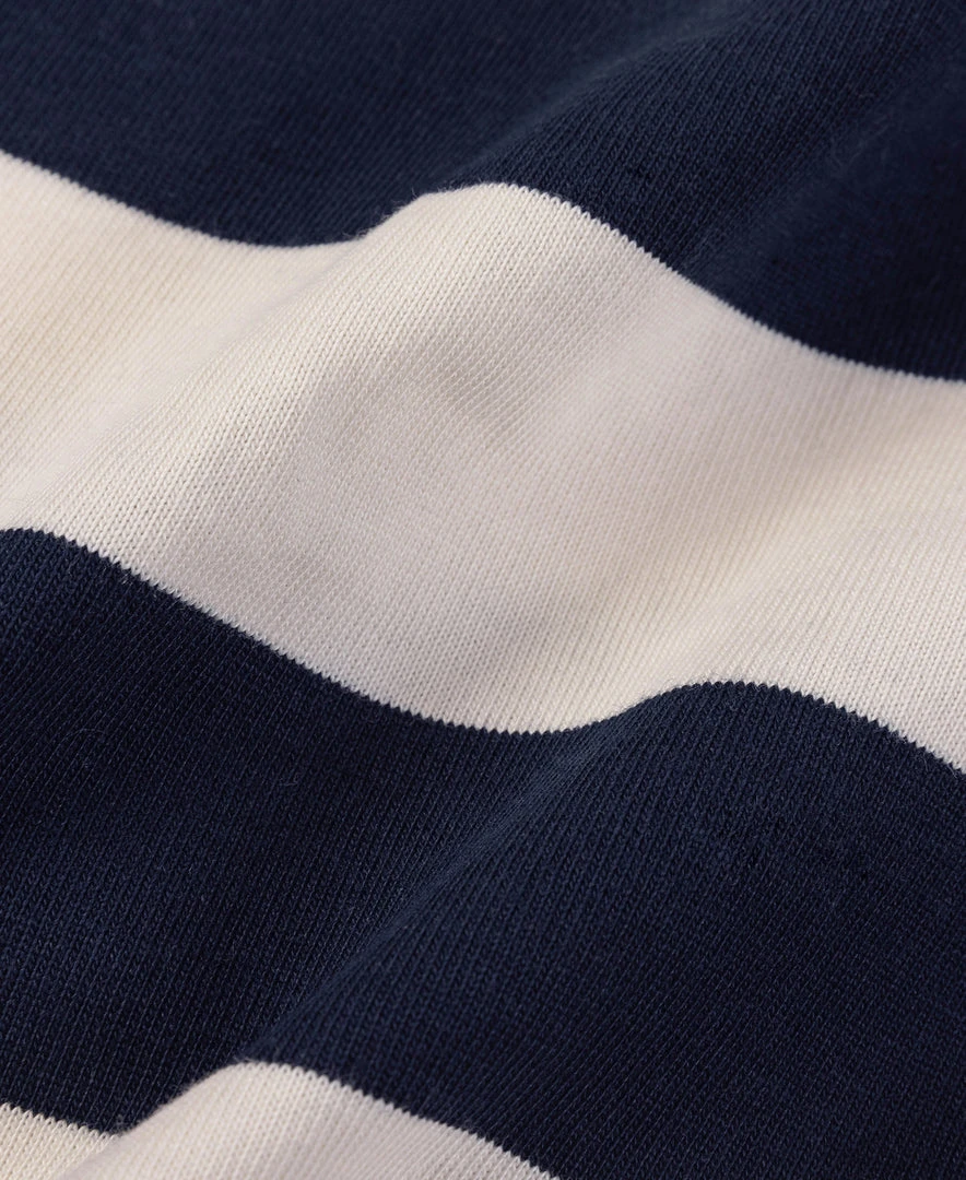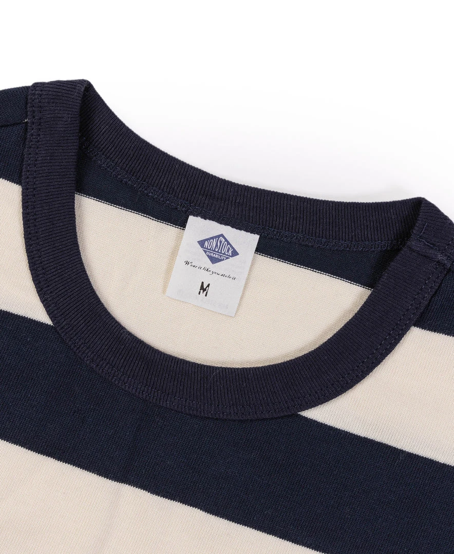 A 1950s inspired stripe tee made popular by motorcyclists in mid-century America. This Stripe Tee is made of heavyweight 9 oz cotton fabric.