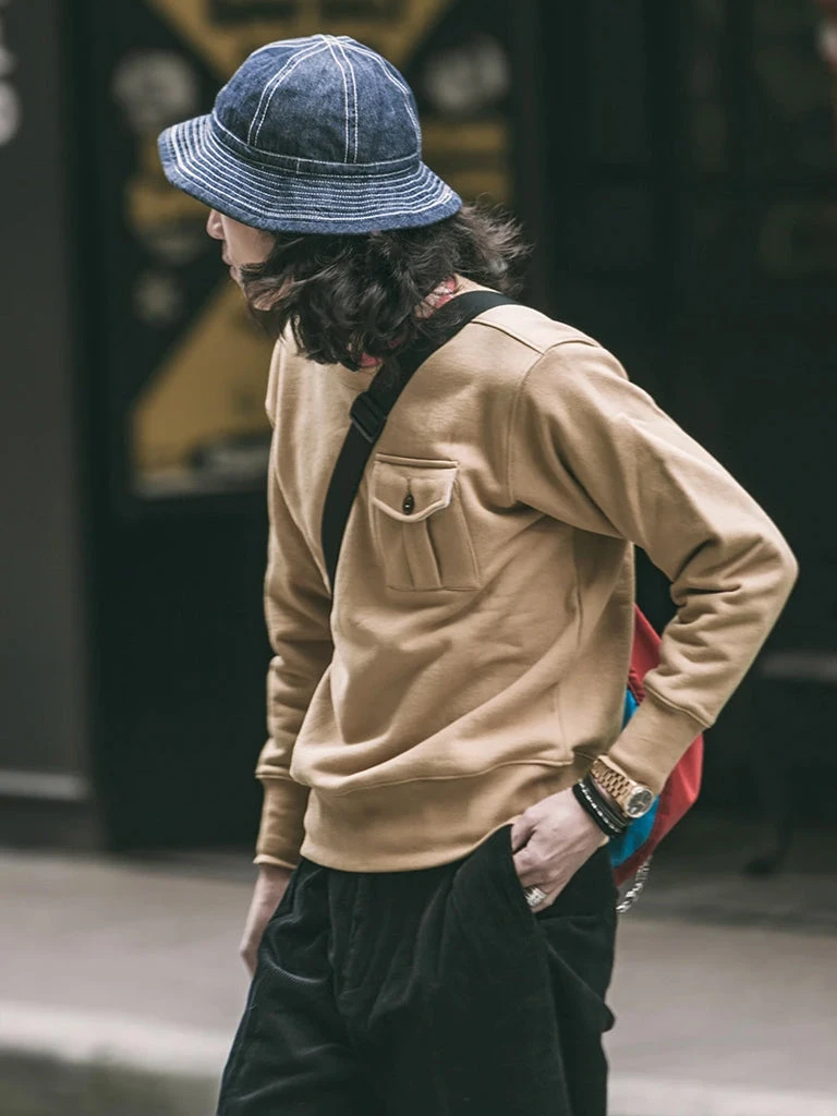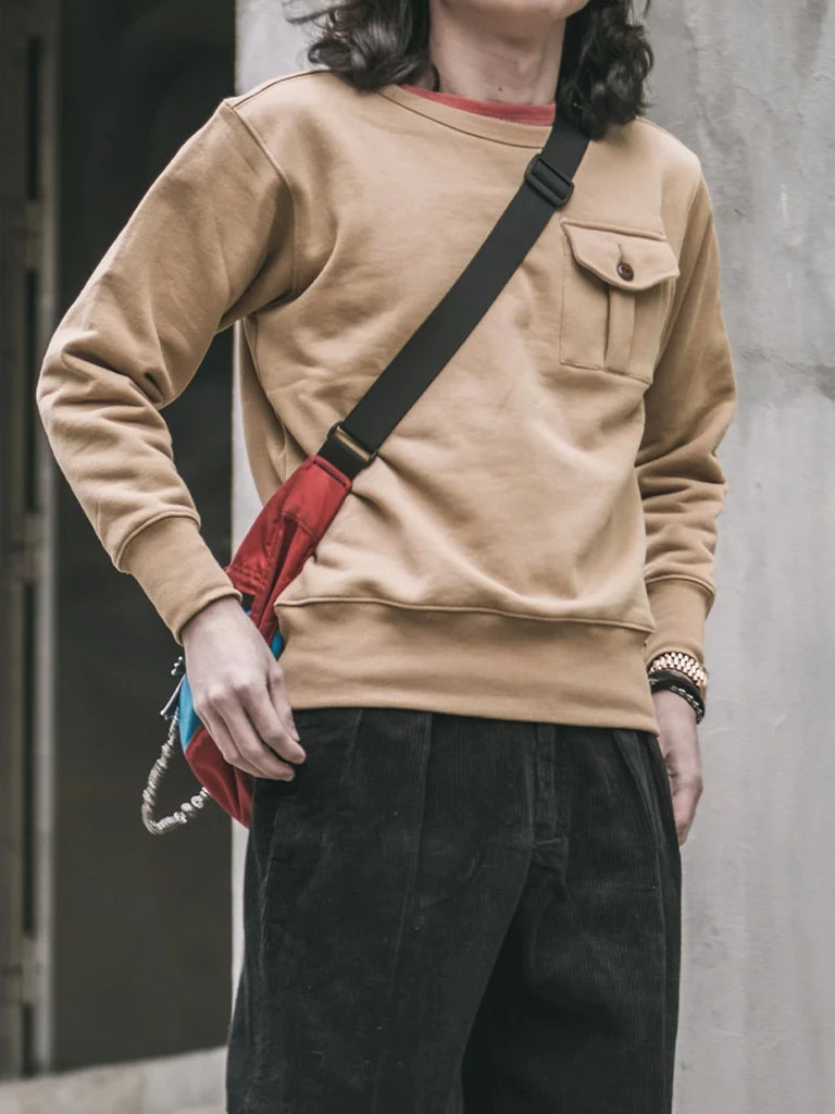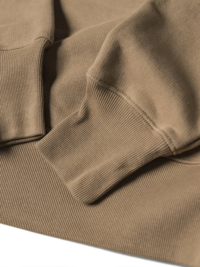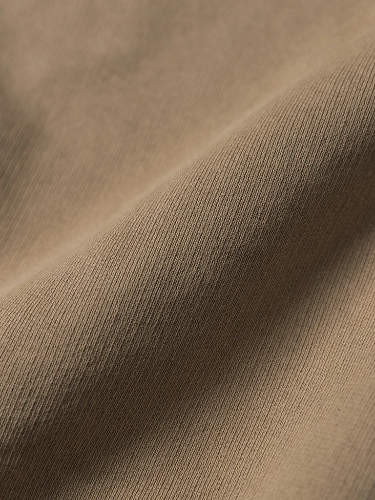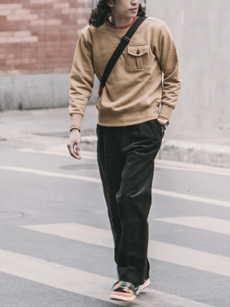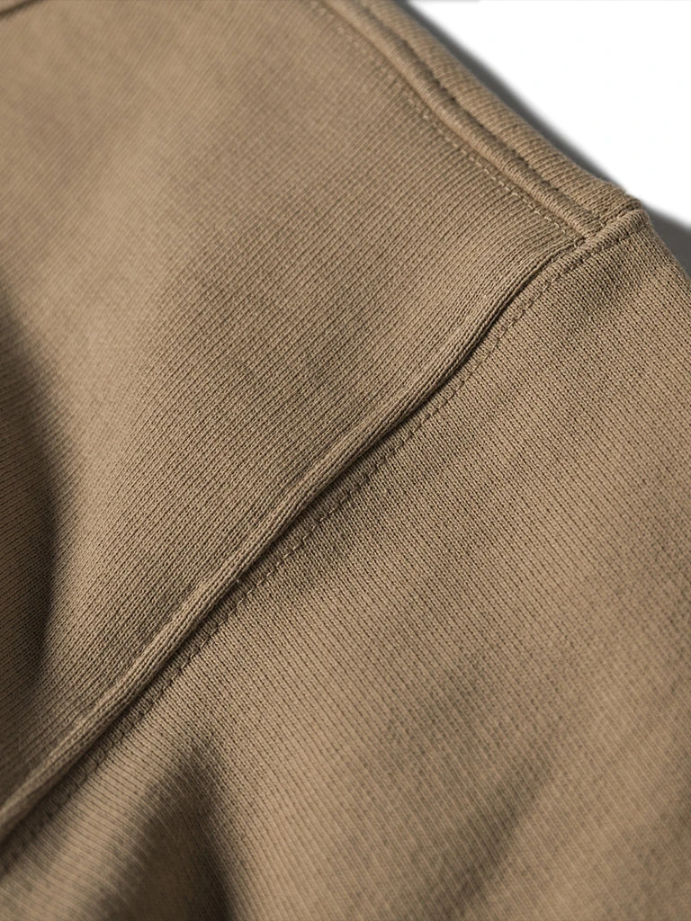 This sweatshirt is made of 17.5 oz terry cloth. It is soft, comfortable, has no static electricity, can be worn close to the skin, and has good elasticity. The sewing technology adopts the old-time classical sewing process: overlocking and then interlocking. Compared with an ordinary single overlock, it’s stronger and more beautiful. It can be worn outside in spring and autumn and can also be worn as a base in autumn and winter. It is available to choose khaki, black and white. Bring more possibilities for daily wear.