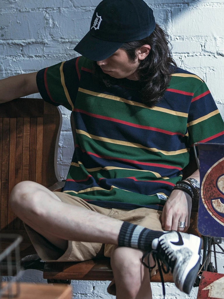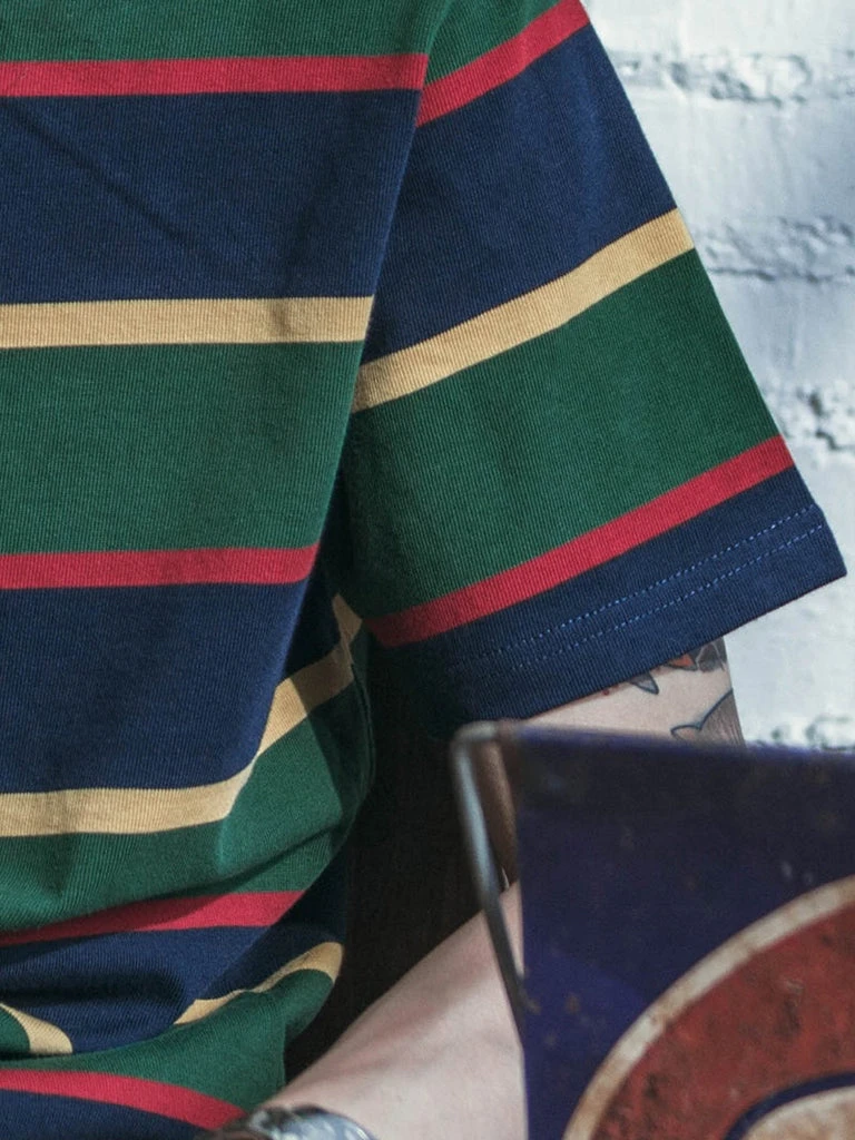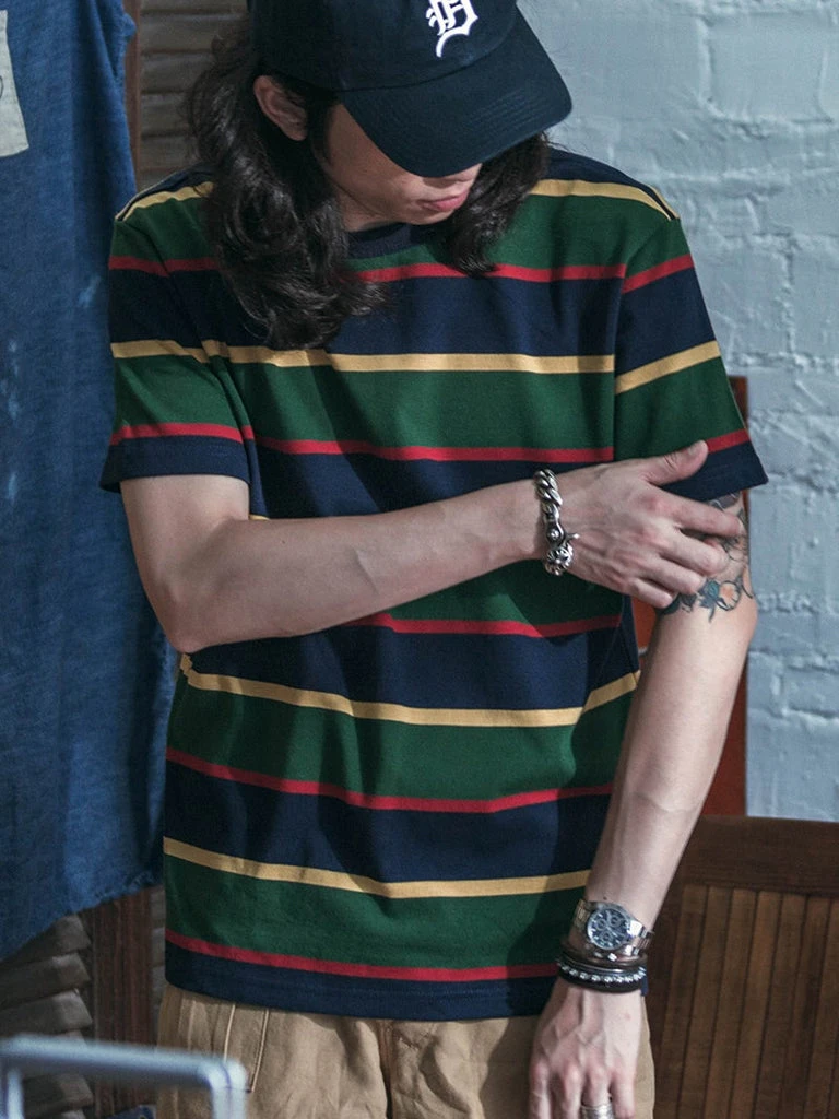 This is an IVY style stripe T-Shirt, made of 9.87 oz cotton, and use the classic IVY style color scheme, the fabric texture is good, soft and comfortable.